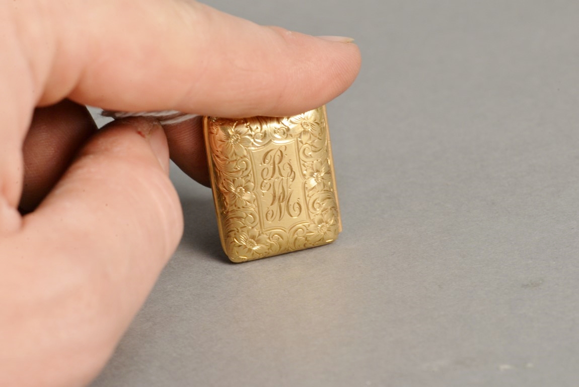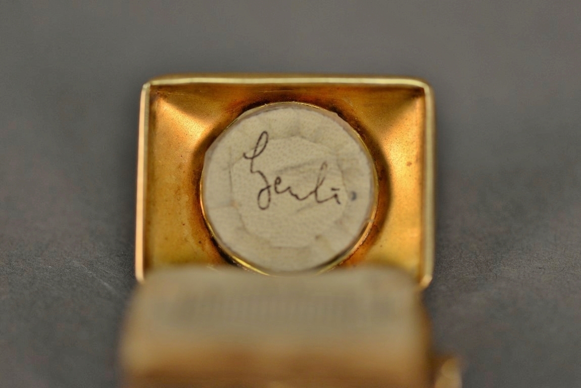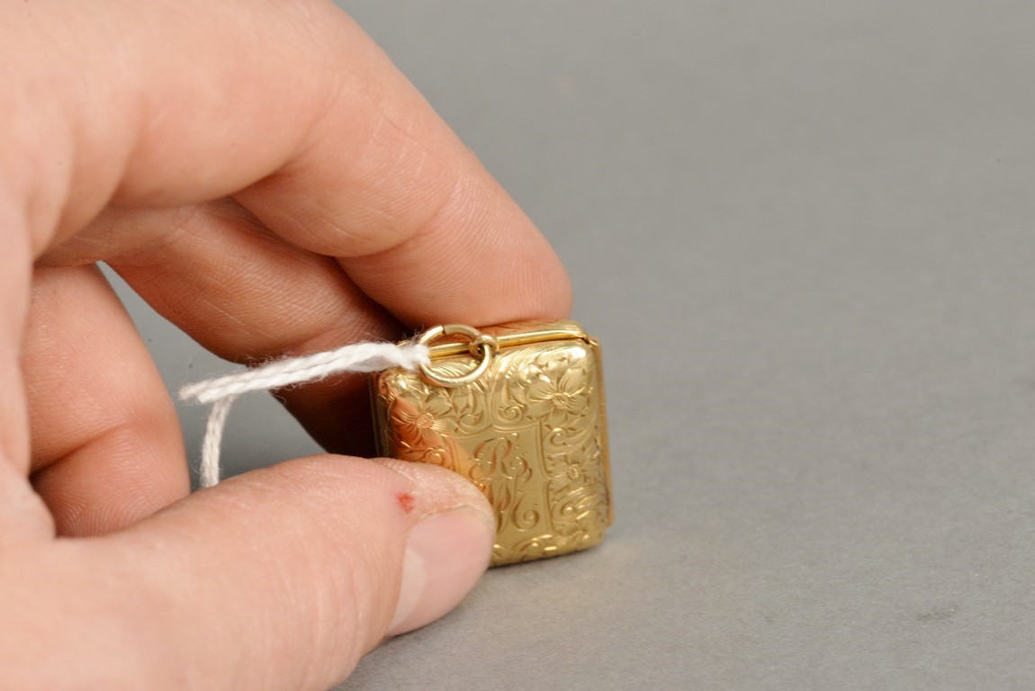 Lot 53: 14K gold locket with hand painted Victorian woman, opens to reveal smallest English Dictionary in the world according to the book,…