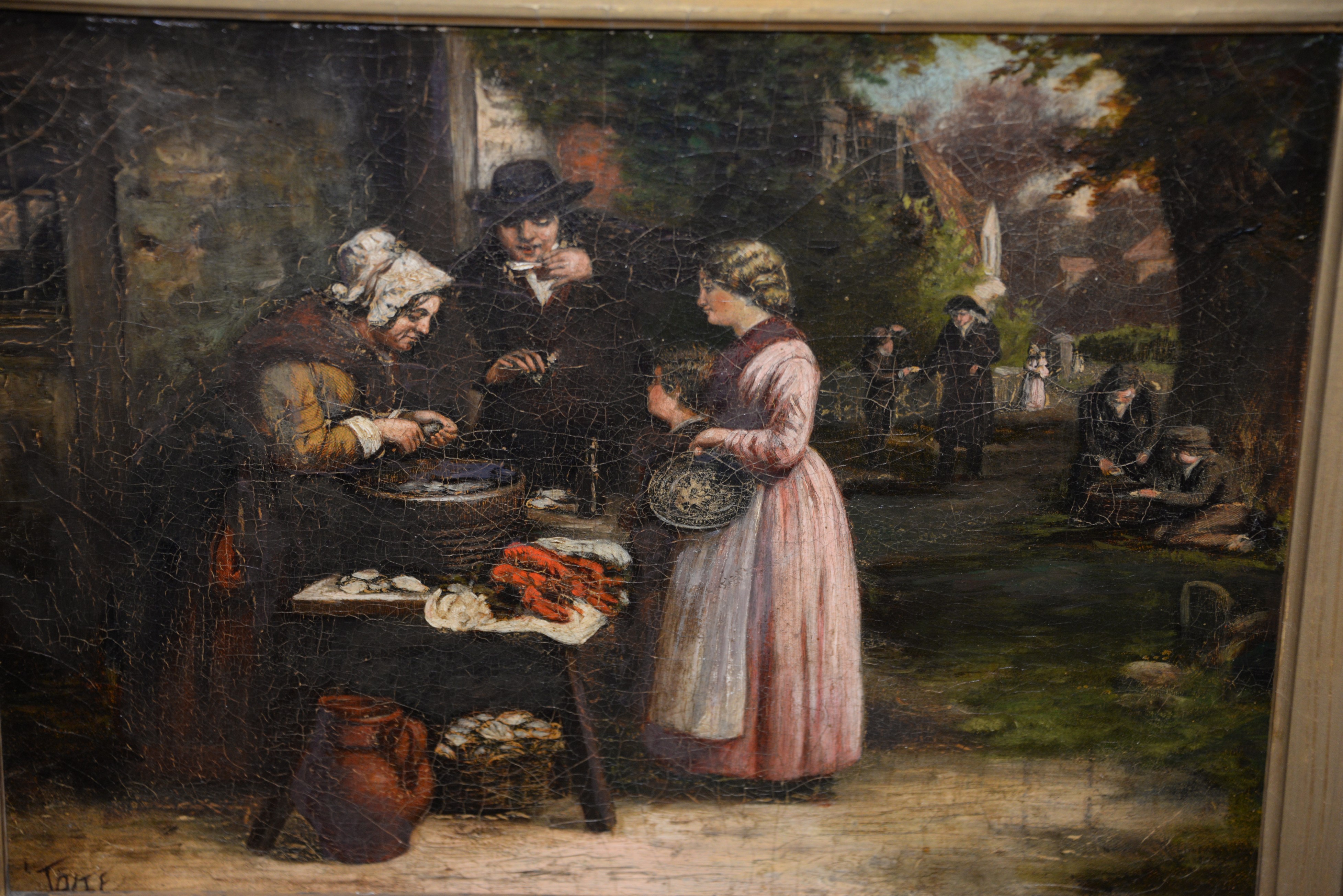 Lot 53: 19th Century continental oil on canvas, Fresh Shellfish Catch, signed lower left indistinctly. 10 x 13