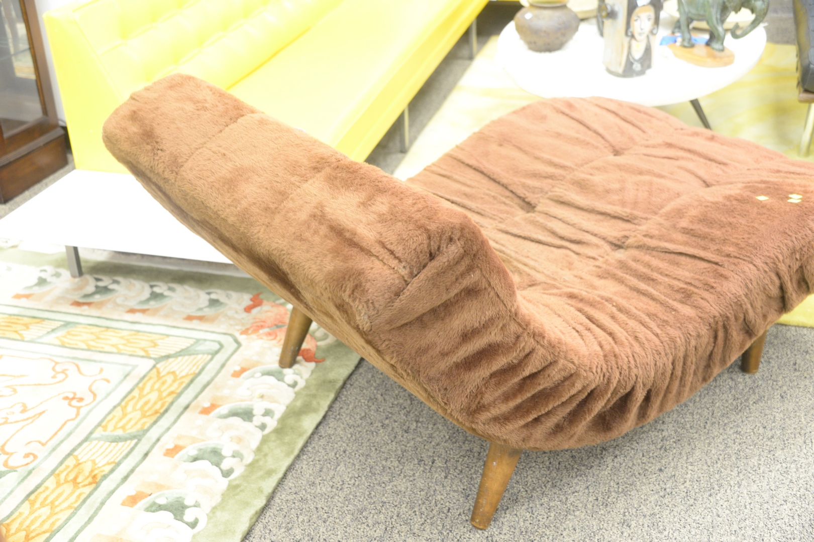 Adrian Pearsall Wave Chaise, on walnut legs, height 30 inches, length 58 inches.