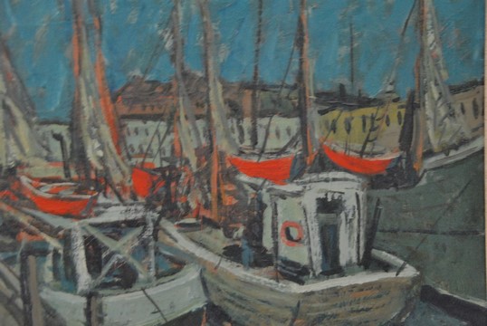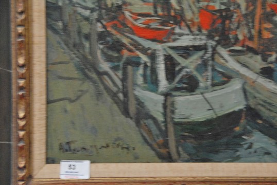 Alex Tschernjawski 1933 Tea Wharf Boston oil on canvas signed lower left A. Tschernjawski 15 x 22