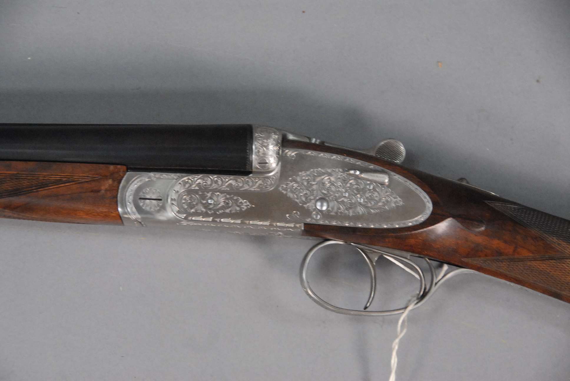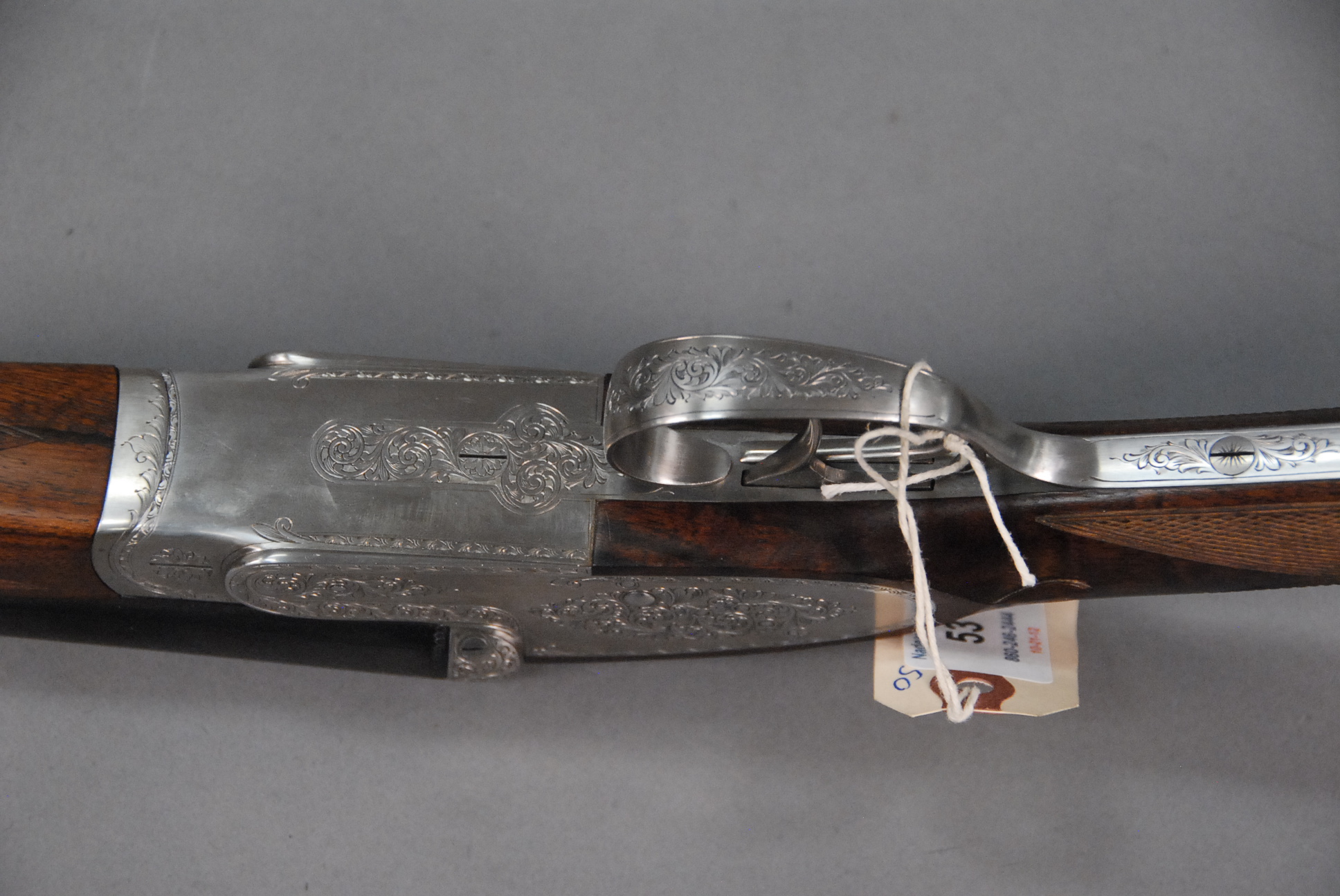 Lot 53: Armas Garbi, model 101, shotgun, marked William Larkin Moore & Co., side by side, 28 ga. having hand engraved continental style larg…