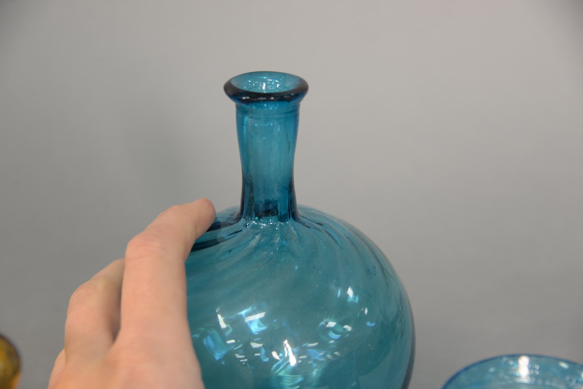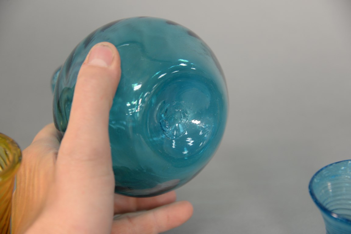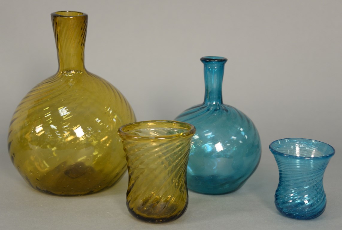 Four piece lot including two swirled bottles and two goblets. ht. 8 in. & 3 in.