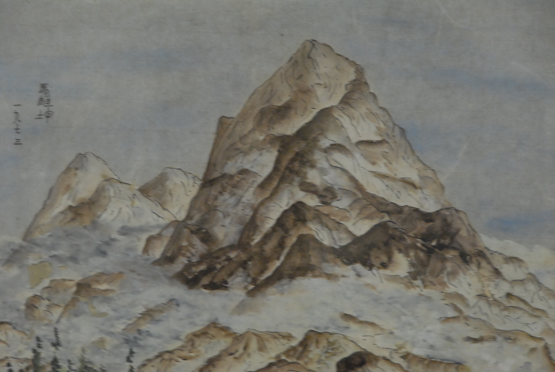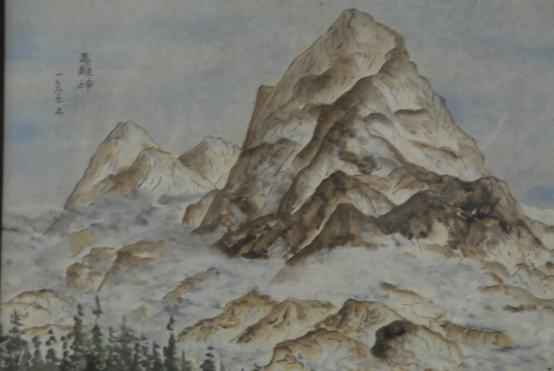 Framed watercolor on paper of mountainous landscape, signed on top left.