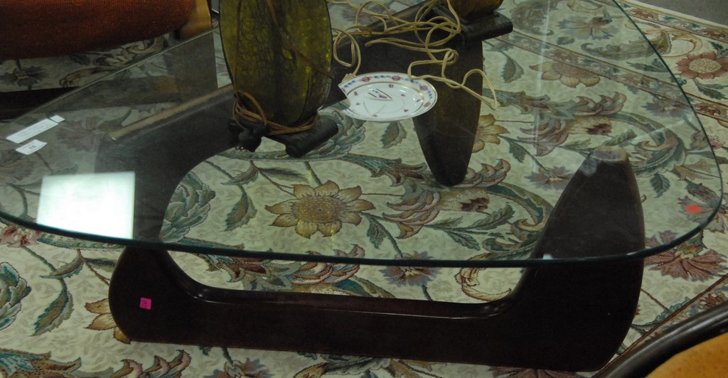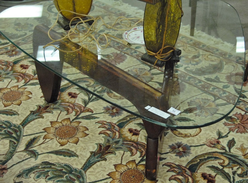 Isamu Noguchi glass top coffee table, ht. 15in. wd. 37in. lg. 47in.