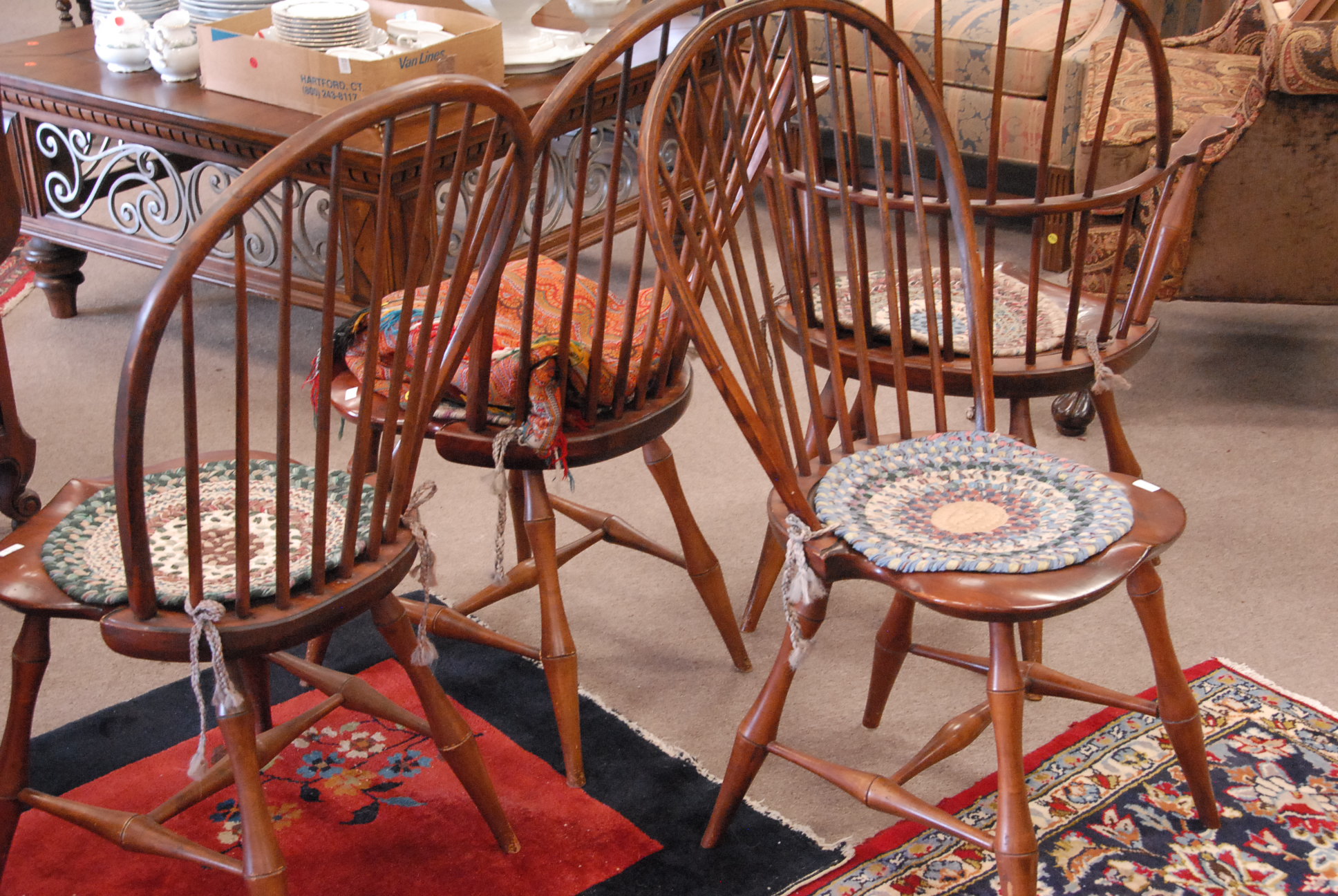Set of six Dimes custom Windsor chairs, four side chairs, two armchairs, signed D. R. Dimes