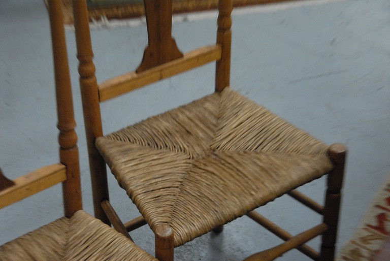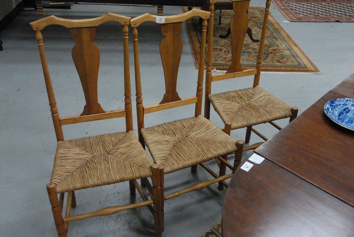 Lot 53: Set of three Queen Anne rush seat chairs. seat ht. 16in. back ht. 37in. Being sold for a Museum in Connecticut.