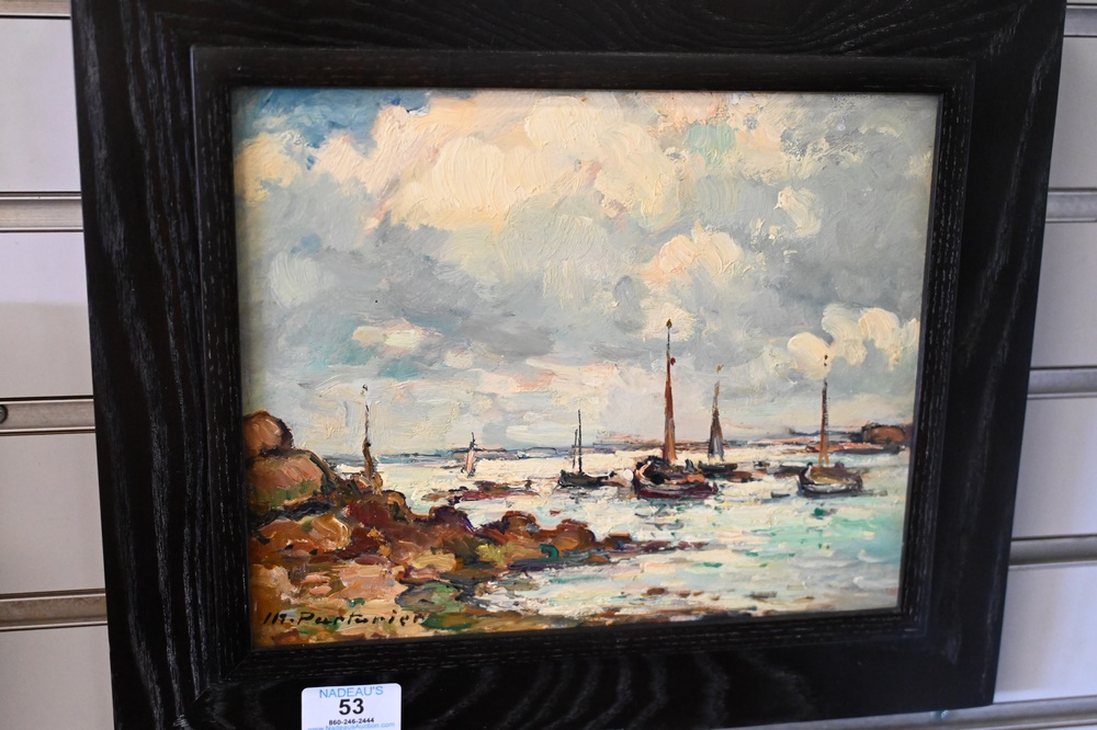 Lot 53: Two Marcel Parturier (French, 1901-1976), “Loguivy-de-la-Mer” and “St. Cado”, both oil on board, both signed lower left “M.Parturier”, housed in matching frames, 8 1/4″ x 10 1/4″.