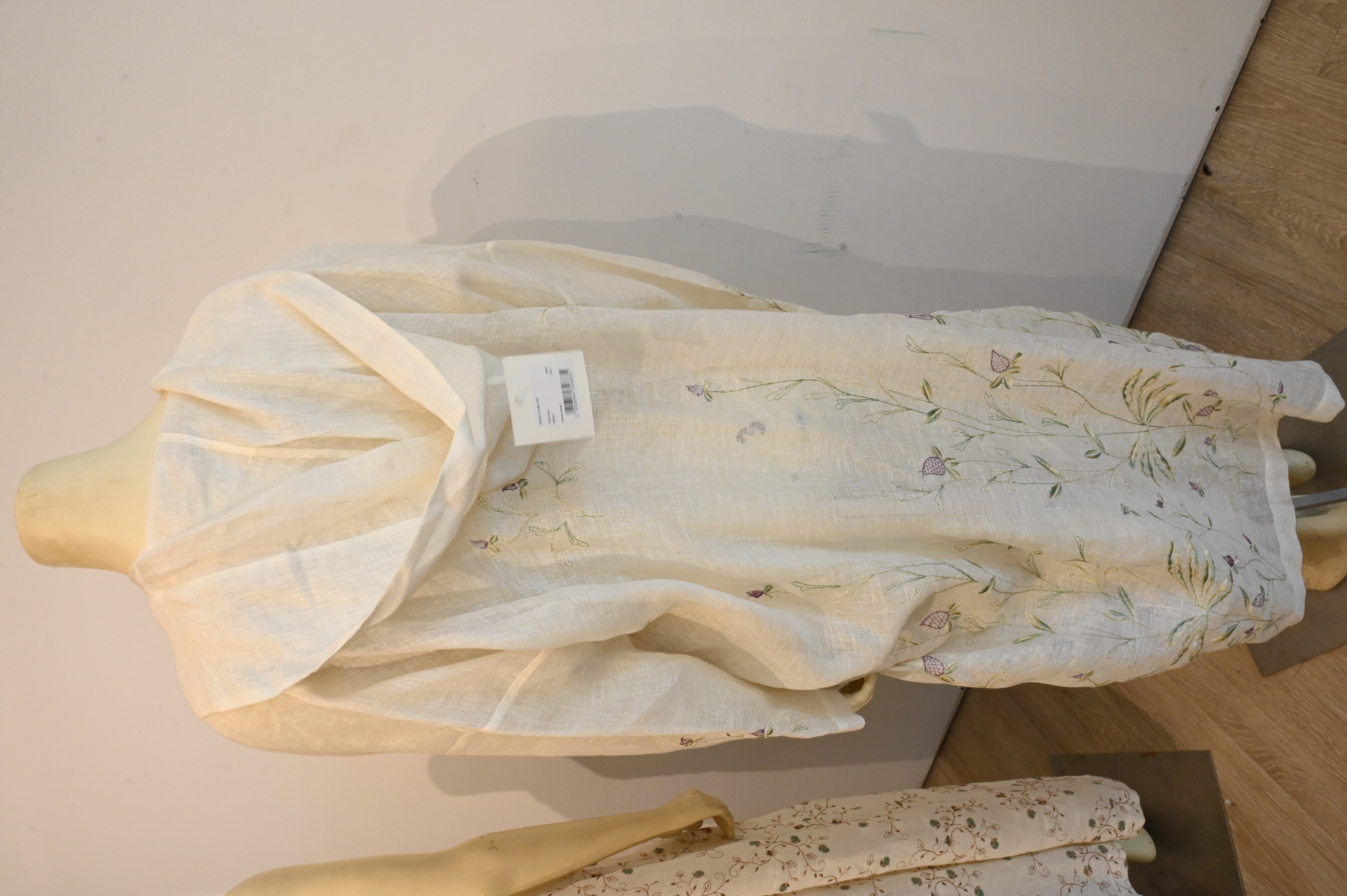 to include embroidered floral tank top dress and overcoat/hooded cover with tag, retails for $990
