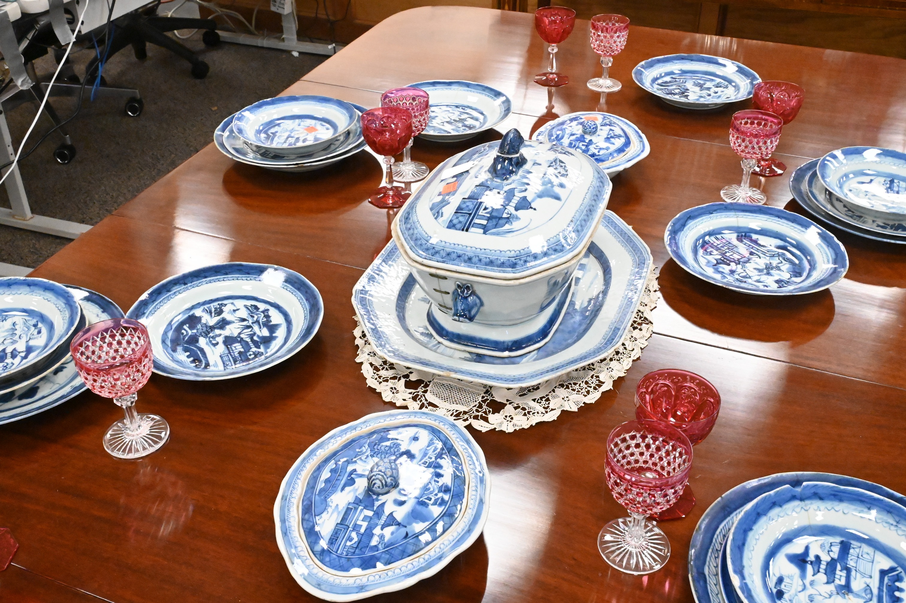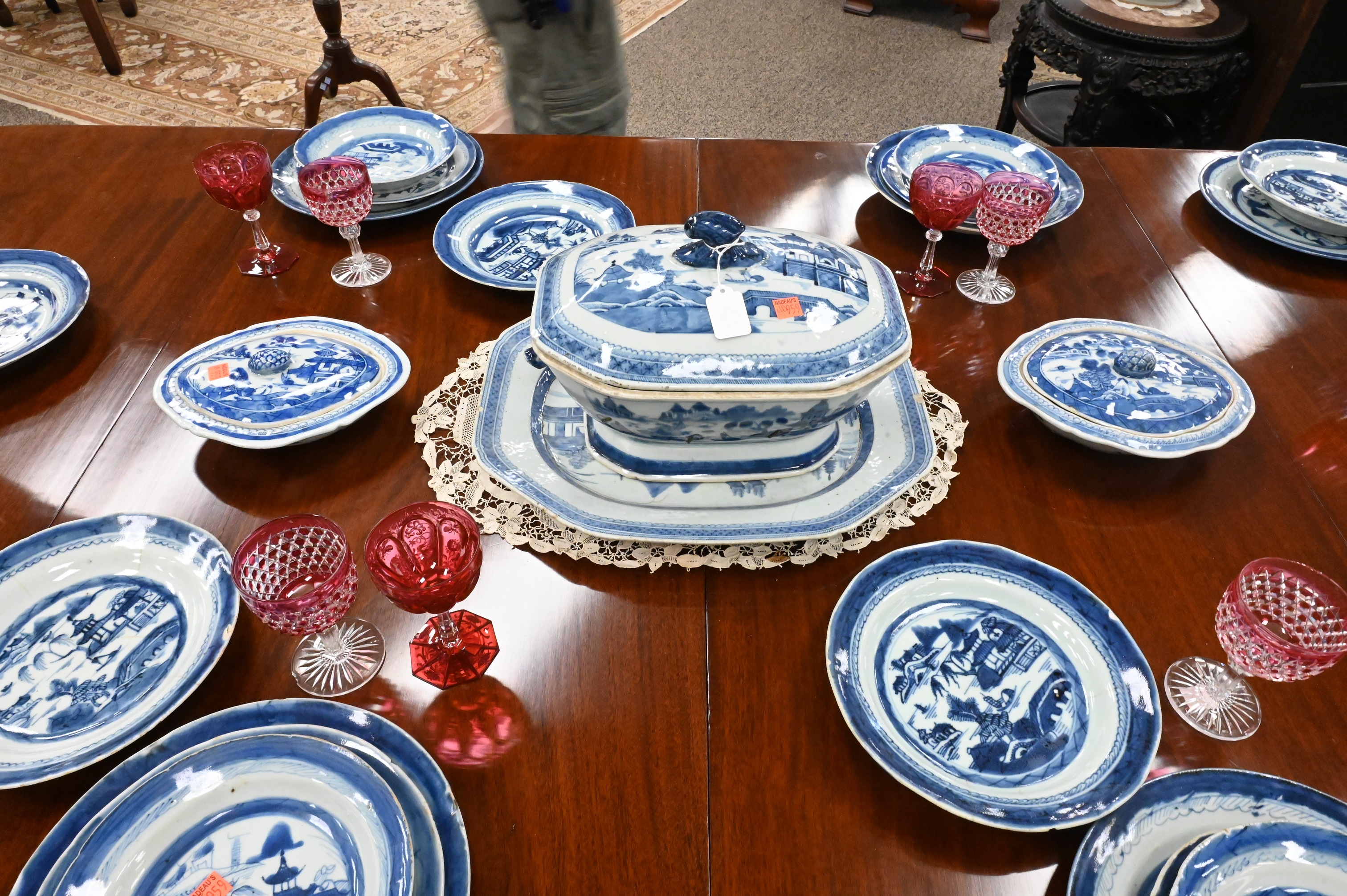 Lot 530: 42 Piece Group of Chinese Export Canton Blue and White Porcelain