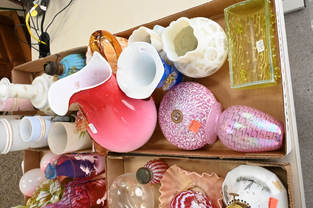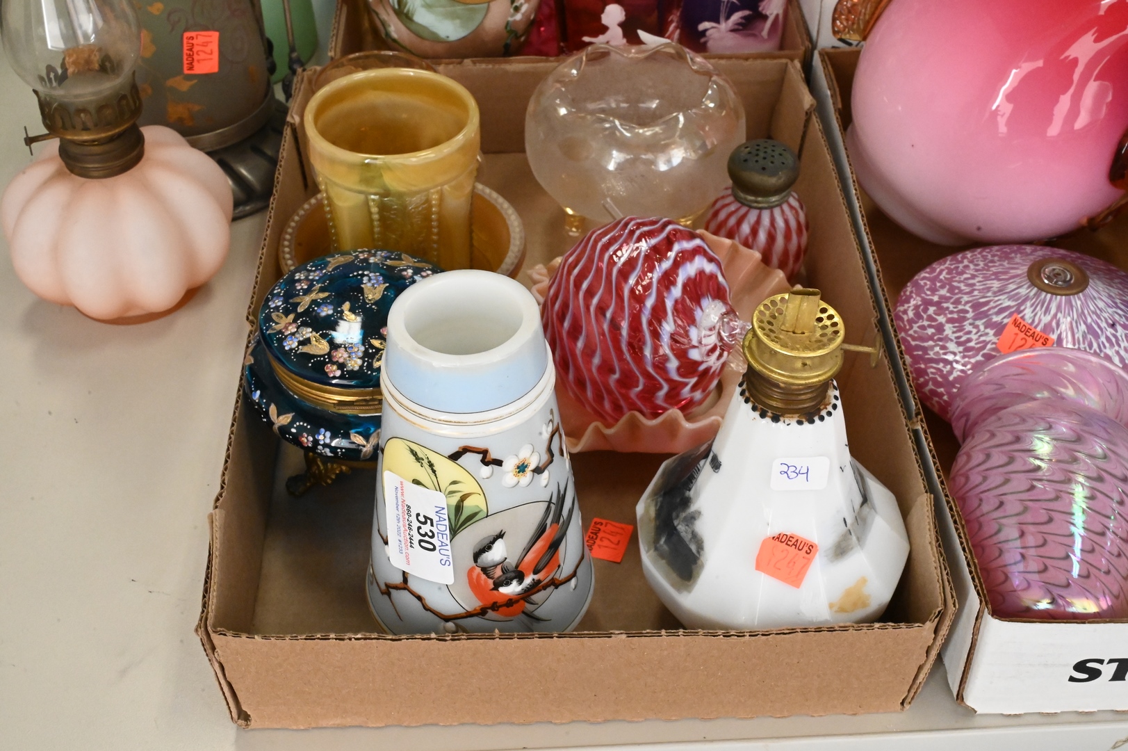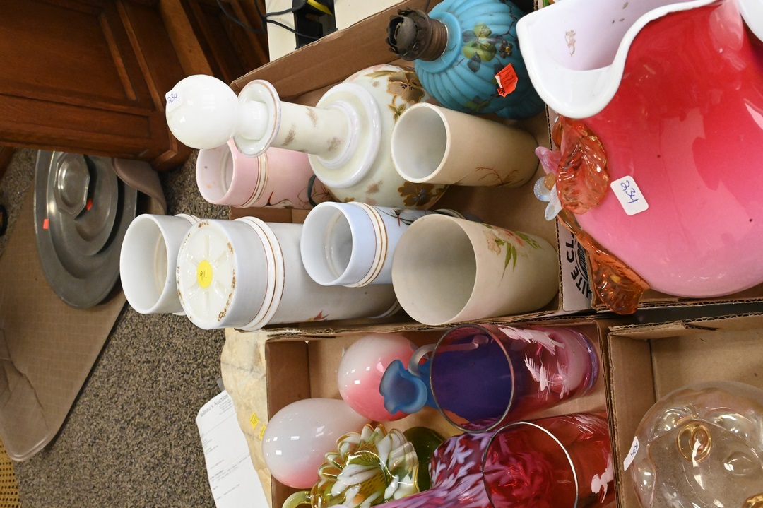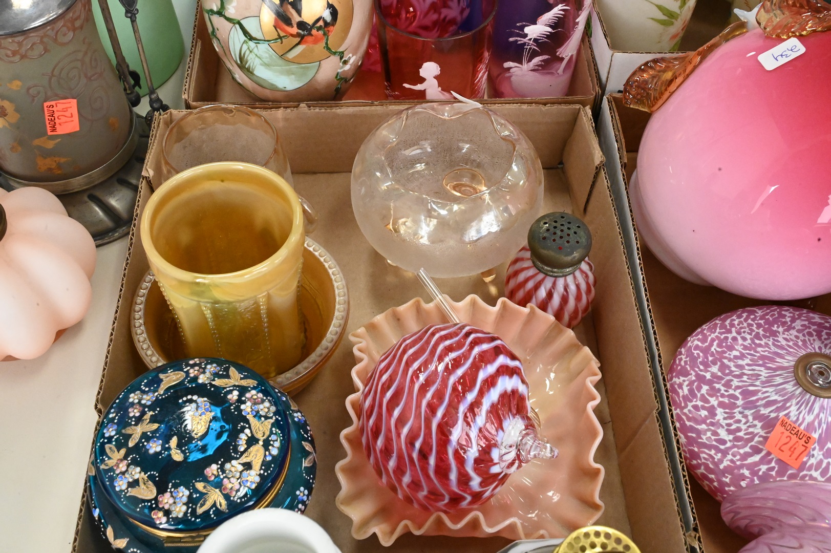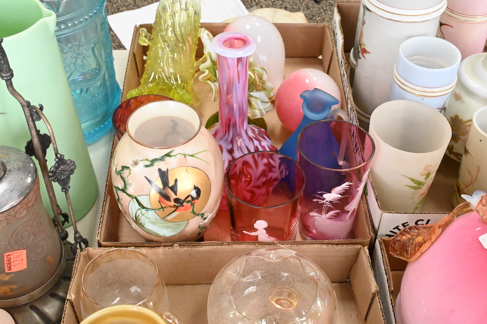 Four Boxes of Glass, to include Bristol, Northwood, Fenton, as is, etc. Provenance: From the Estate of Elwyn W. Lemon, Enfield, Connecticut.