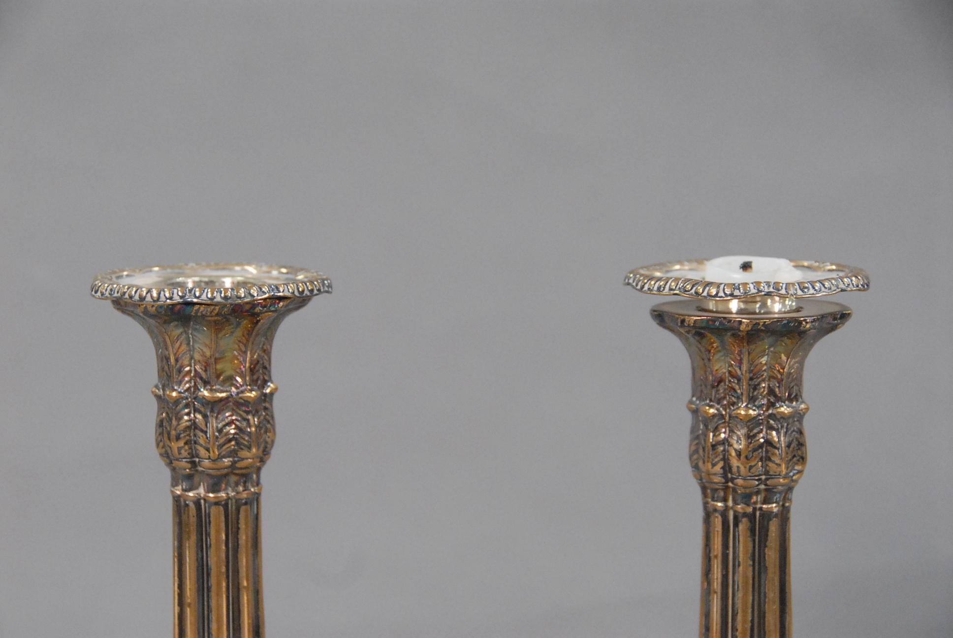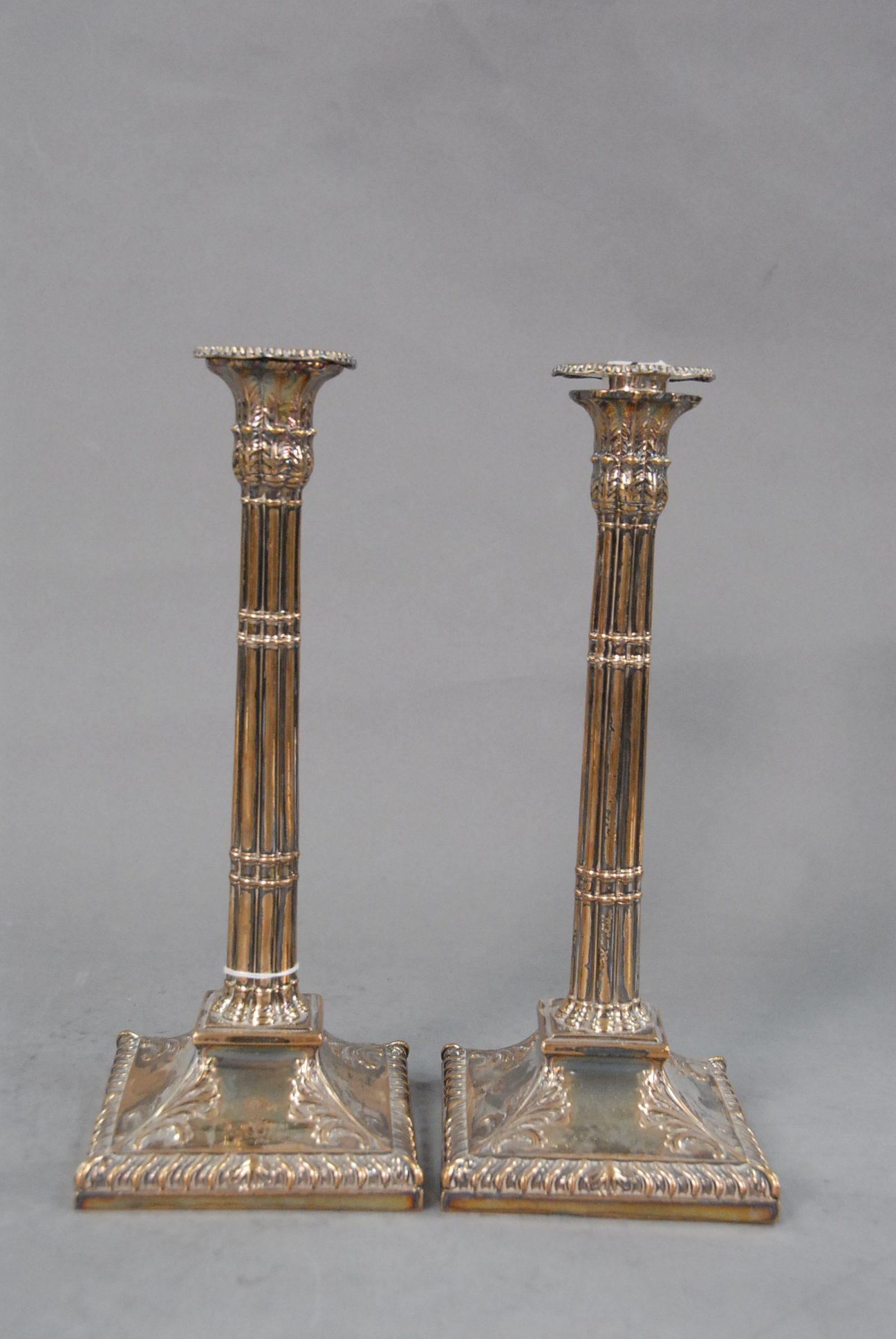 Pair of Sheffield silver plated candlesticks with square bases and bamboo style shafts.