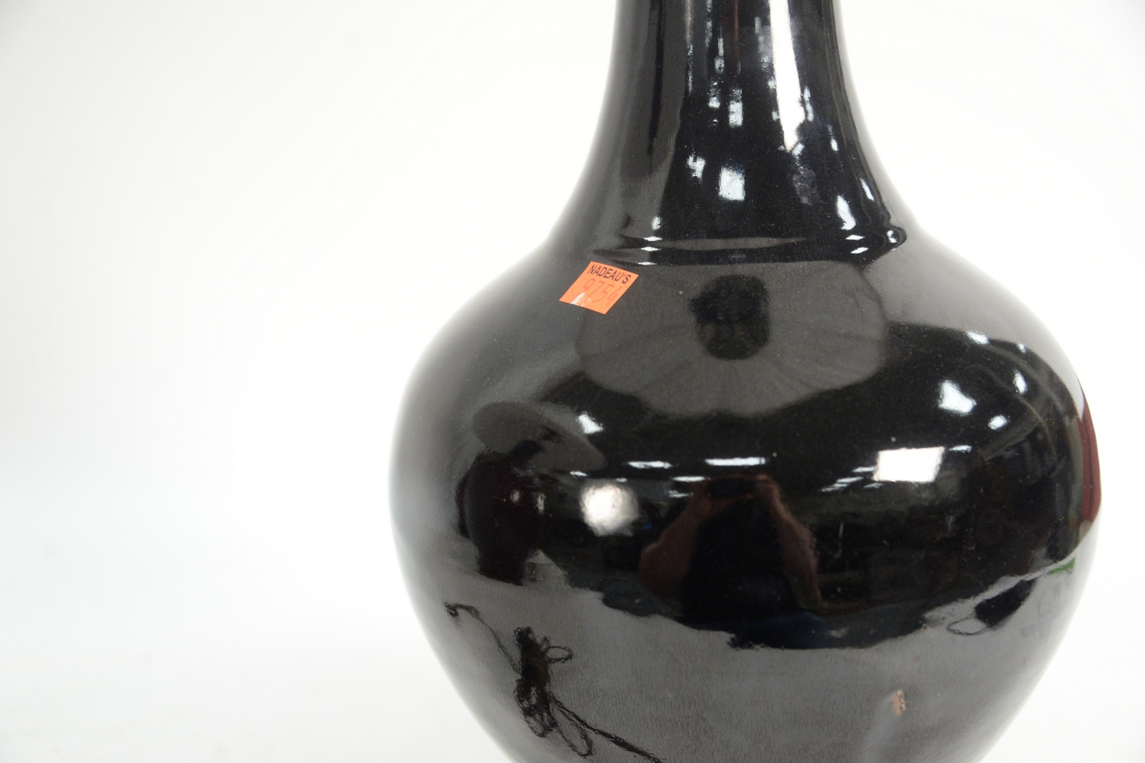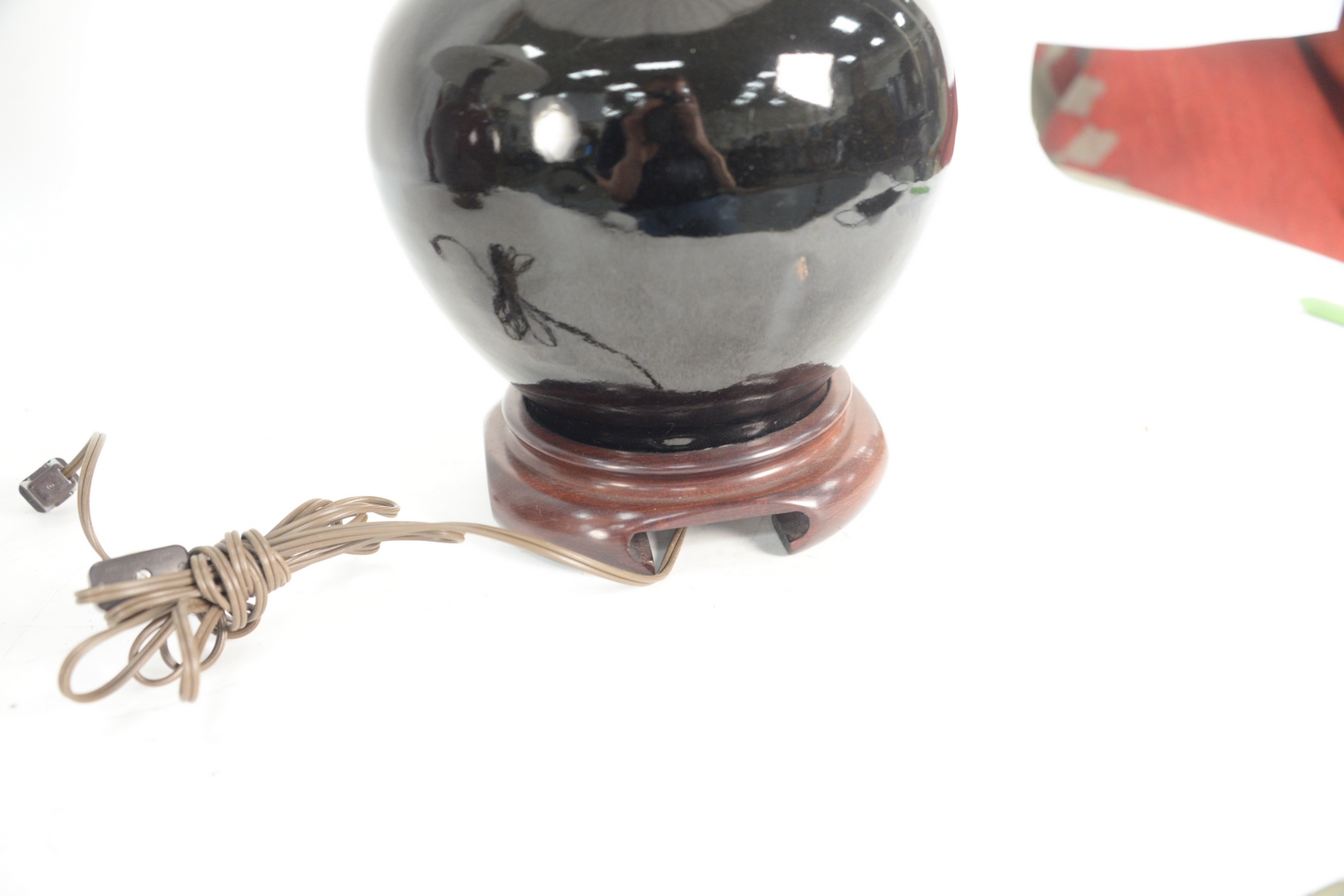 Black Mirror Chinese Bottle Vase Lamp, height 15 inches.