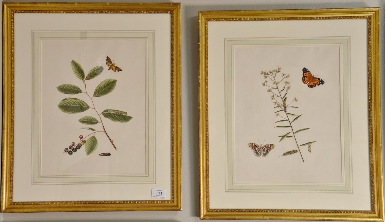 Lot 531: John Abbot 1751-1839 pair of hand colored aquatint engravings Papilio Huntera, American Painted Lady Butterfly Plate #9