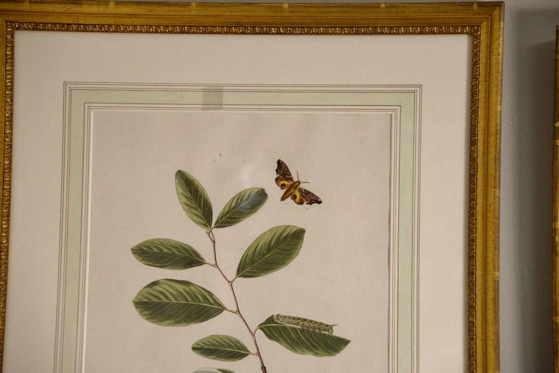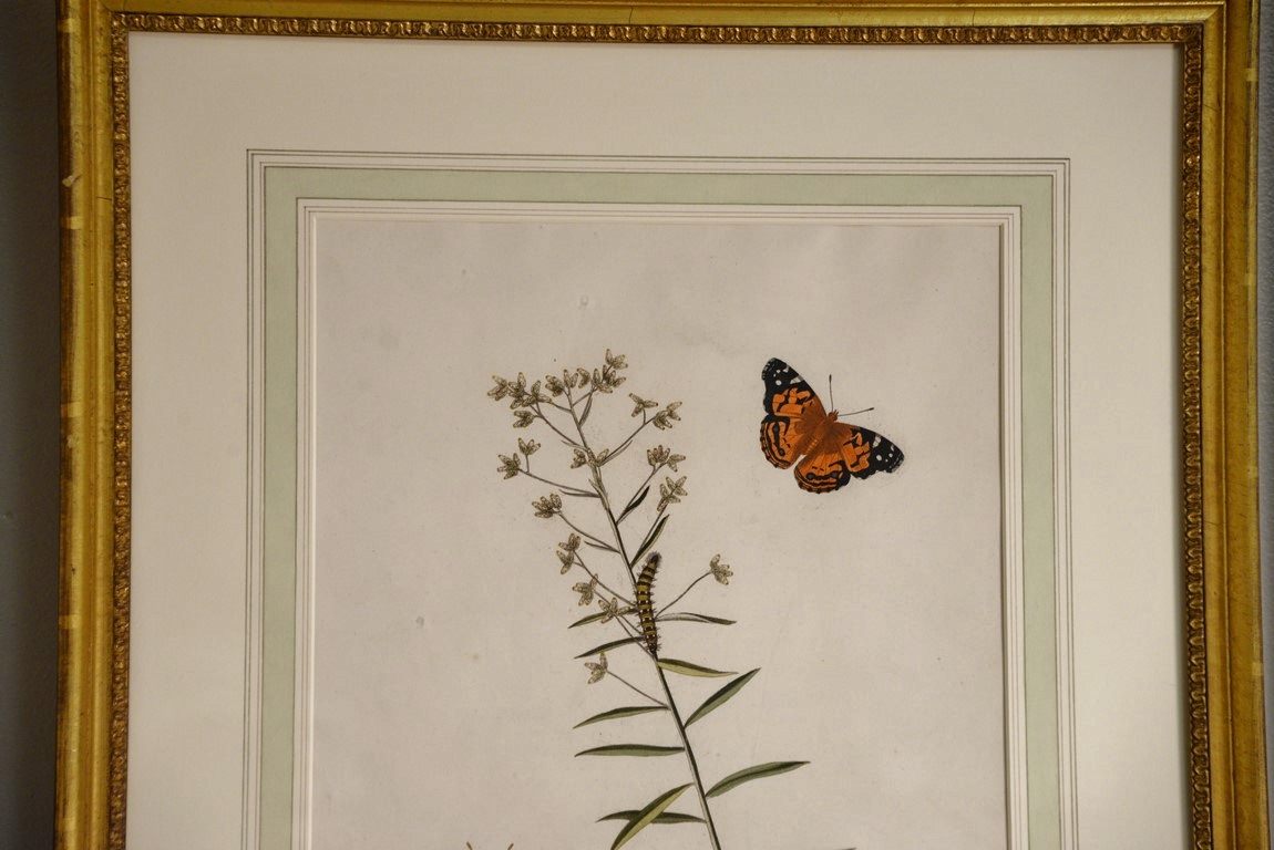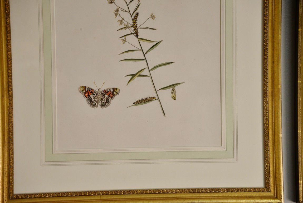 John Abbot 1751-1839 pair of hand colored aquatint engravings Papilio Huntera, American Painted Lady Butterfly Plate #9 and Sphinxmyops Yellow Underwing Eyed Hawk-Moth Plate #26 From The Natural History of the Rarer Lepidoterous Insects of Georgia Published by James Edward Smith 1759-1828 framed and matted by W. Graham Arader III sight size: 14 x 11 Provenance: Property from Credit Suisse’s Americana Collection