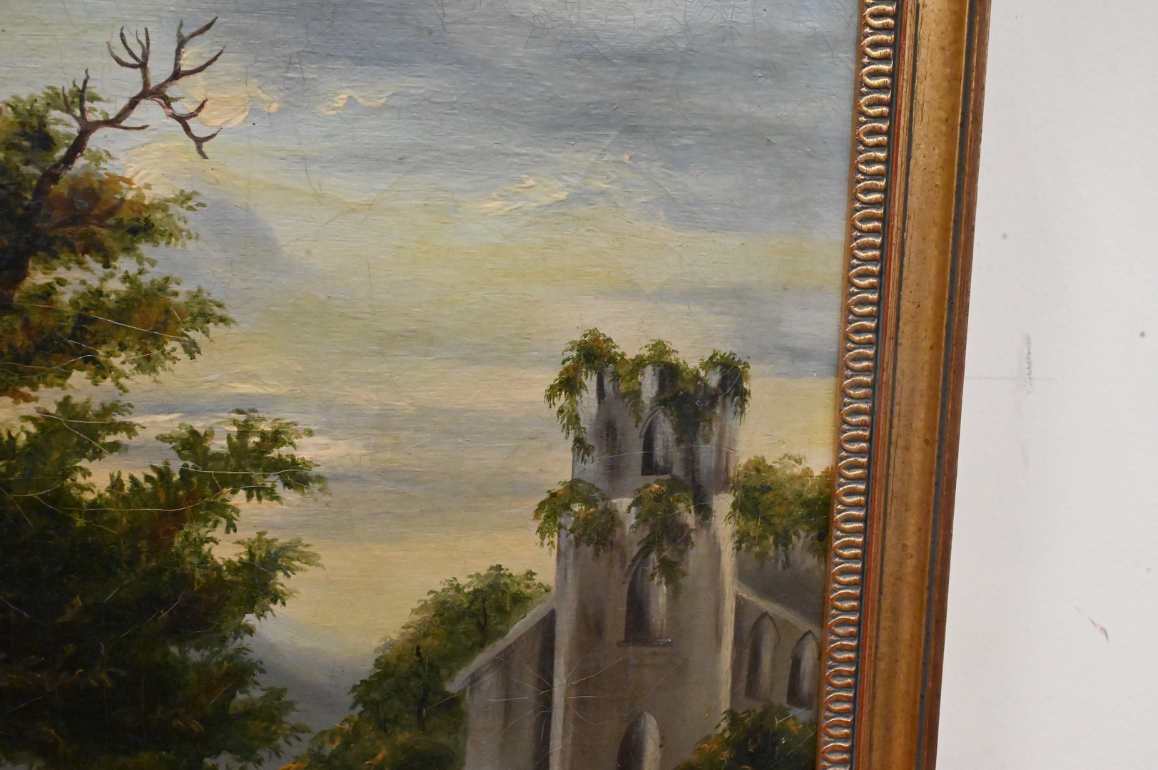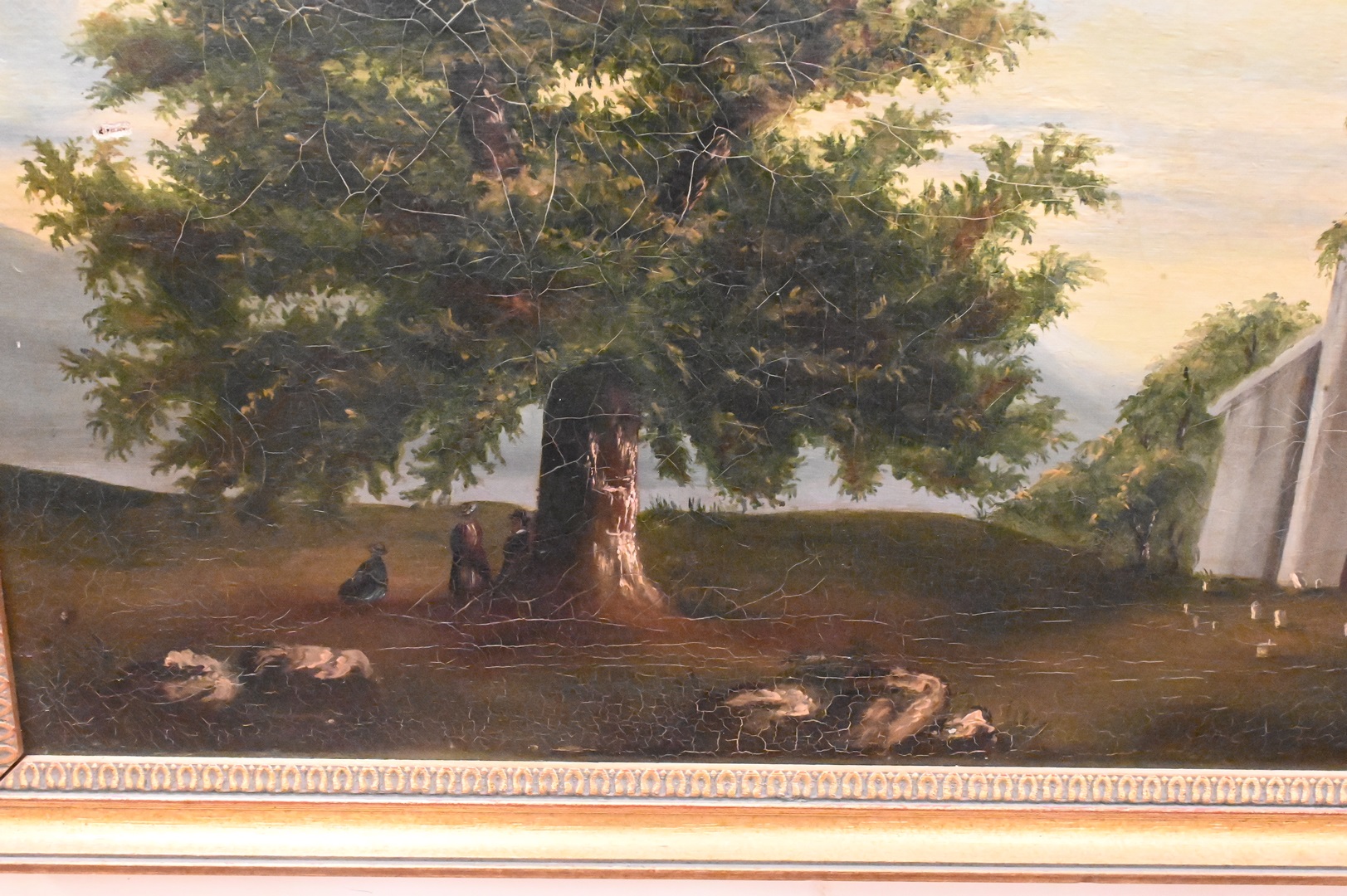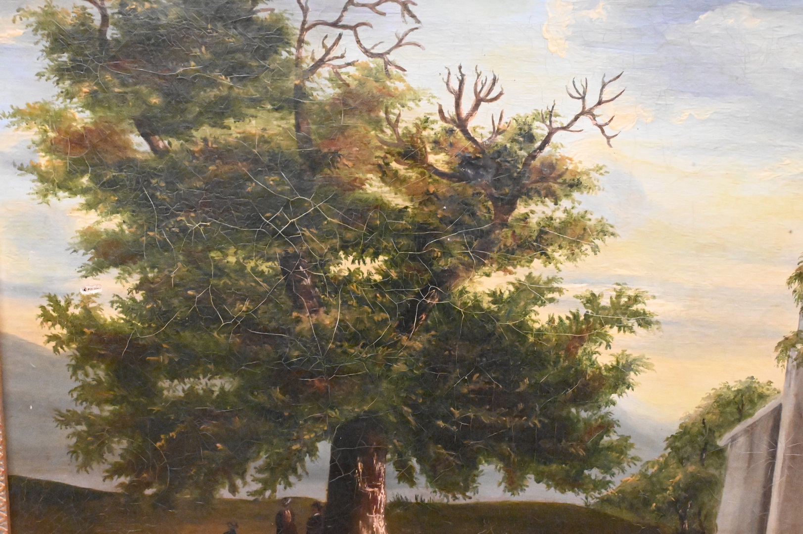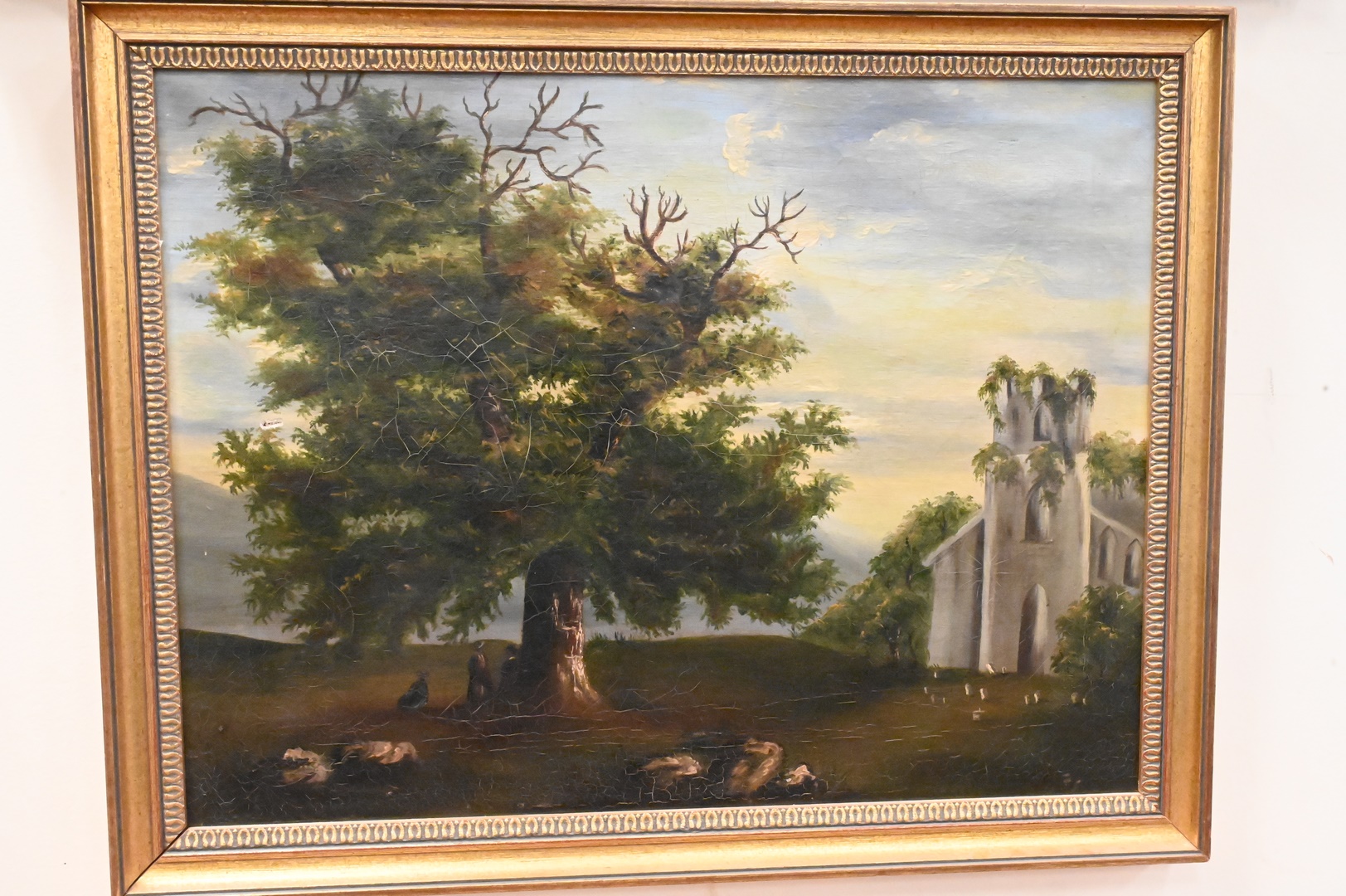 American School, The Old Oak by the Ruined Church, oil on canvas, circa 1830, sight size 15 1/2″ x 20 1/2″.