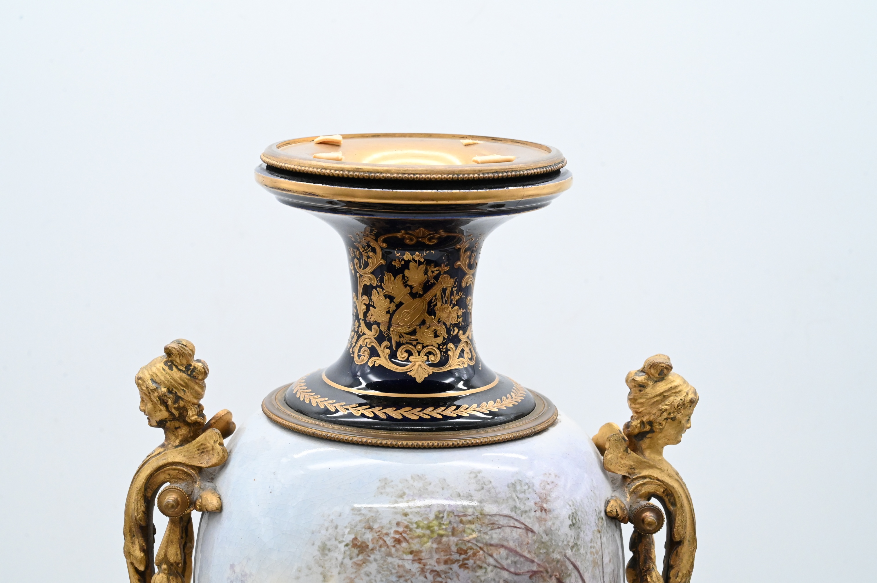 French Sevres Style Porcelain Cobalt Urn