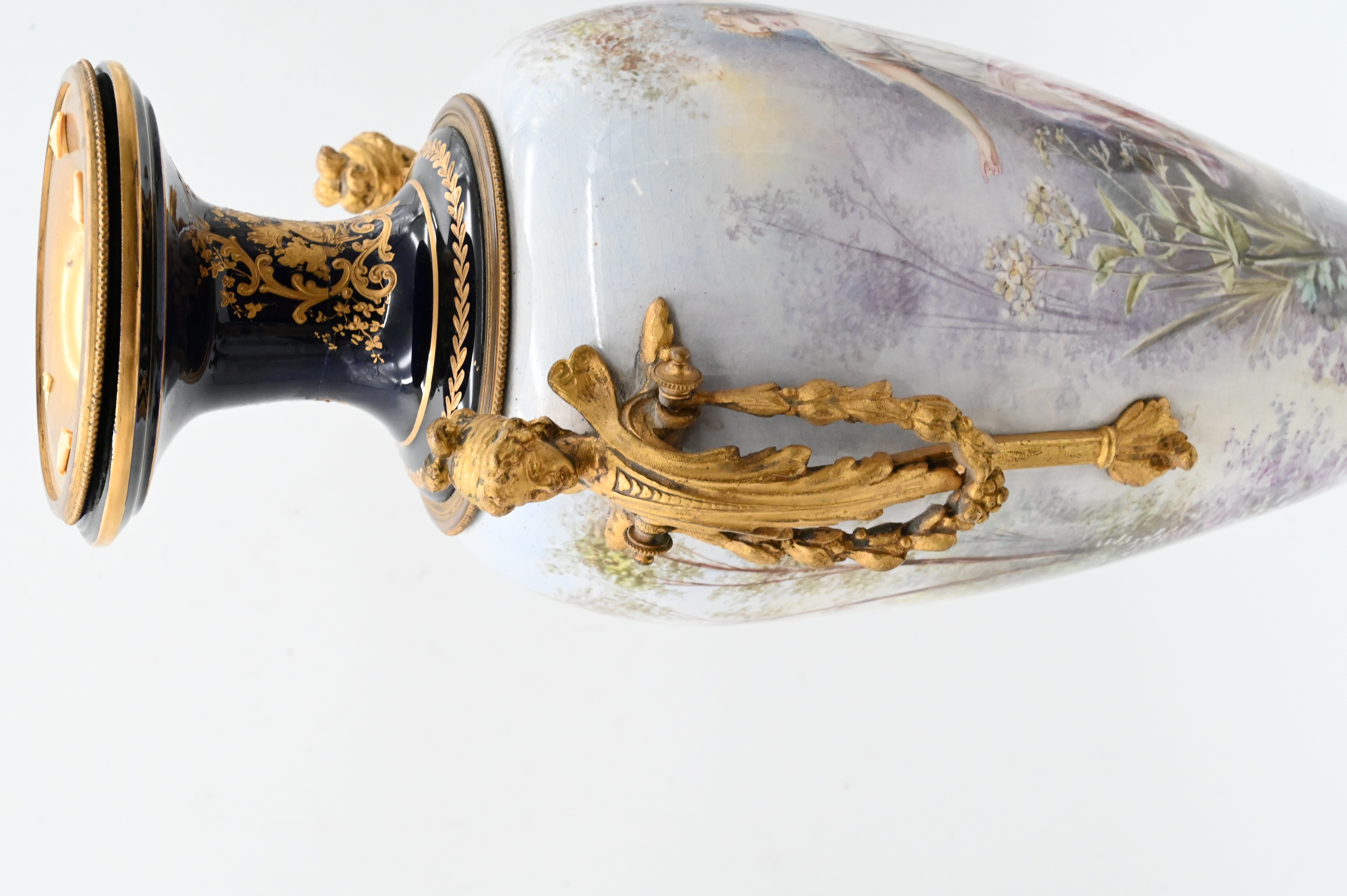 Lot 532: French Sevres Style Porcelain Cobalt Urn