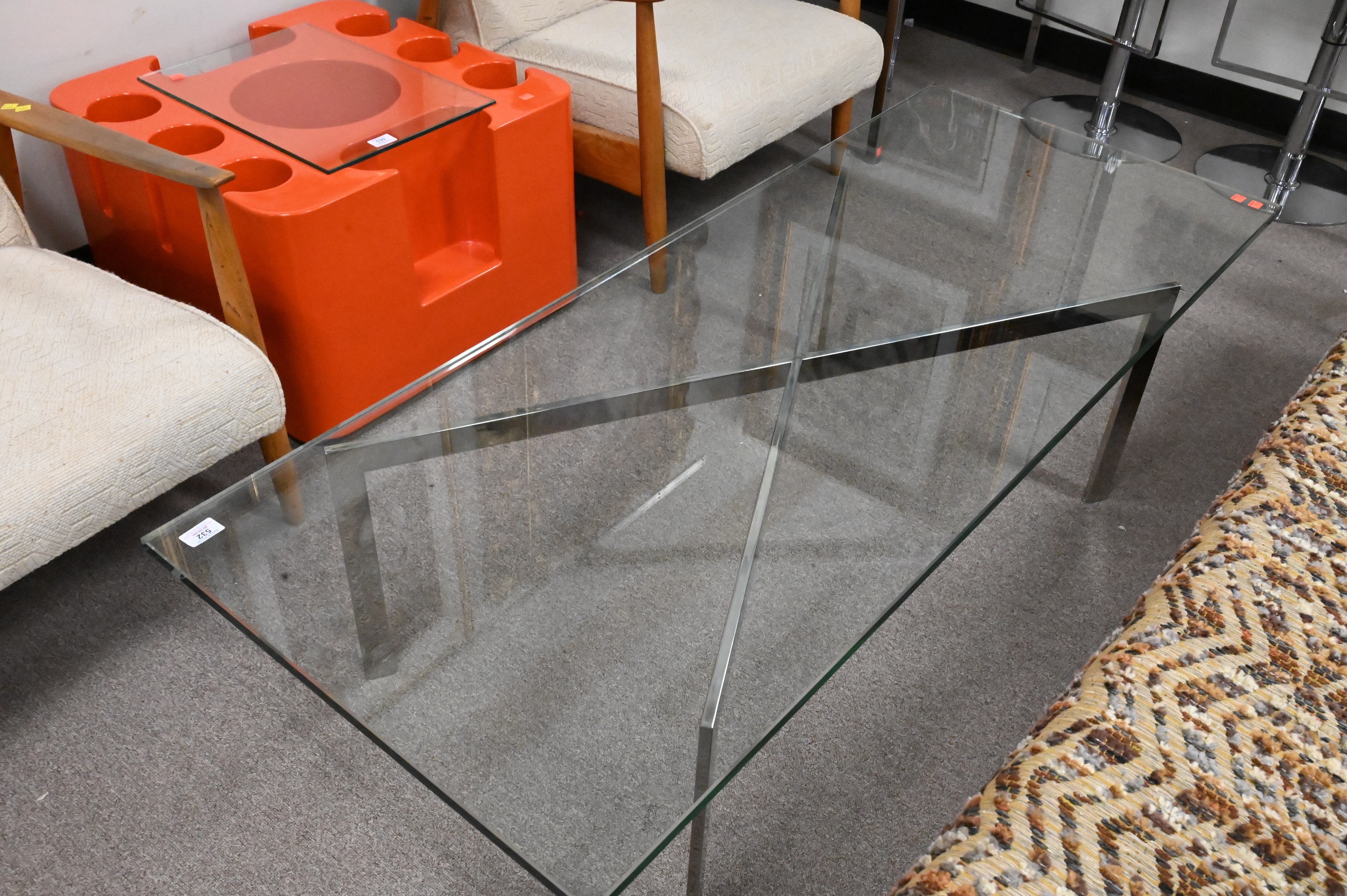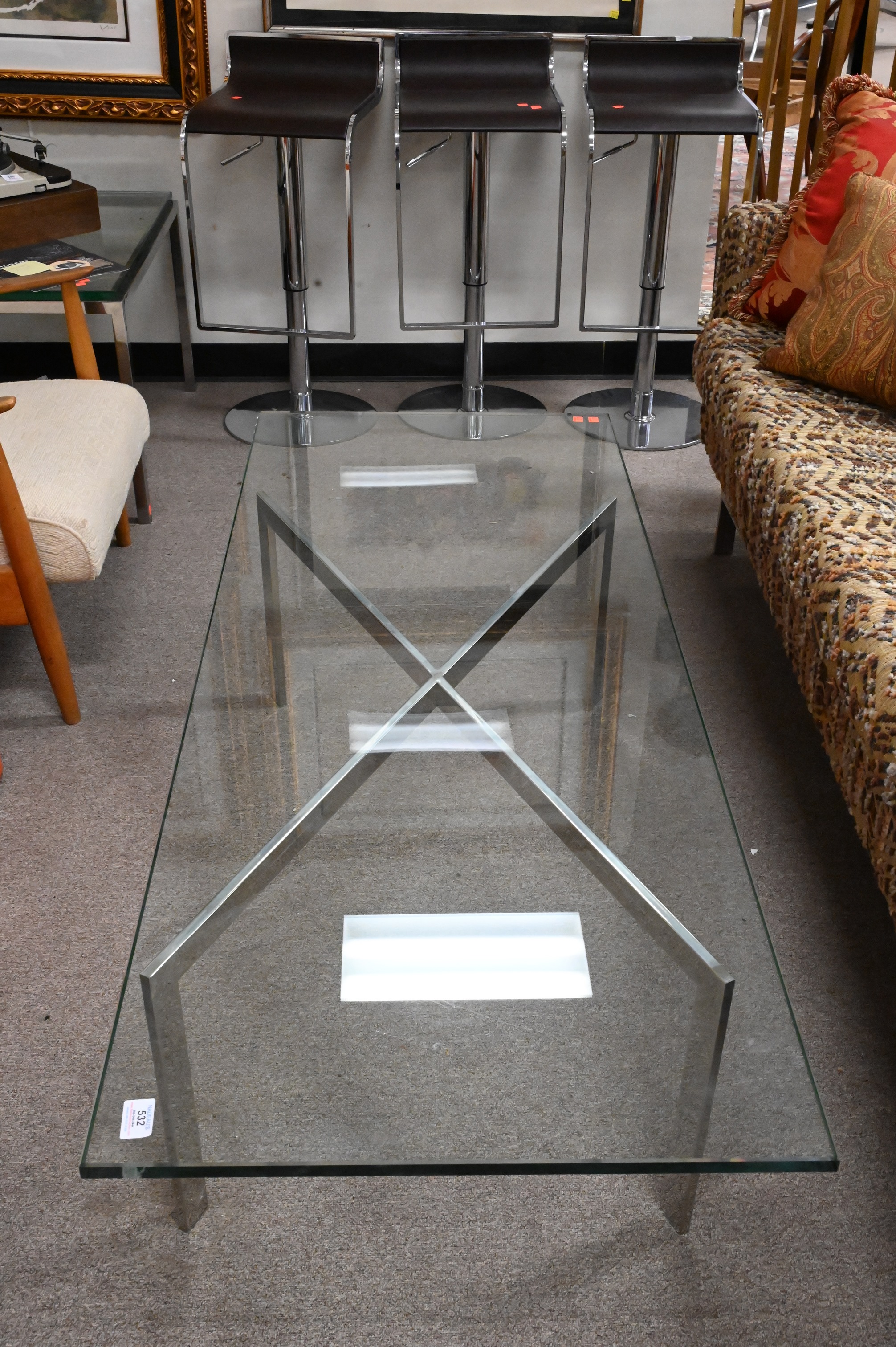 Mies Van Der Rohe Barcelona Coffee Table, height 16 inches, top 24″ x 60″.