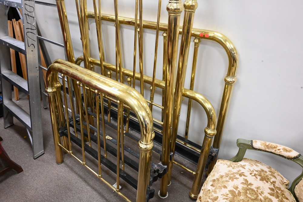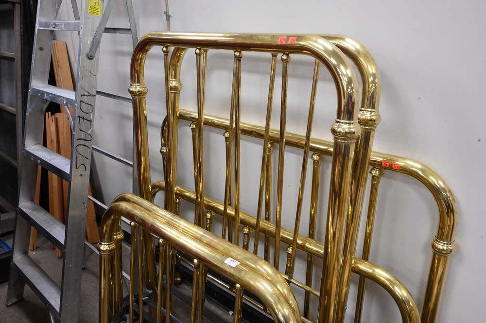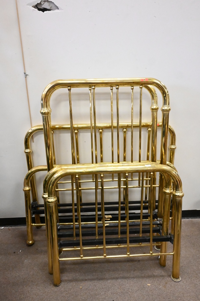 Pair of Victorian Twin Size Brass Beds, height 57 inches, along with brass bed.