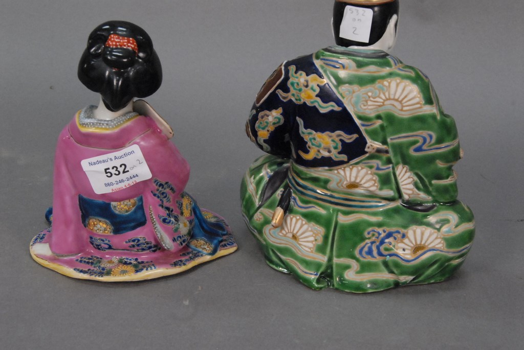 Two Asian porcelain figures, man and woman, each with decorative robe. ht. 7in.