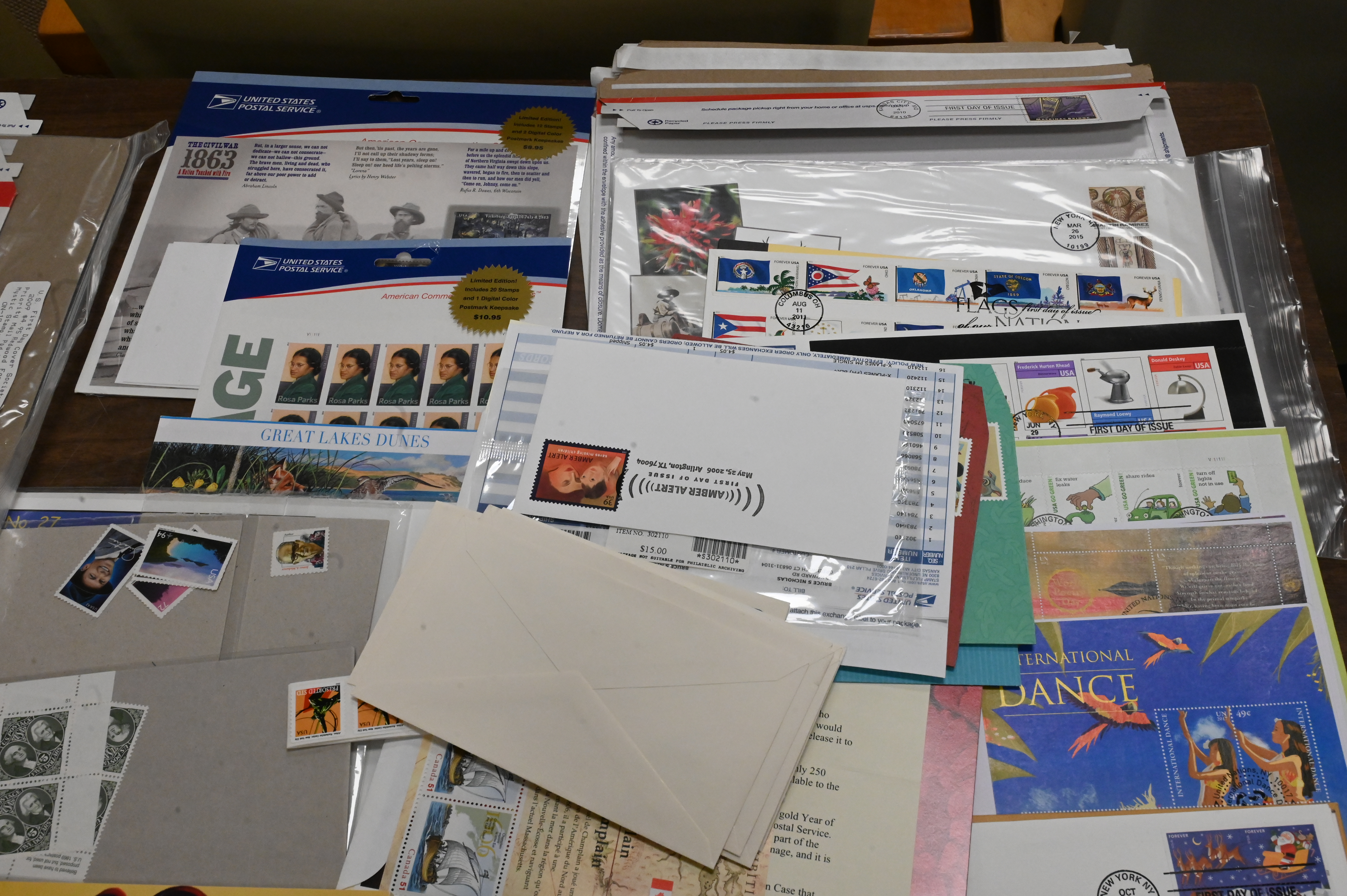 Accumulation of United States Stamps, to include covers, postcards and others, philatelic material in a plastic storage bin