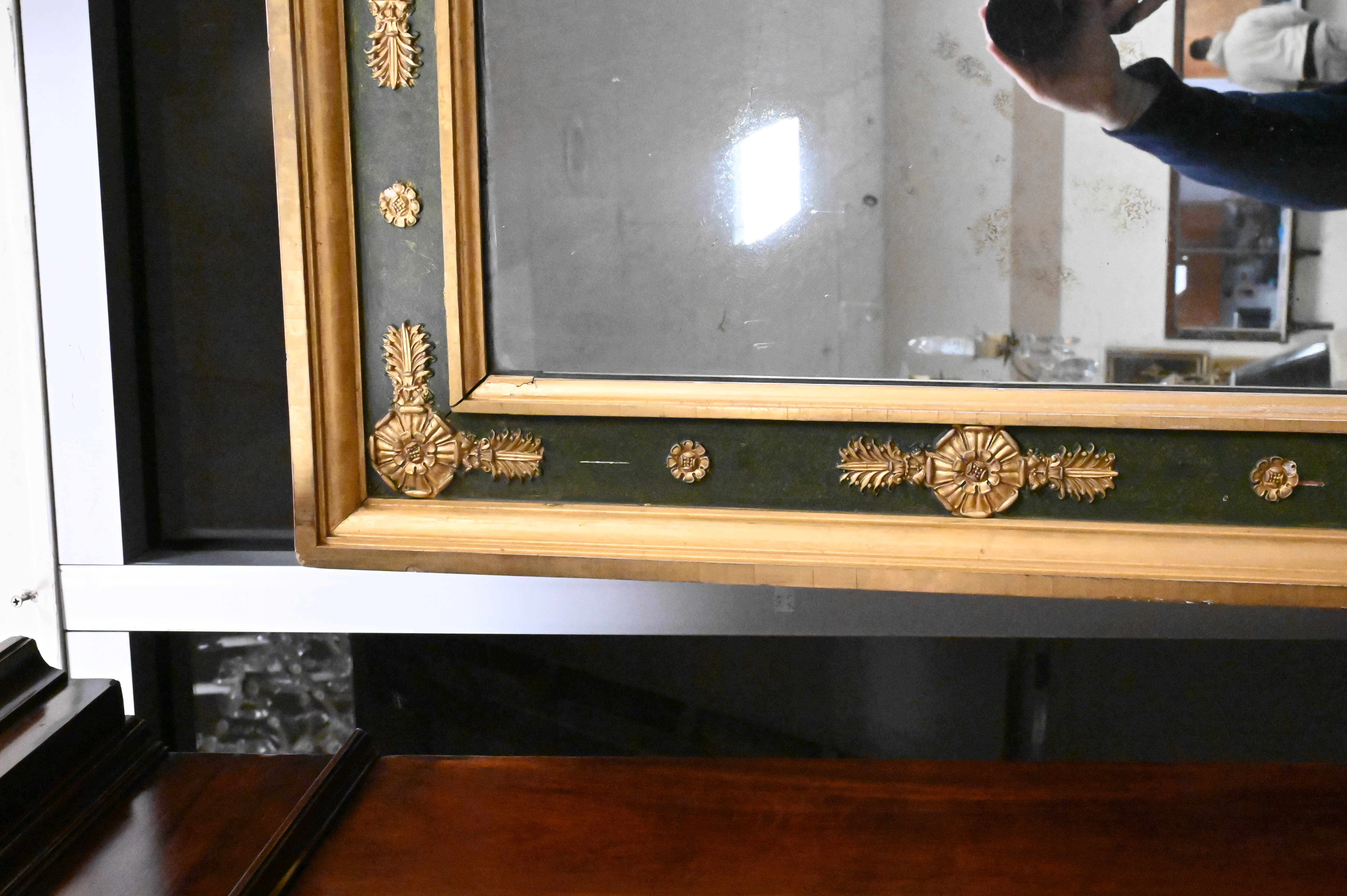 Empire Style Green-Painted and Parcel-Gilt Pier Mirror