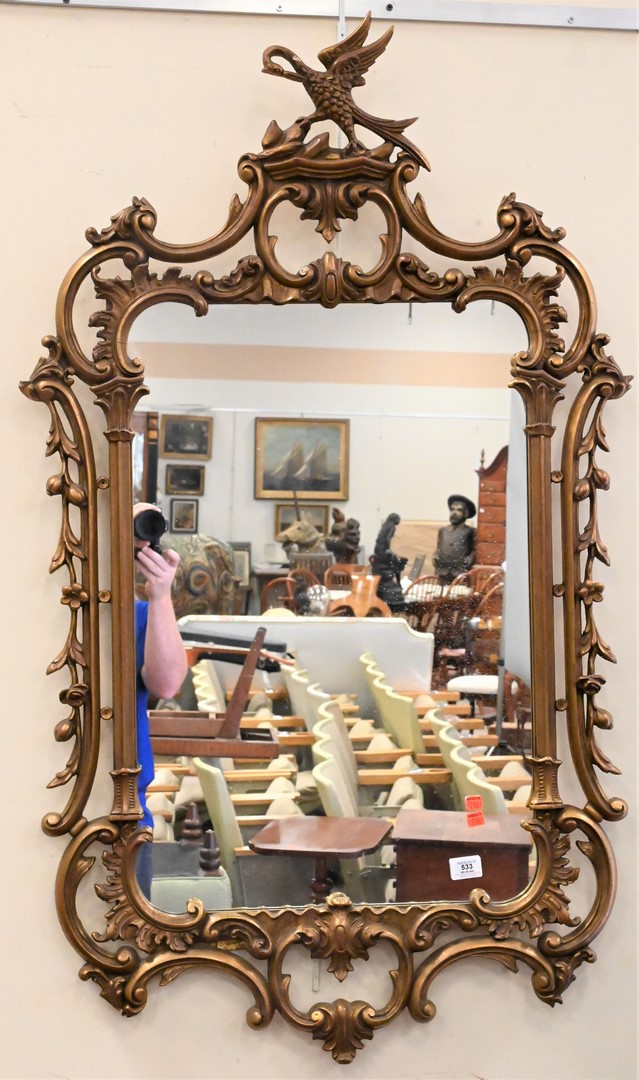 Gilt Carved Chippendale Style Mirror, height 50 inches, (small repair on bird neck and small chip on side). Provenance: An estate from Redding, CT.