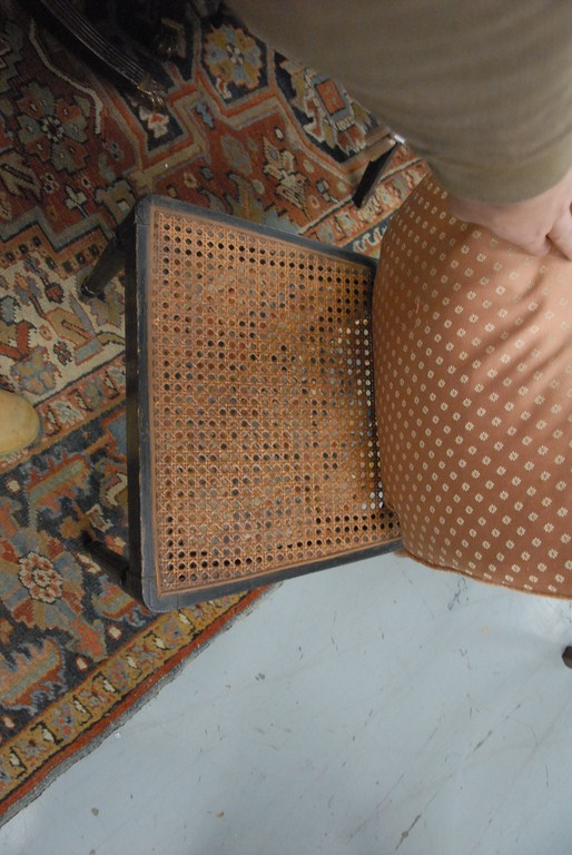 Set of fourteen George IV dining chairs, all in black with gold stenciling, oval backs and cane seats set on turned tapered legs some cane imperfections 1 seat and 2 backs. Provenance: Estate of Charles Archibald Goodwin and Ruth Cheney Goodwin.