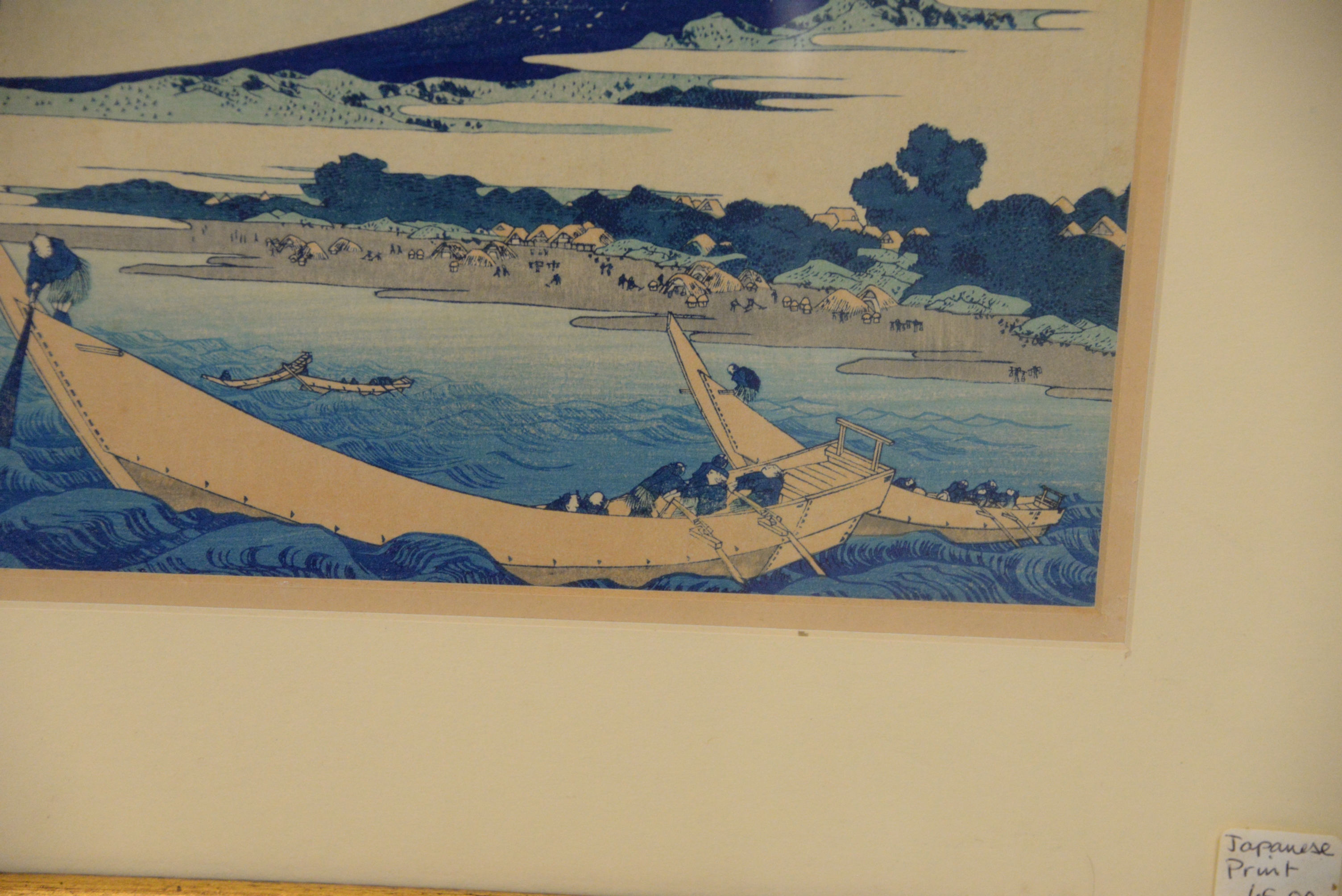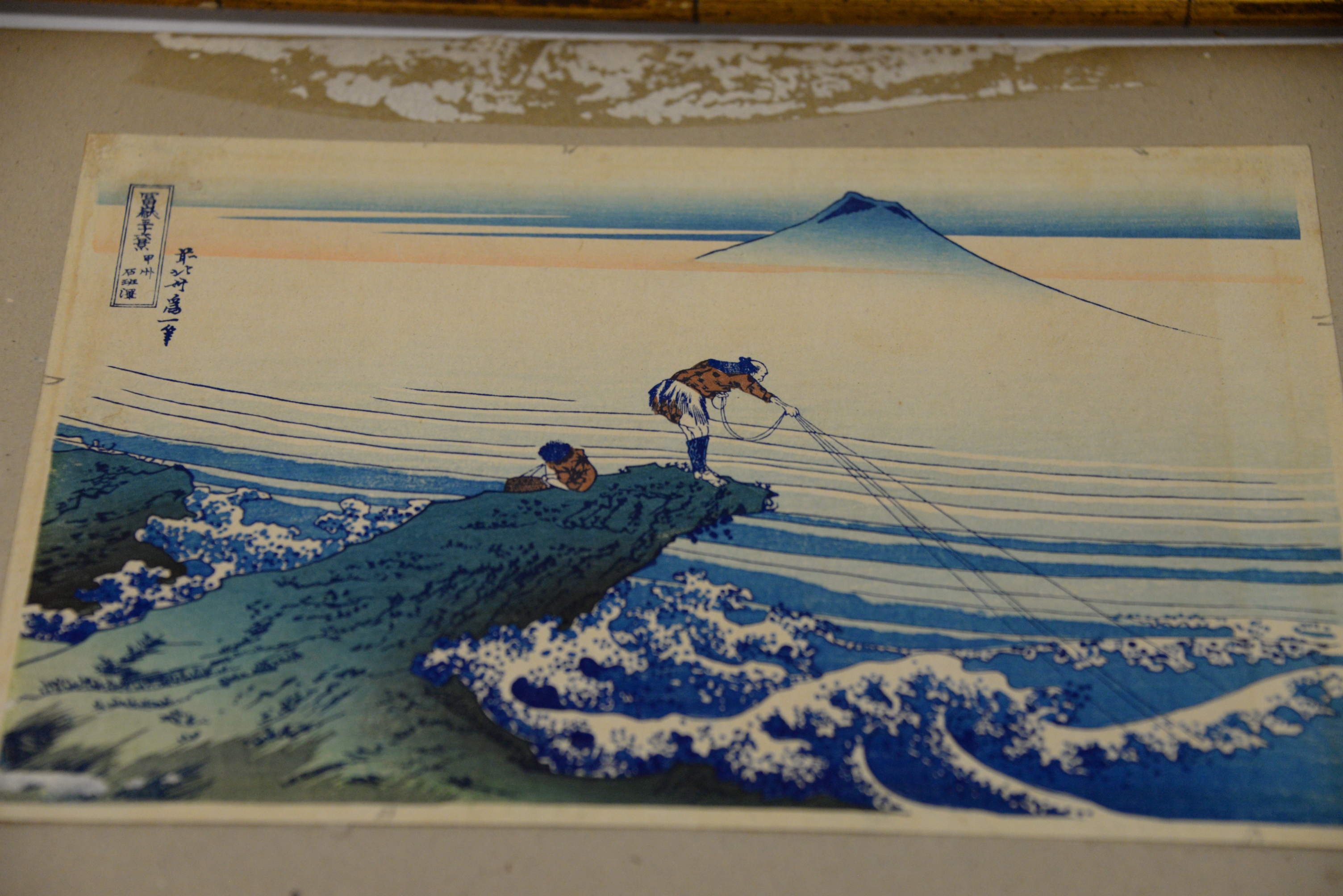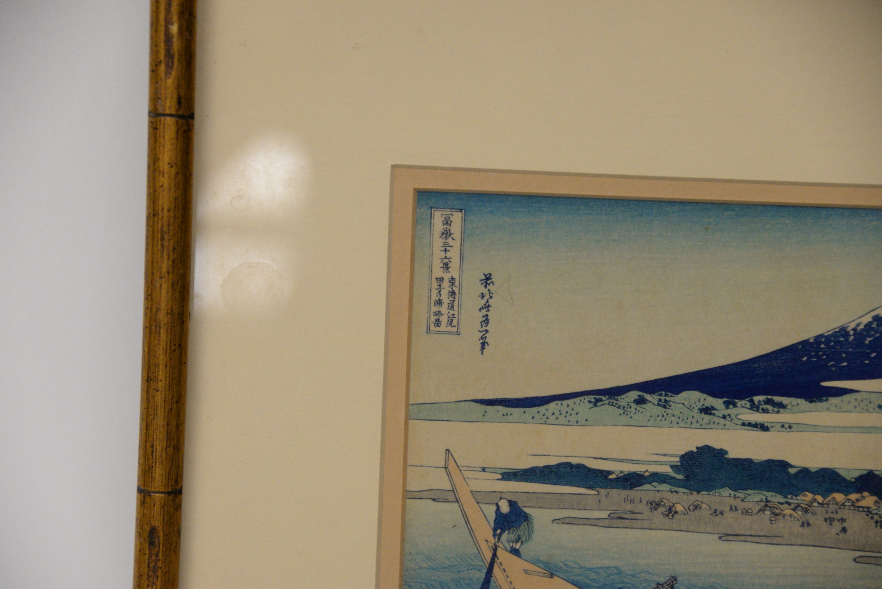 Two Katsushika Hokusai (1760 – 1849), woodblock prints, “Fishing” “Shore of Tago Bay Ejiri” 7″ x 10″.