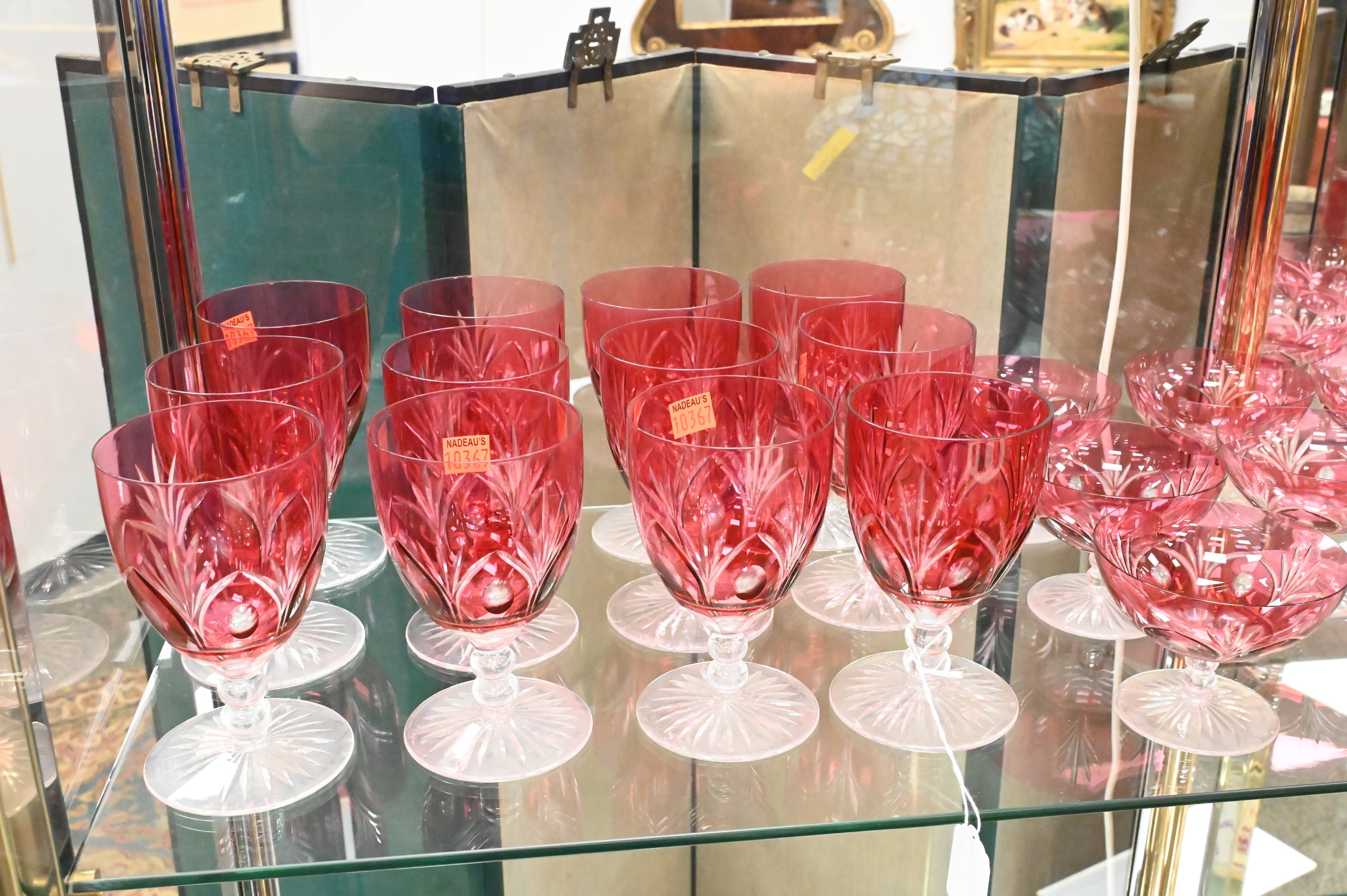Lot 534: 36 Piece Set of Cranberry Cut to Clear