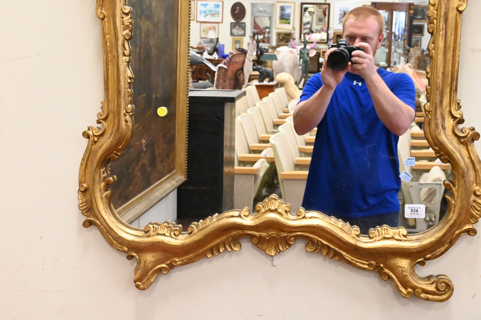 Continental Style Gilt Carved Mirror, 49″ x 32″. Provenance: The Estate of Alina Roisen, Park Avenue, New York.