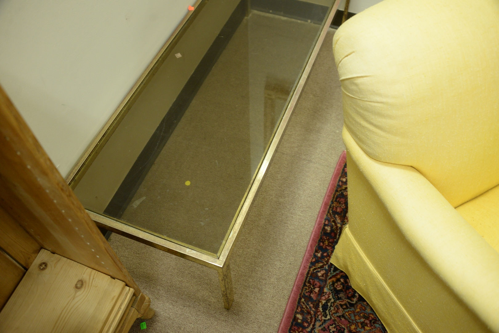 Lot 534: Eight Piece Lot, to include pine bookcase, height 48 inches oak pedestal glass top coffee table bamboo easel a brass mirror, alo…