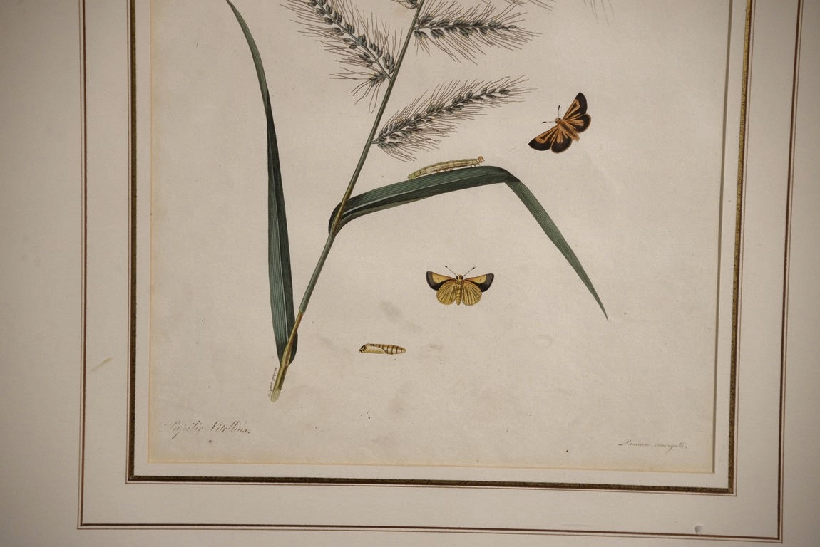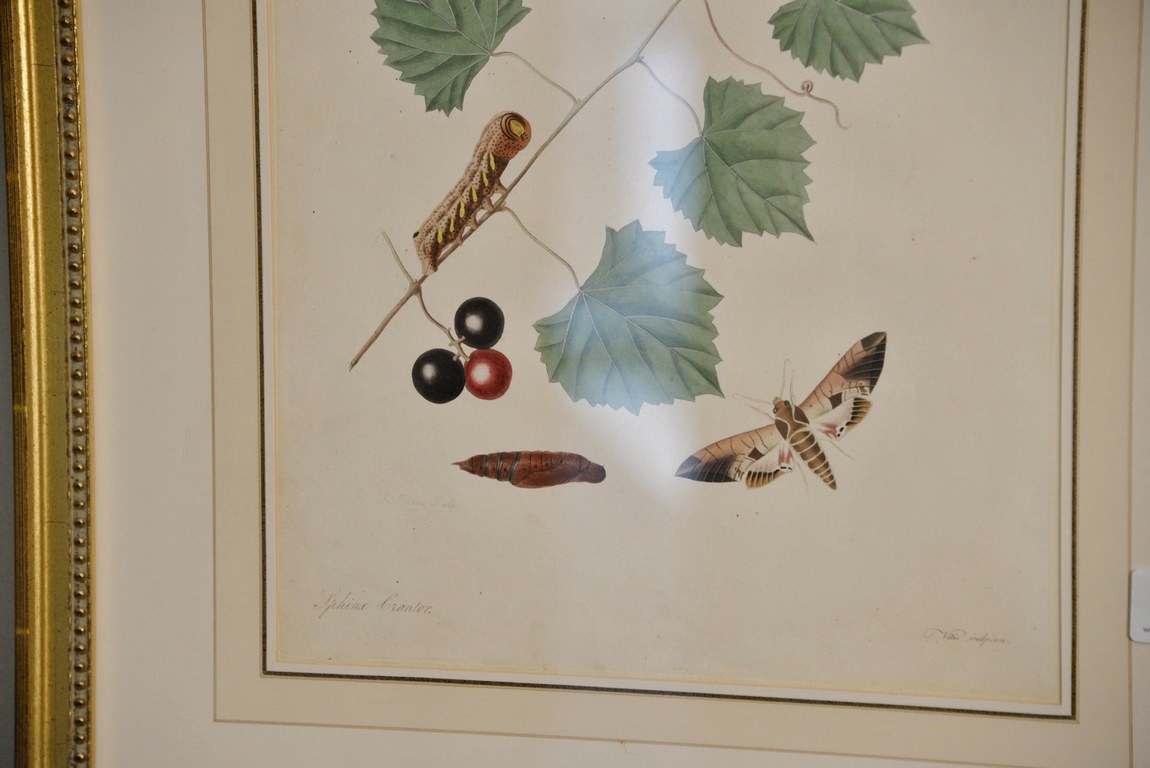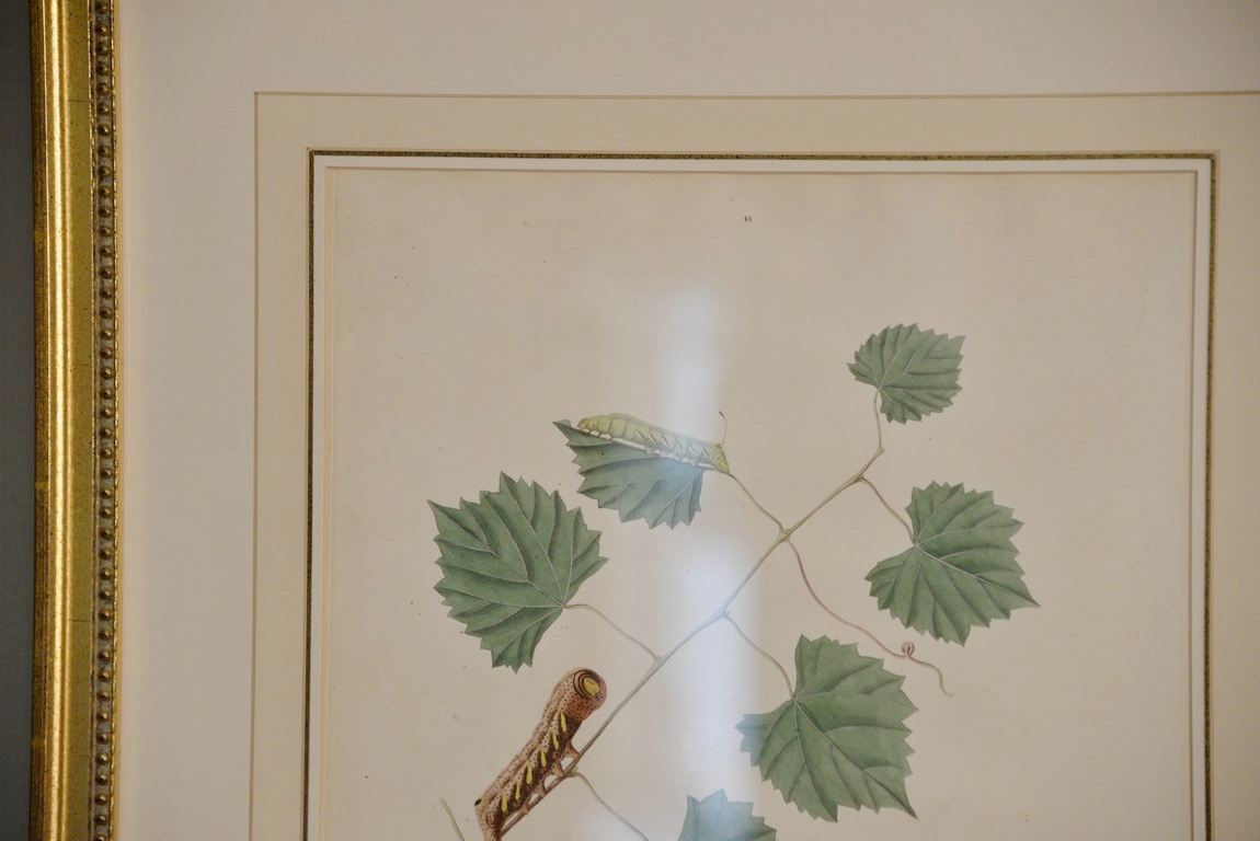 John Abbot 1751-1839 pair of hand colored aquatint engravings Phalaena Vitellius, Brown Bordered Yellow Skipper Butterfly Plate #17 and Sphinx Crantor Plate #41 From The Natural History of the Rarer Lepidoterous Insects of Georgia Published by James Edward Smith 1759-1828 framed and matted by W. Graham Arader III sight size: 14 1/2 x 11 1/2 Provenance: Property from Credit Suisse’s Americana Collection