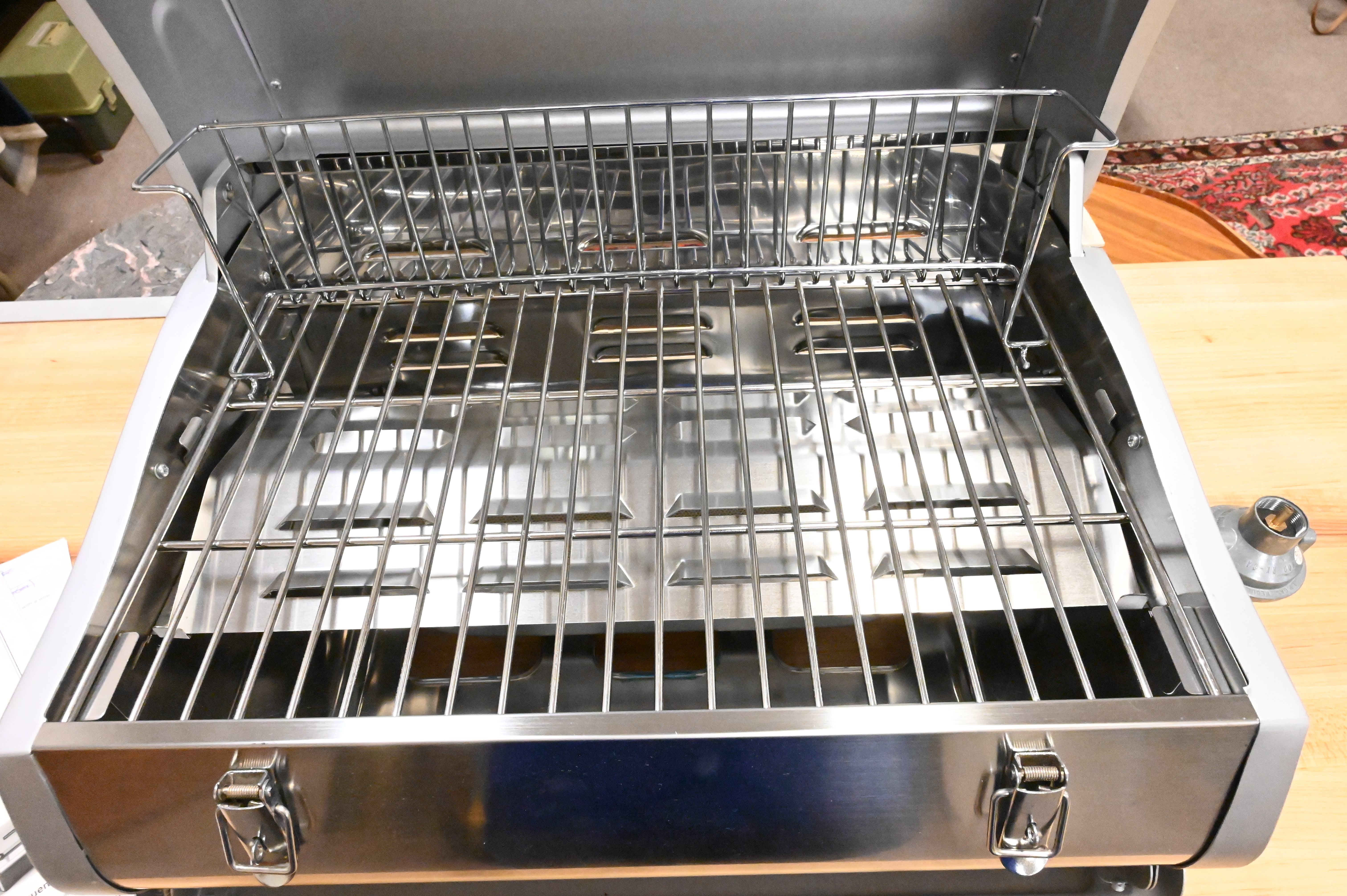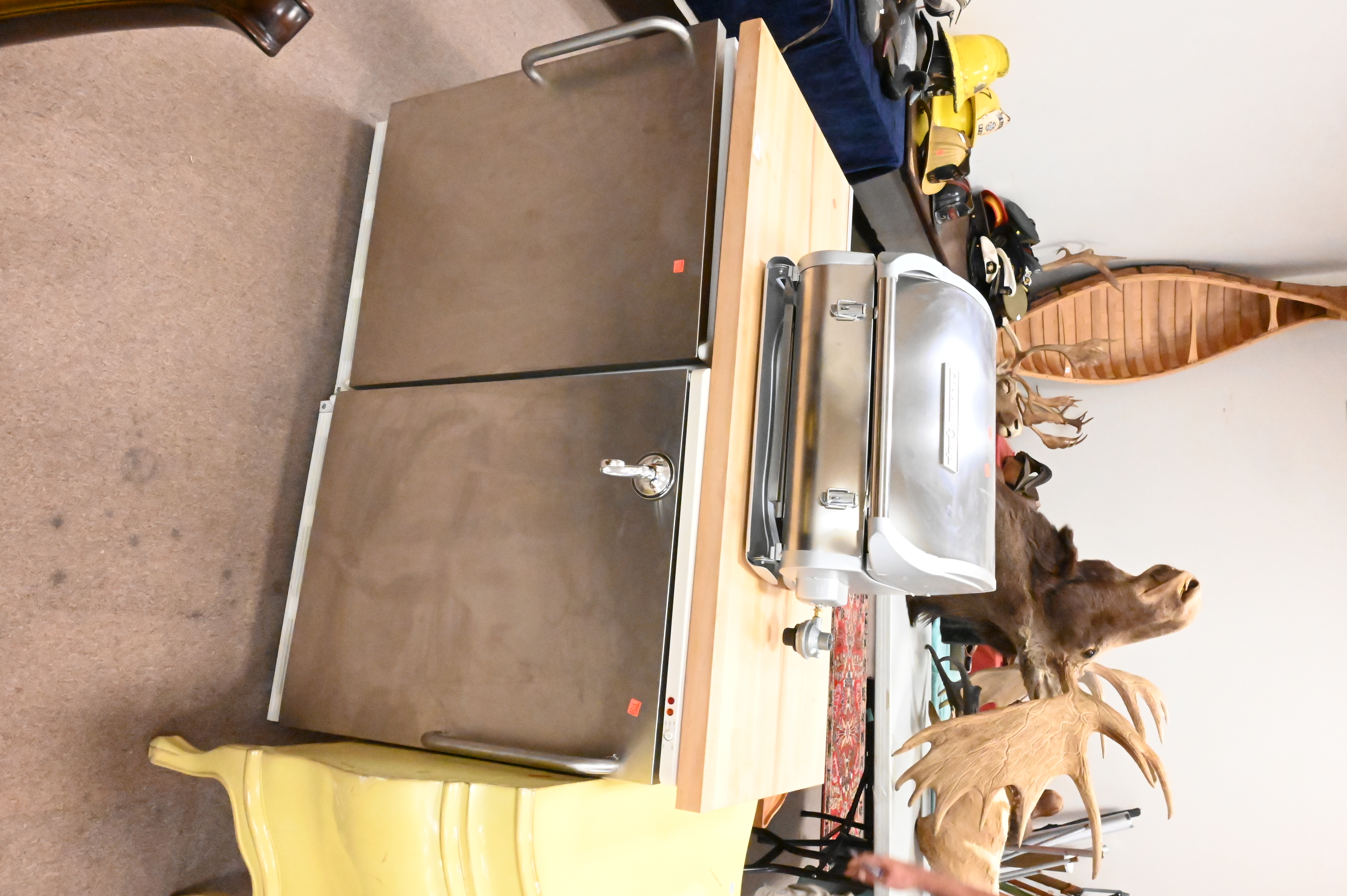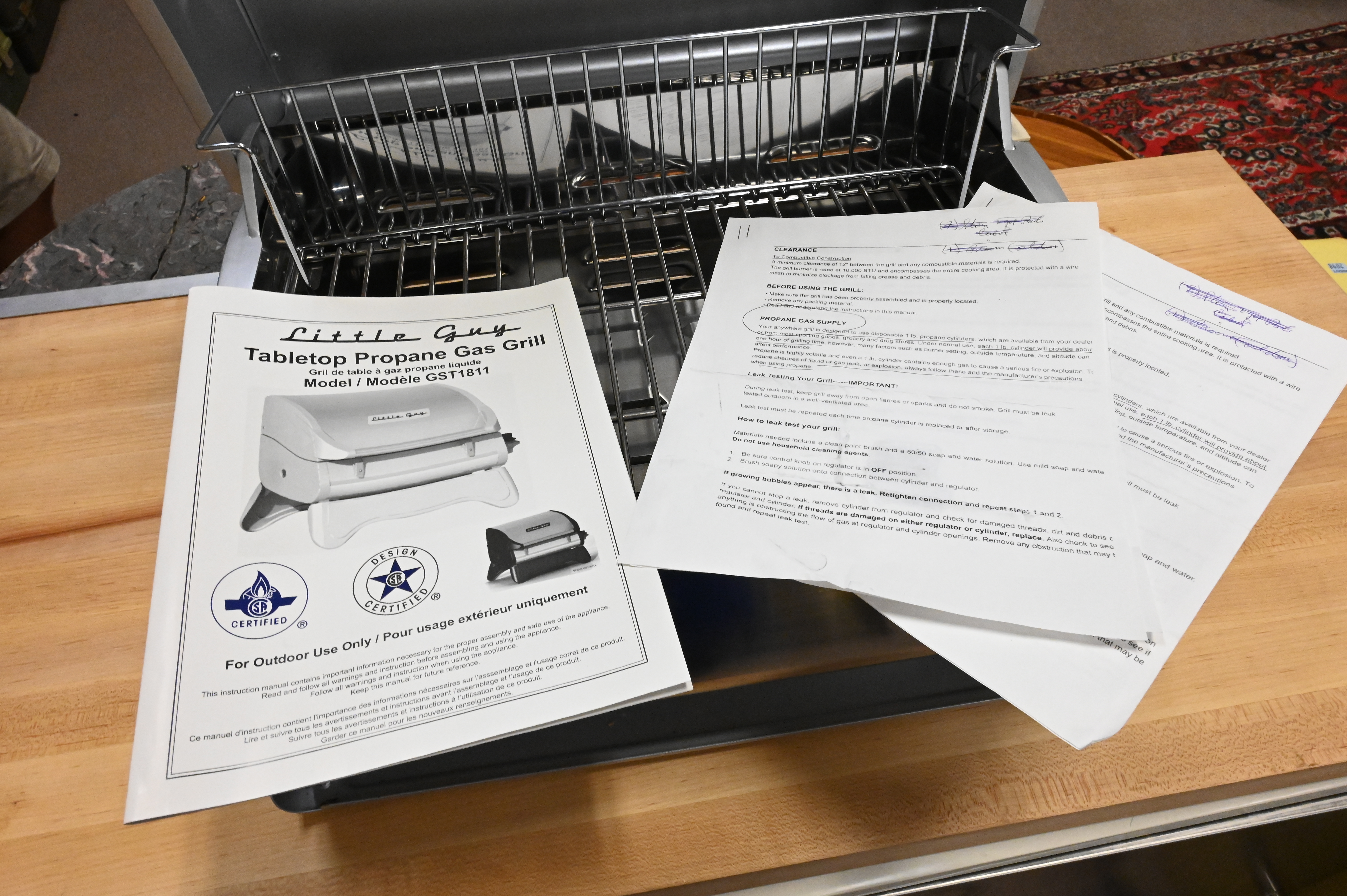 height 35 inches, top 22″x48″, as well as a Little Guy table top propane gas grill model number GST1811