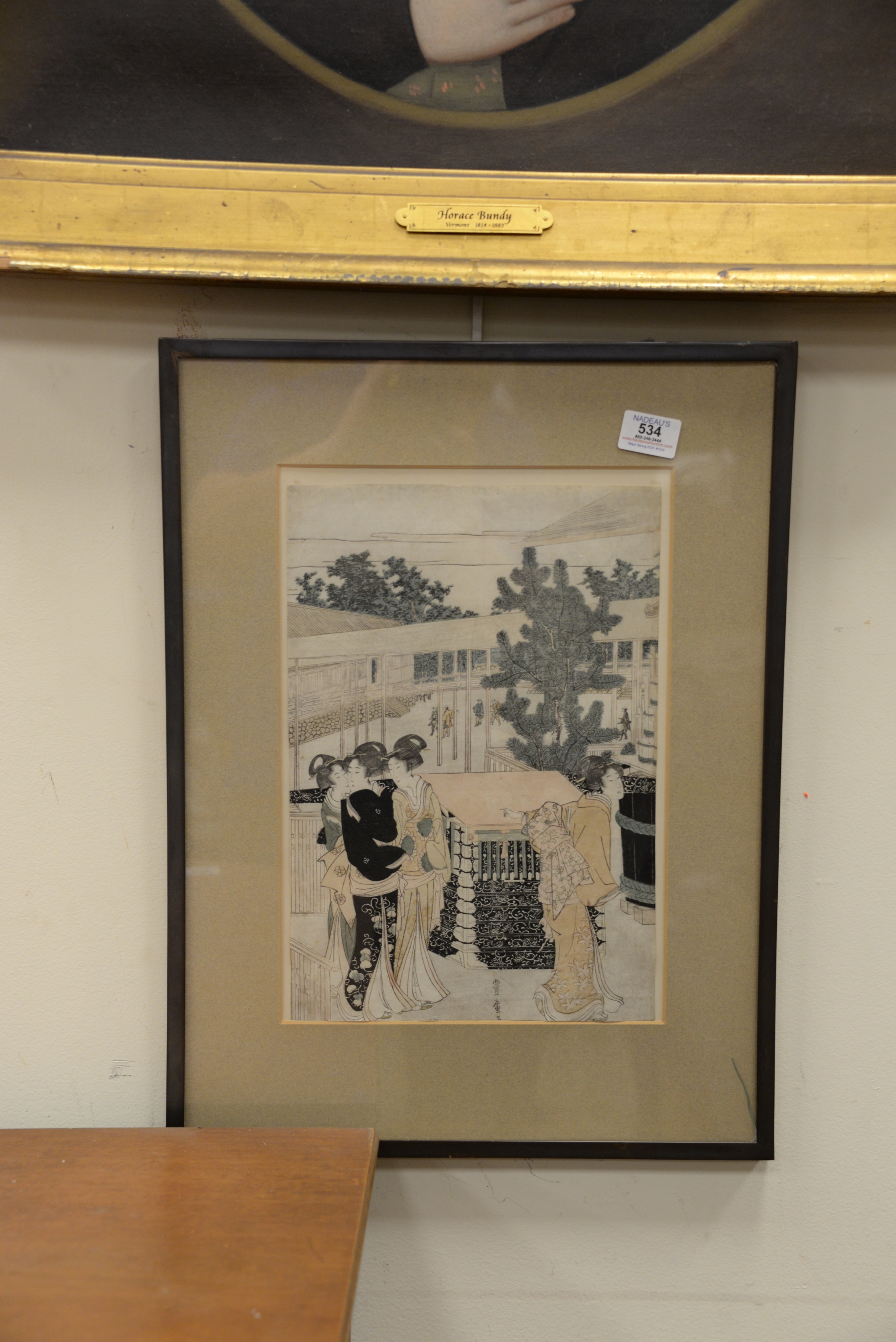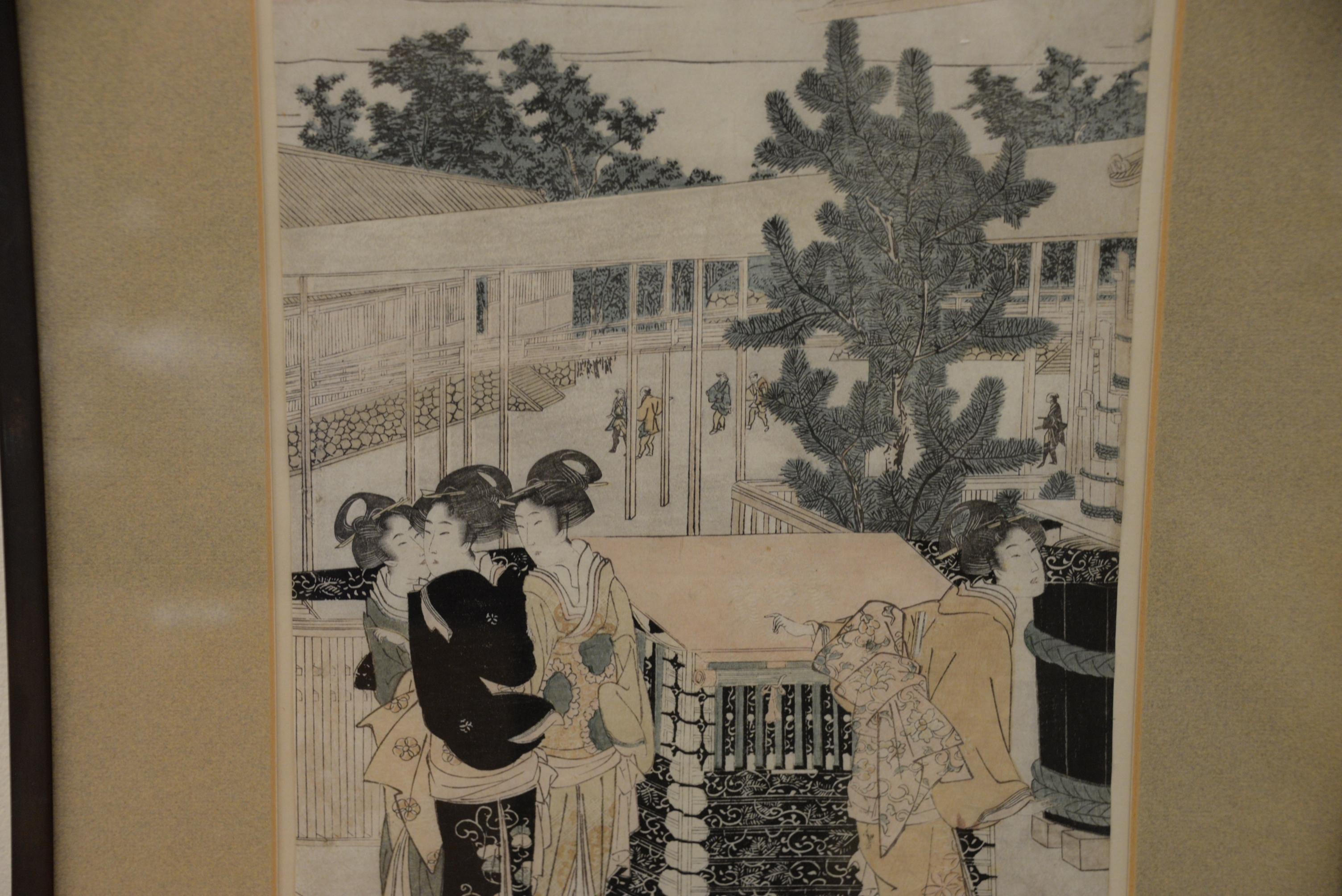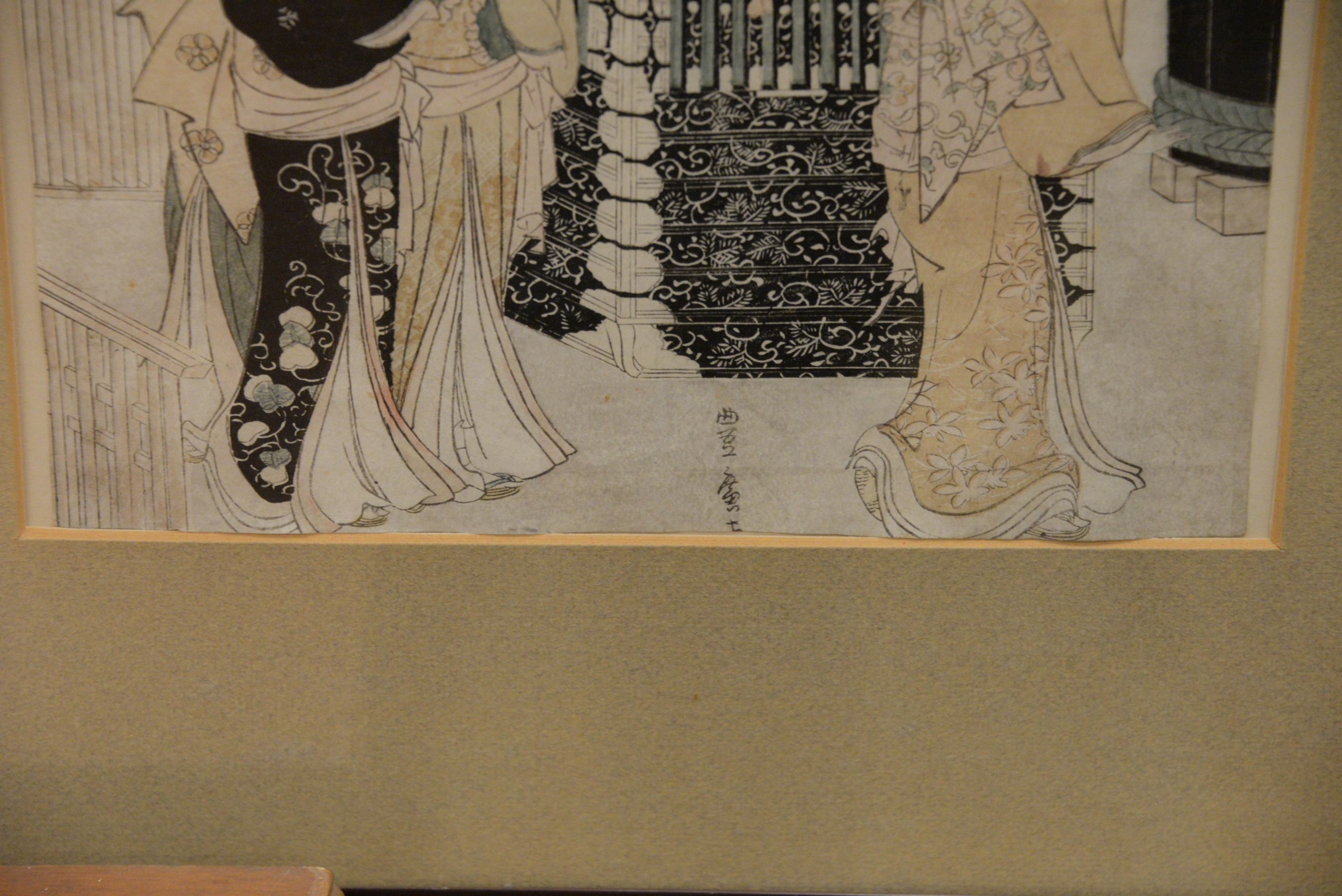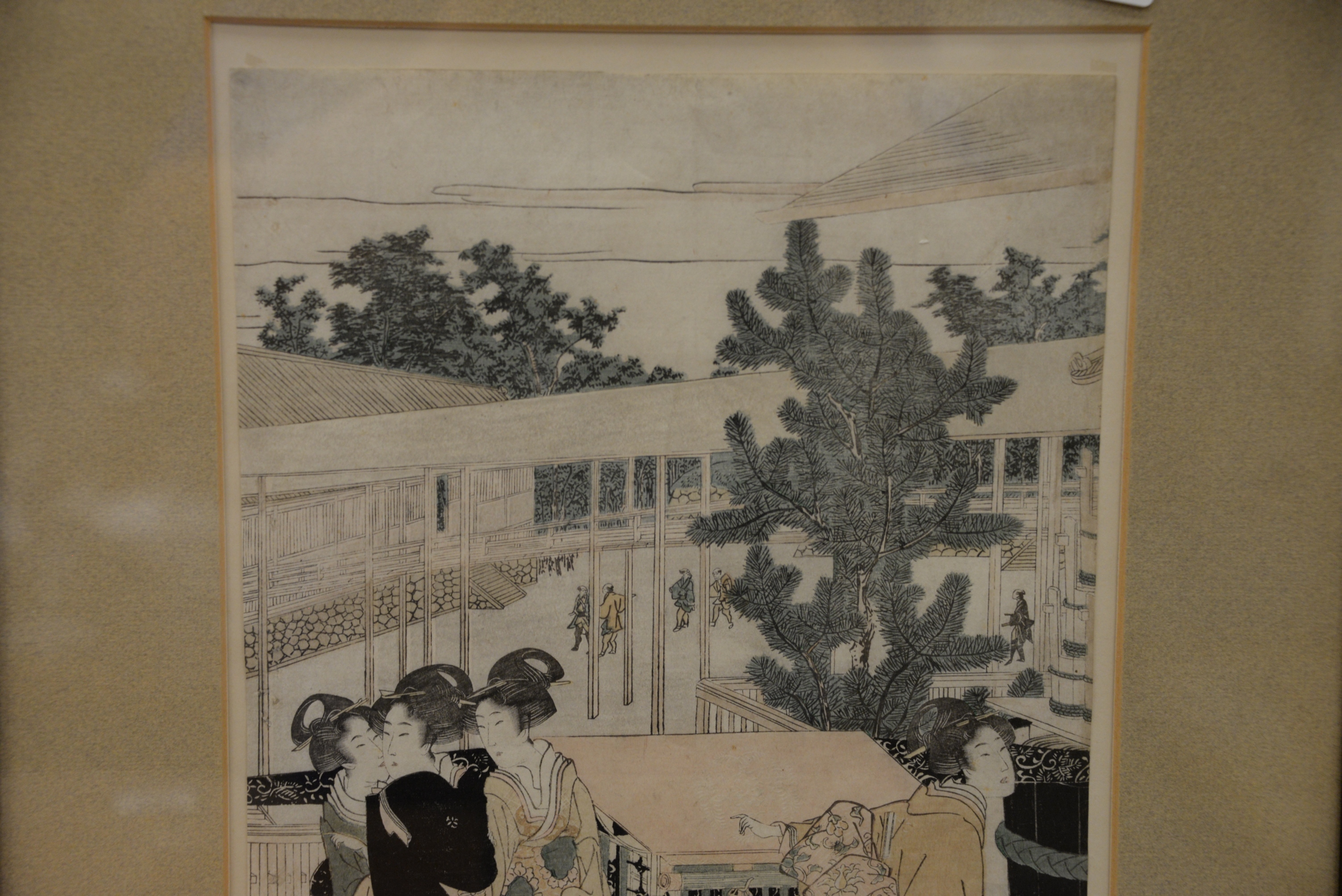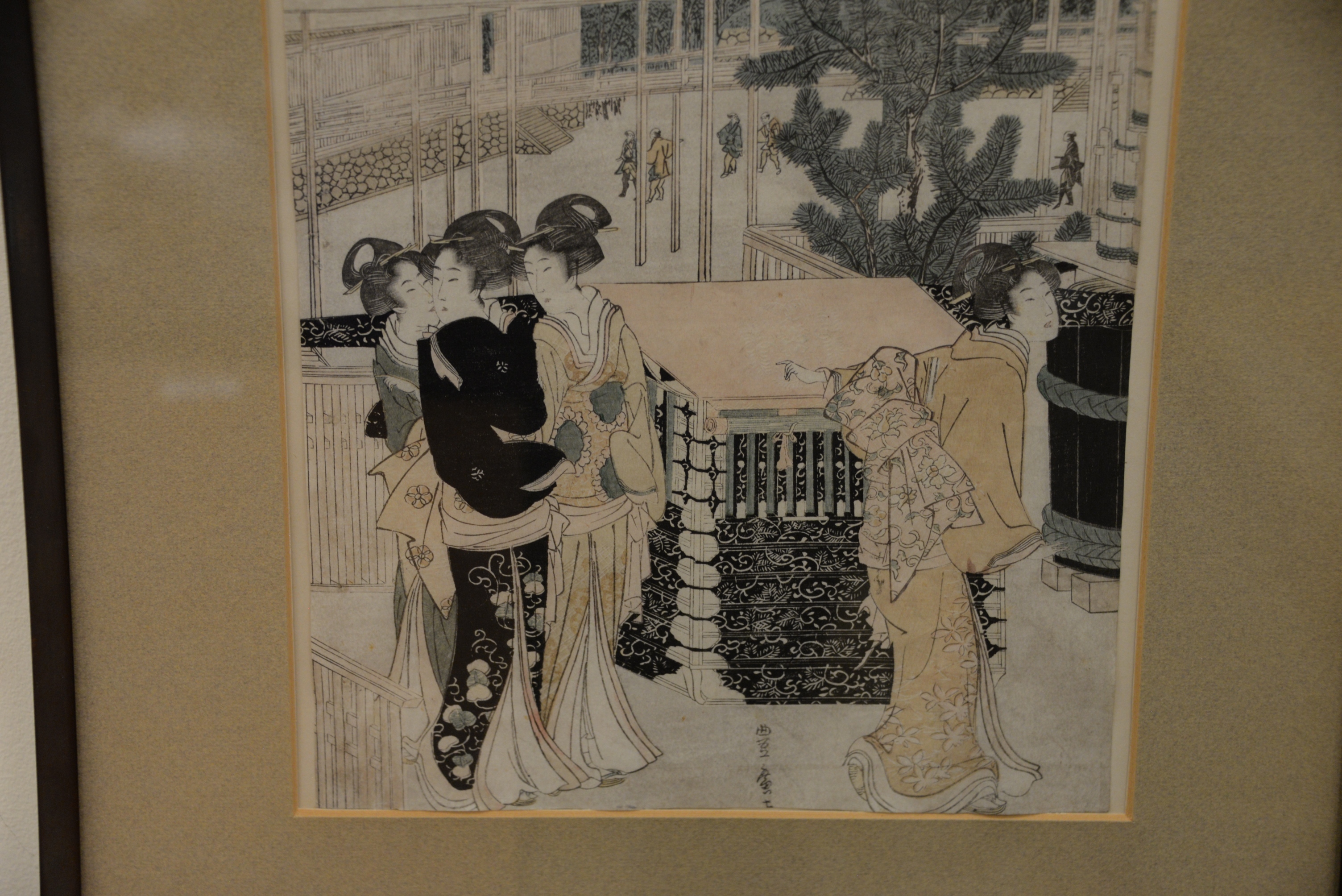 Utagawa Toyoharu Court, as with Geisha Myohoji a Horinouchi (1773 – 1826) Japanese Woodblock signed bottom center print 14″ x 10″