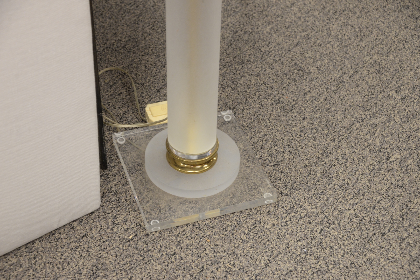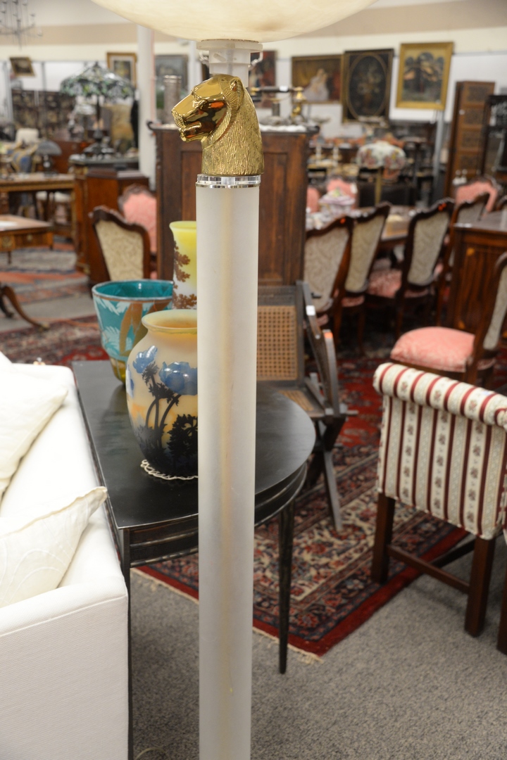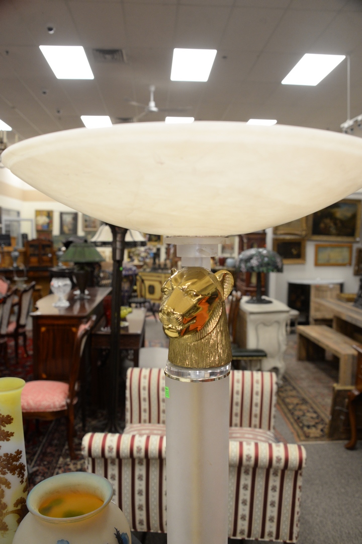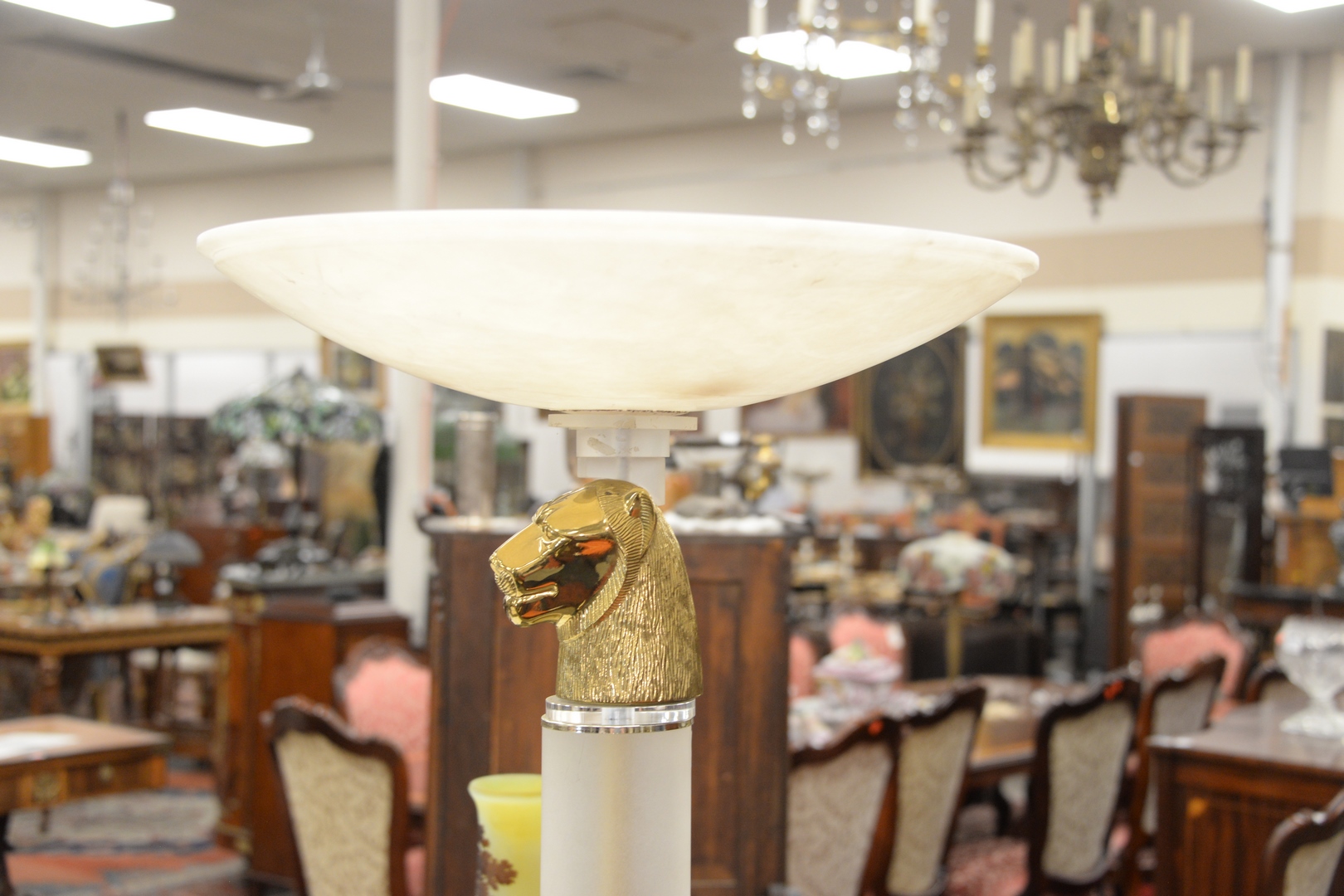 Lot 535: Contemporary Floor Lamp having gilt lion head and alabaster shade, height 68 inches.