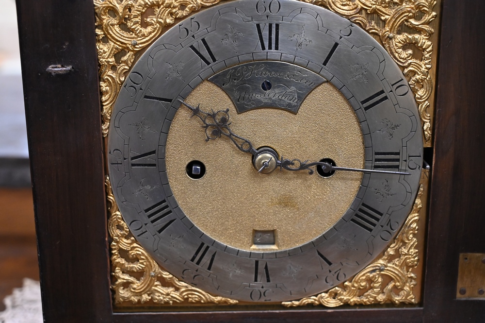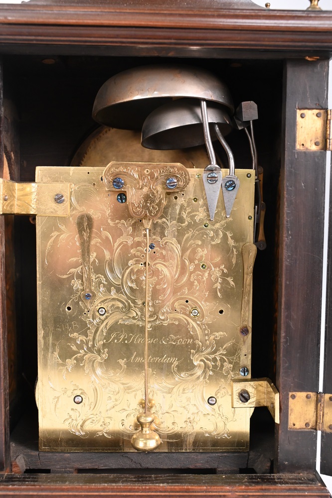 Lot 535: Dutch Walnut Repeating Alarm Chime Clock, dial marked J.P. Kroese & Zoon, Amsterdam, mid 18th century, having brass dial with pierce…