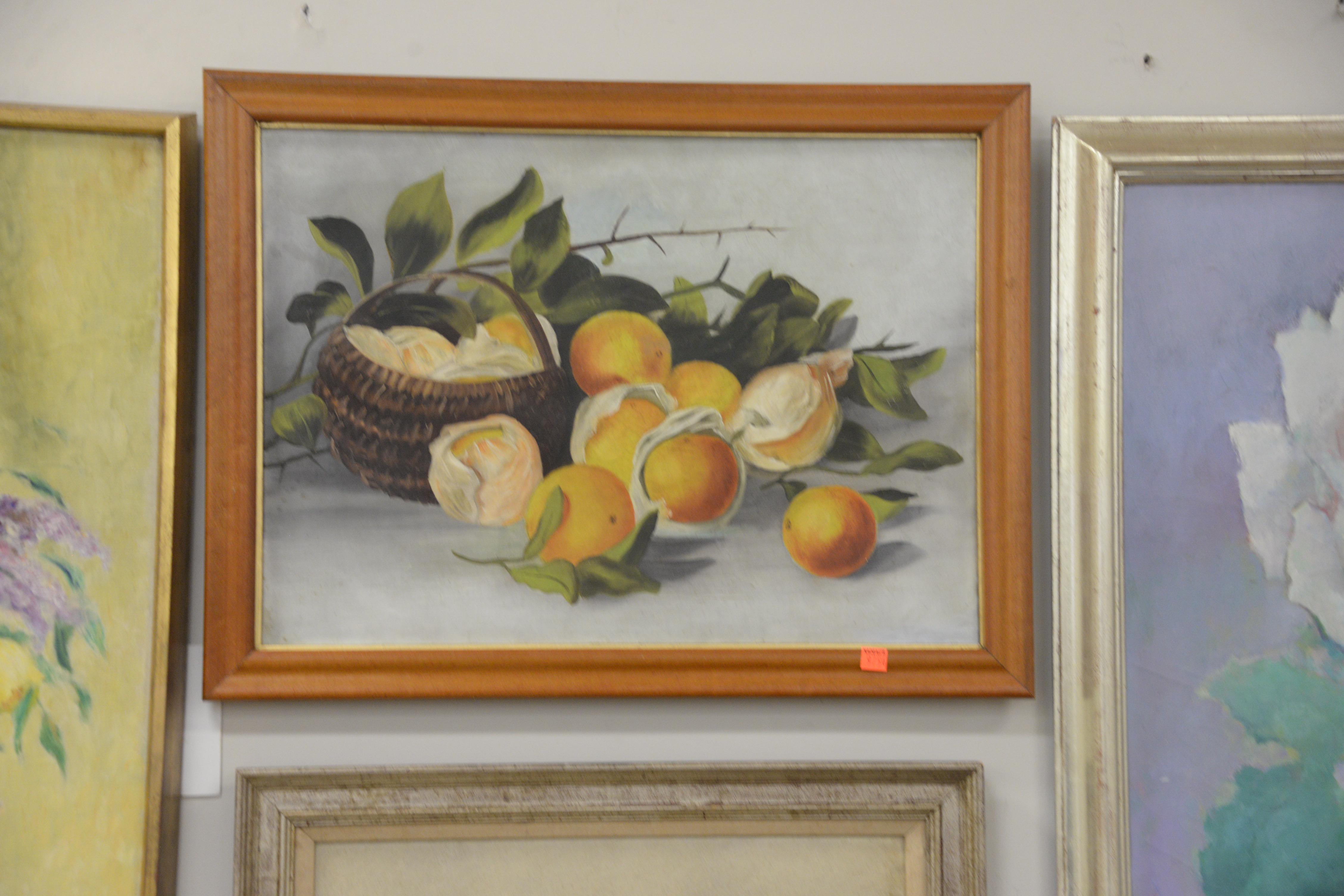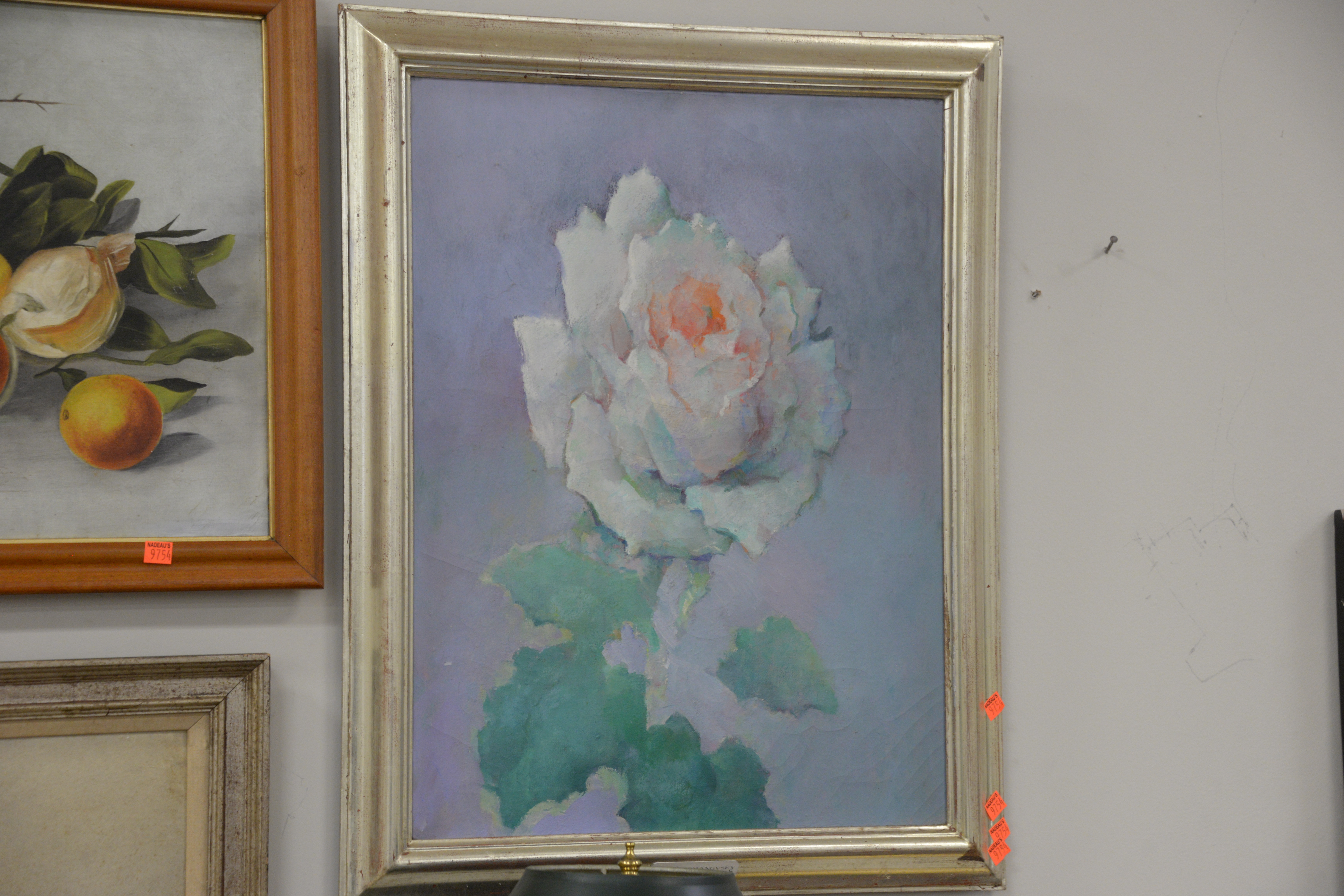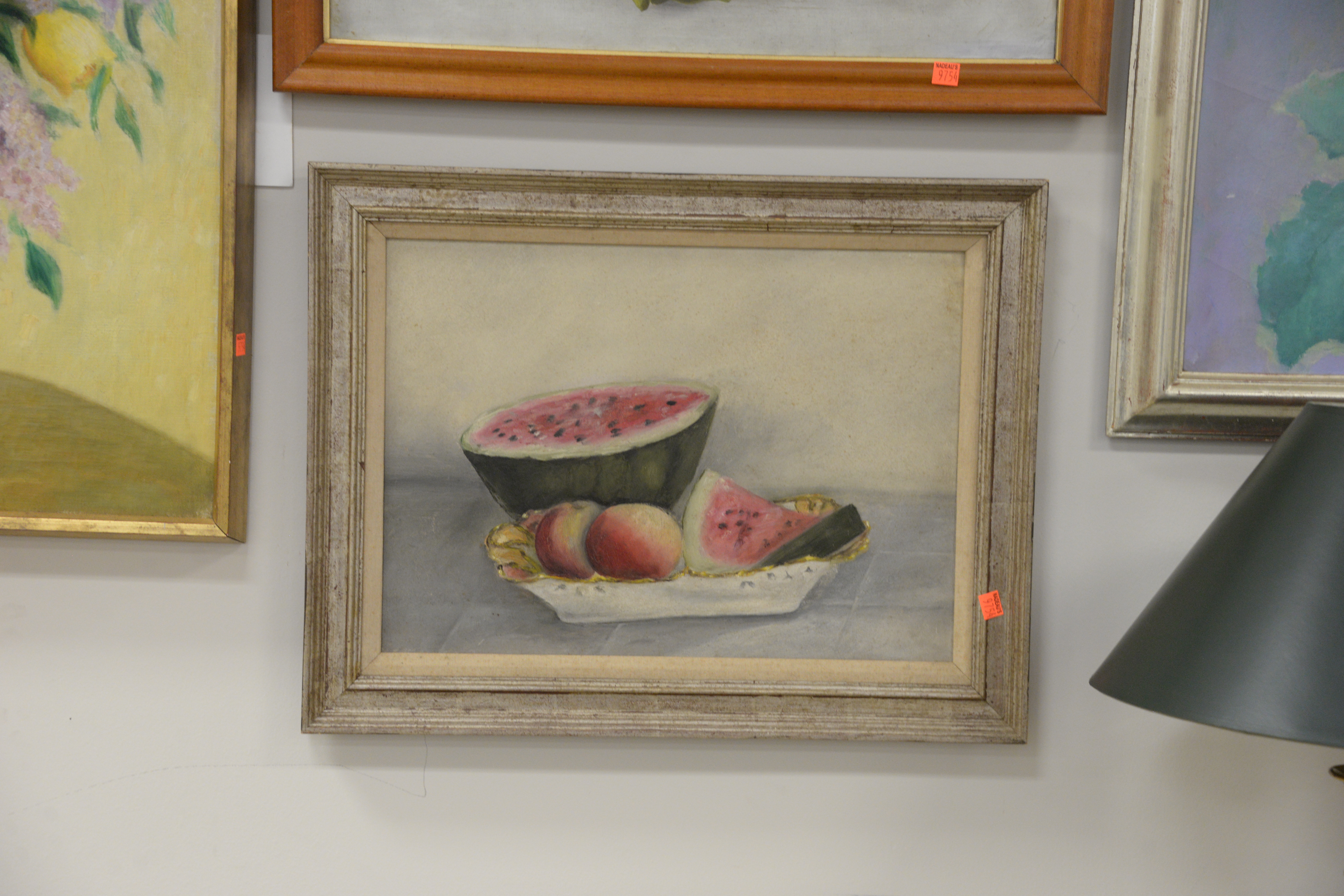 Lot 535: Four Piece Group of Paintings, to include White Rose, oil on canvas still life with watermelons, oil on panel still life of frui…