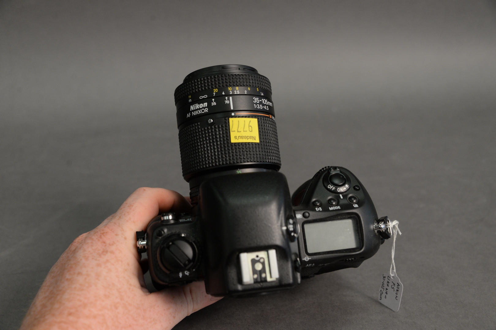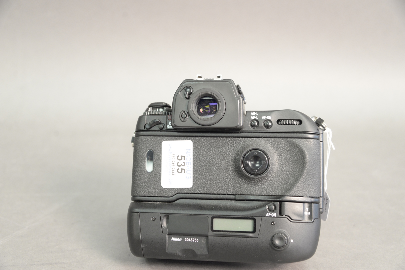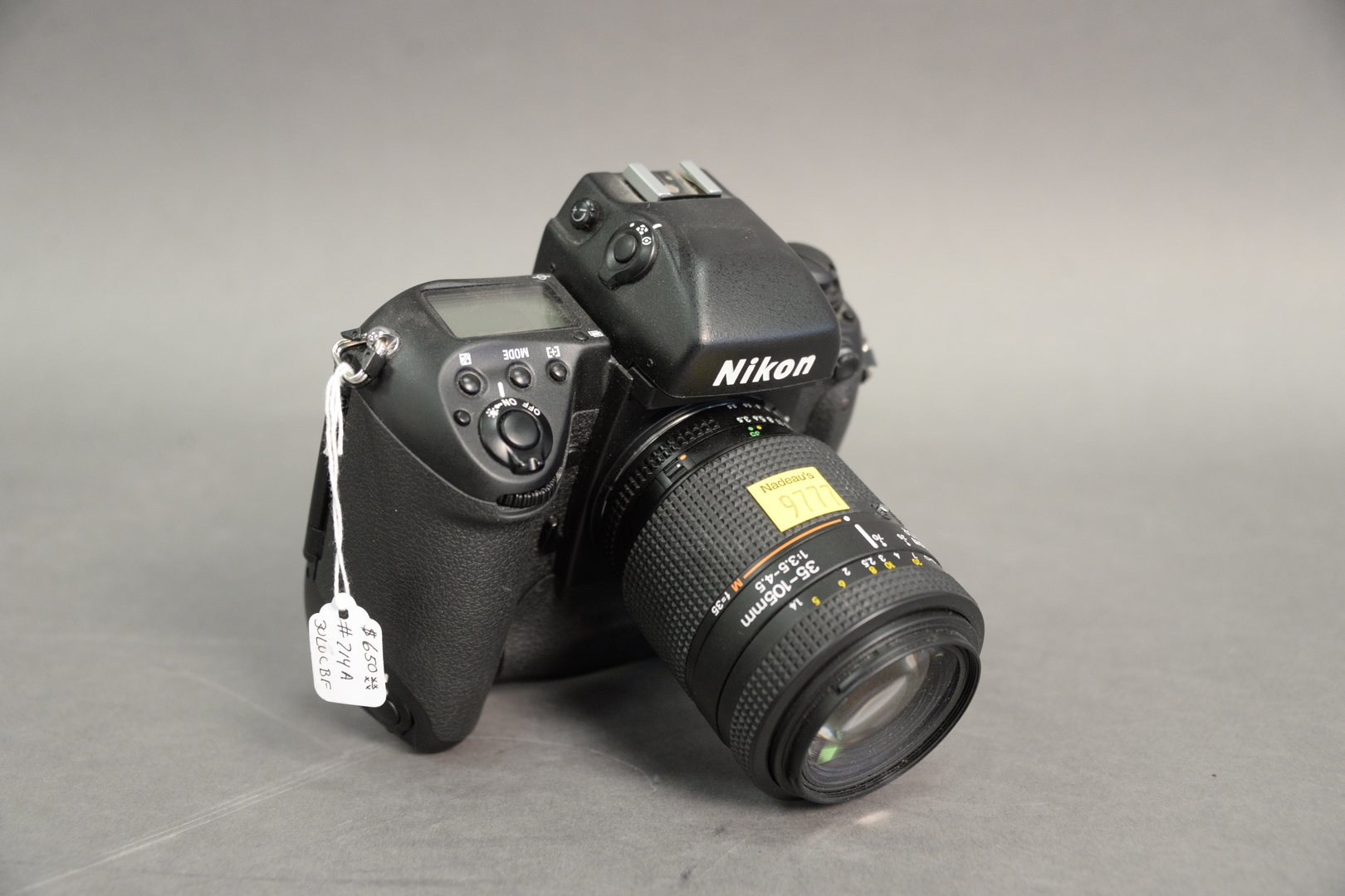 Nikon F5 35mm Camera, along with a AF Nikkor 1:3.5 – 4.5 lens, serial number 3045256.