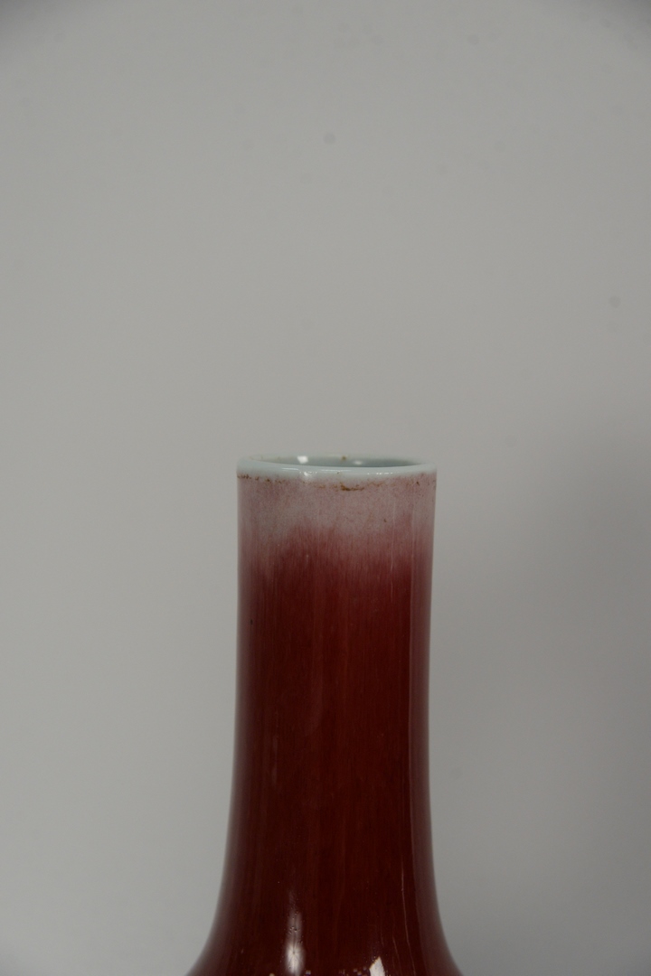 Pair of Chinese Oxblood Glazed Porcelain Gourd Vases, drilled, height 15 1/2 inches. Provenance: Collection from Mr. and Mrs. Fowler, West Hartford, Connecticut.