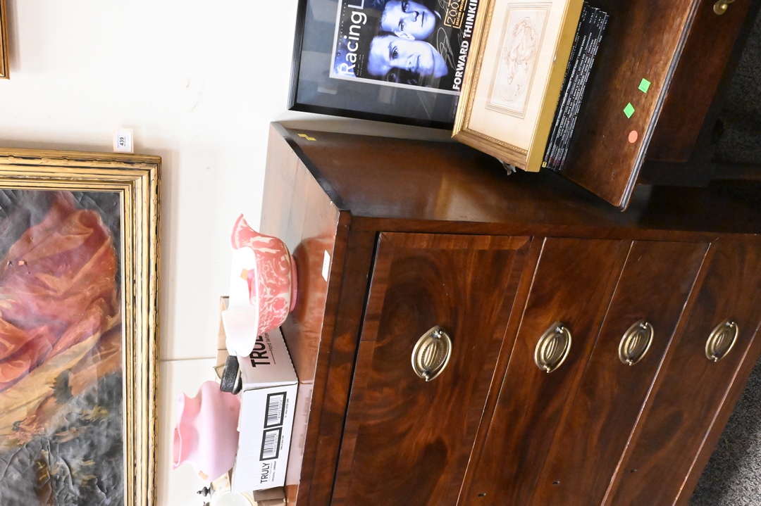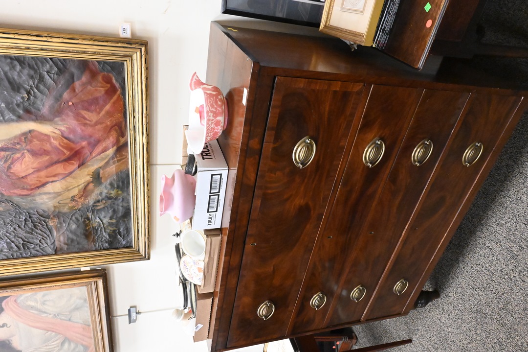 Sheraton Four Drawer Chest, circa 1830, height 46 inches, top 20 1/2″ x 44 1/2″.