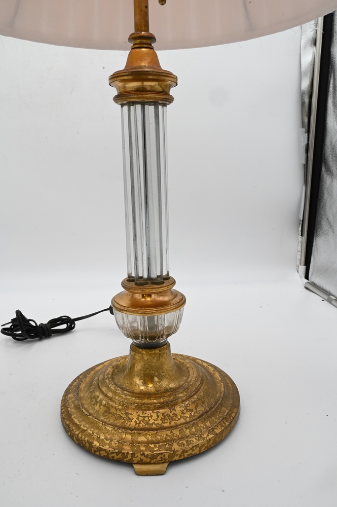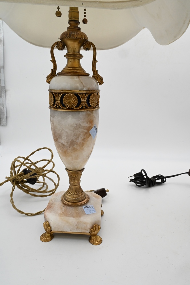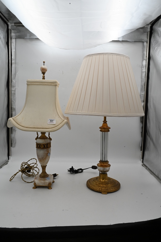 Two Table Lamps, to include alabaster with brass mounts; and a crystal and brass lamp; height 28 inches.