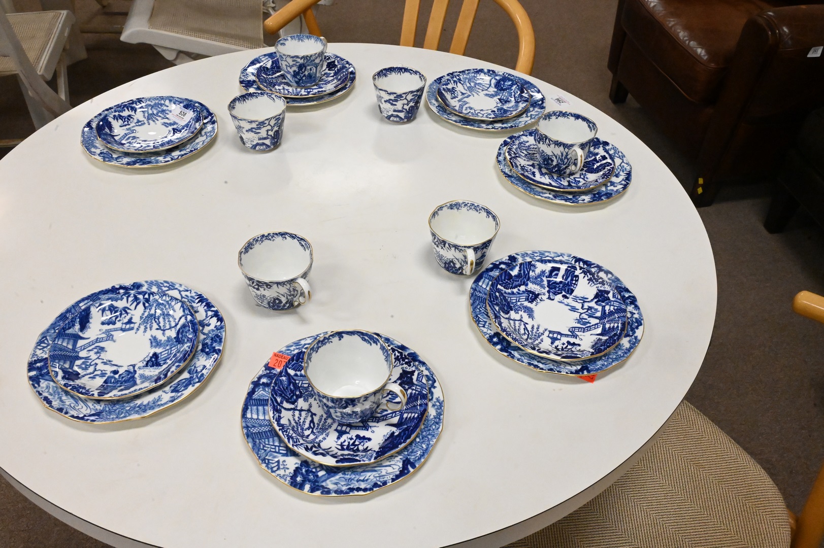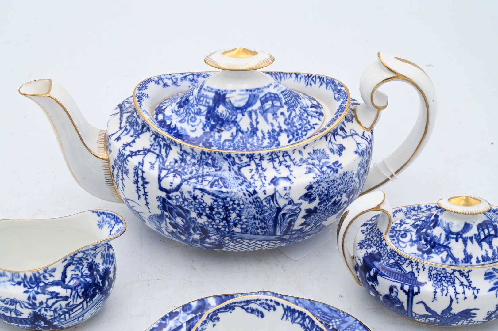 26 Piece Royal Crown Derby Blue Mikado Porcelain Dessert Set, to include a teapot, creamer, covered sugar, 8 dessert plates, 8 teacups, along with 8 saucers.