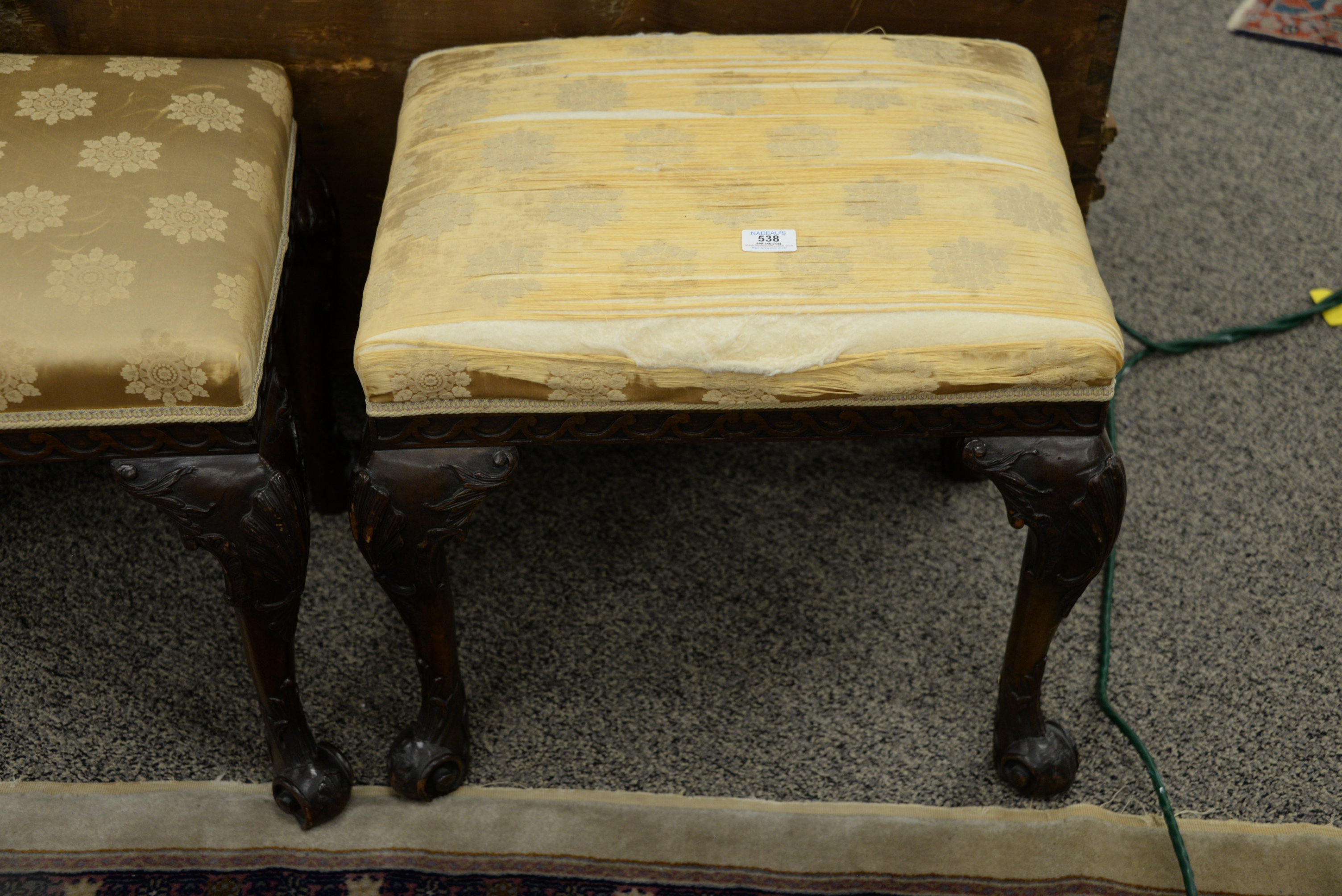 Lot 538: A Pair of George III Mahogany and Upholstered Stools