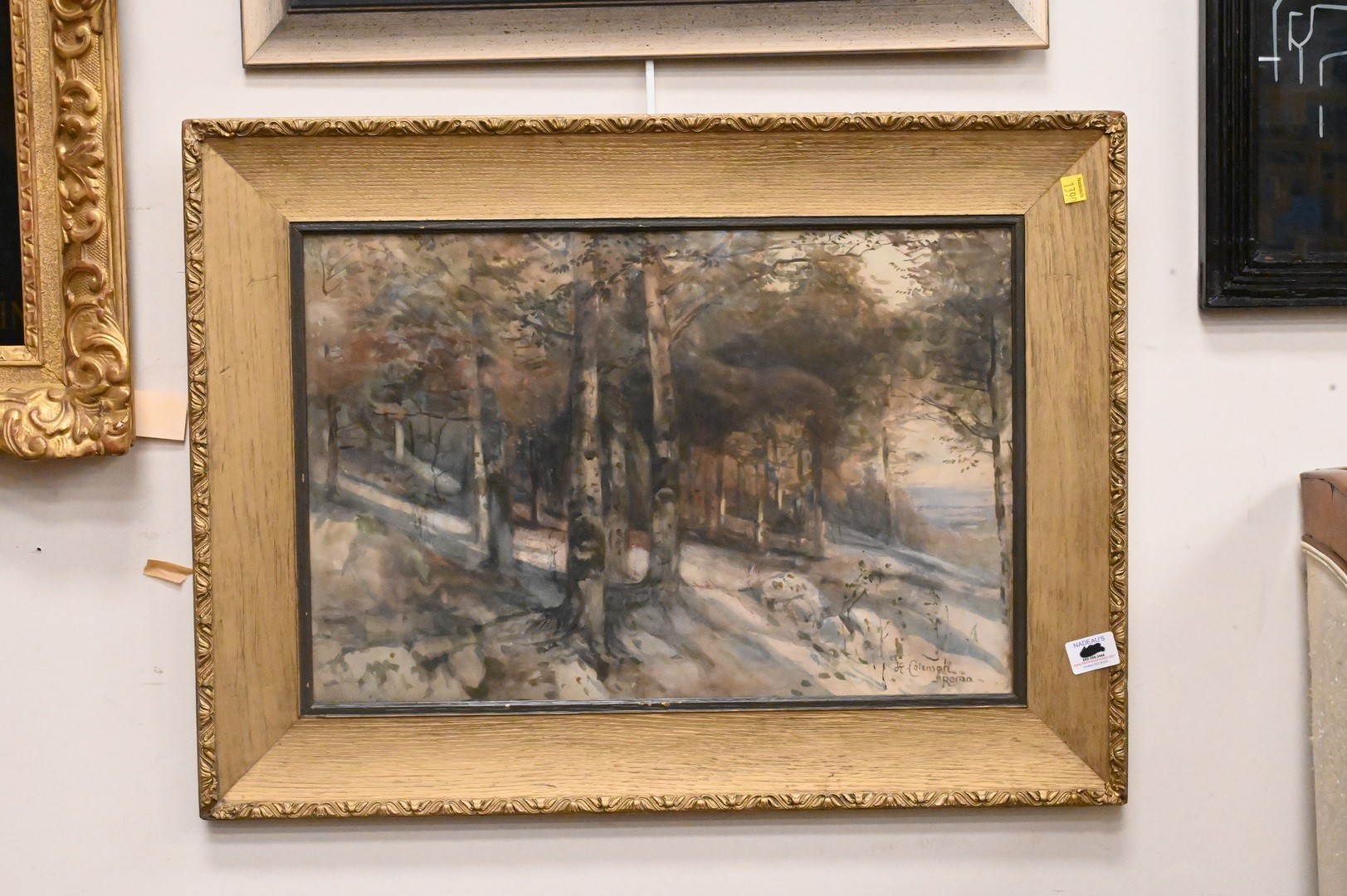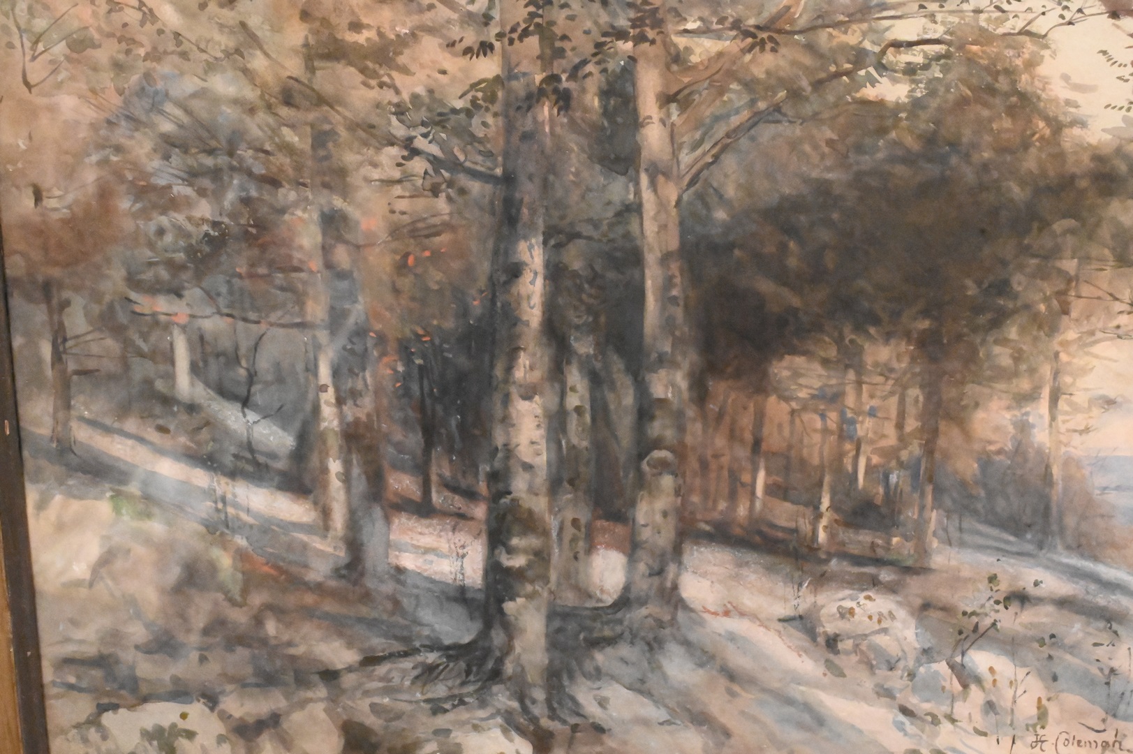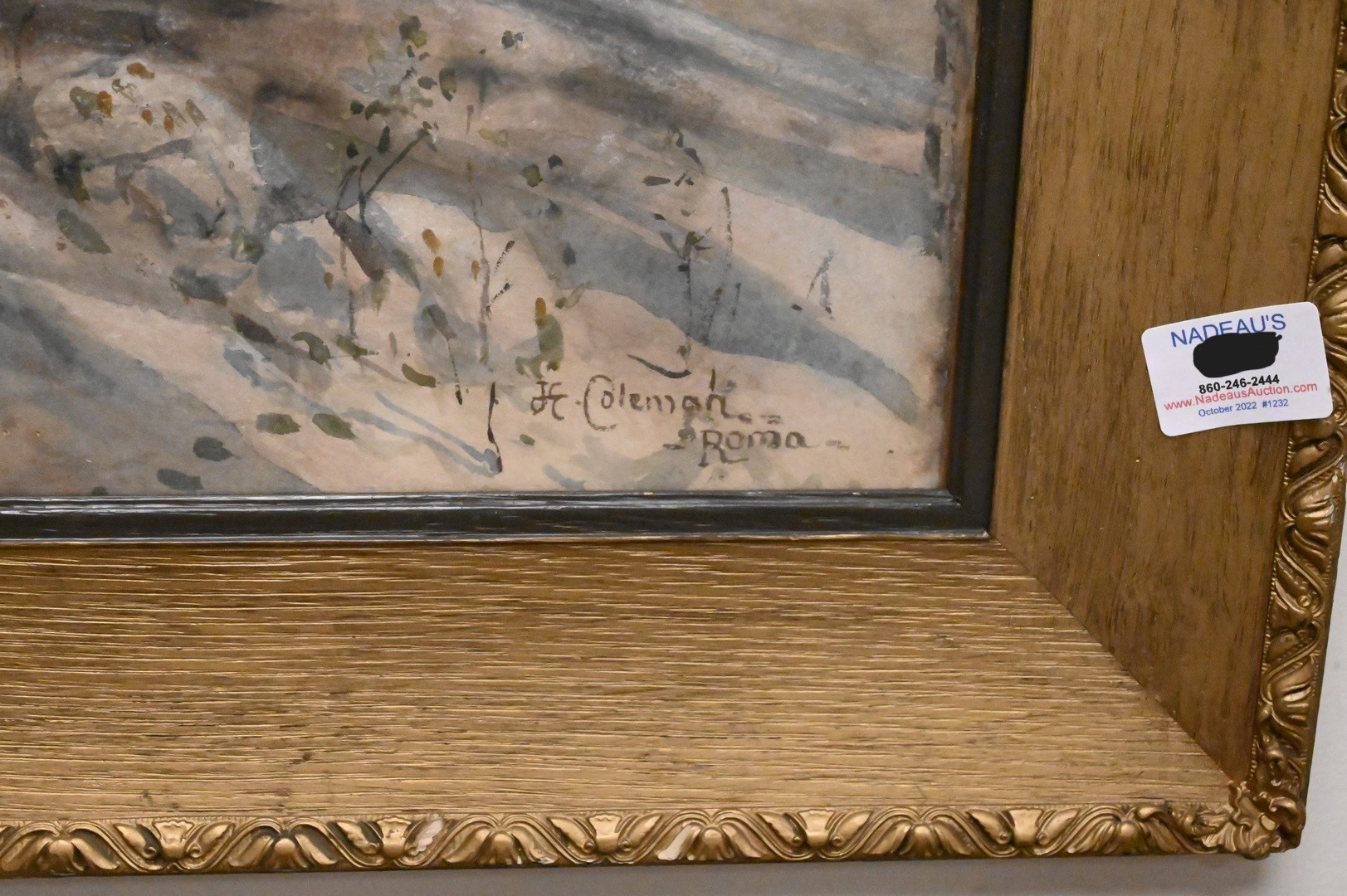 Enrico Henri Coleman (1846 – 1911), watercolor, winter landscape, signed lower right “H. Coleman, Roma”, 14 1/4″ x 21 1/4″.