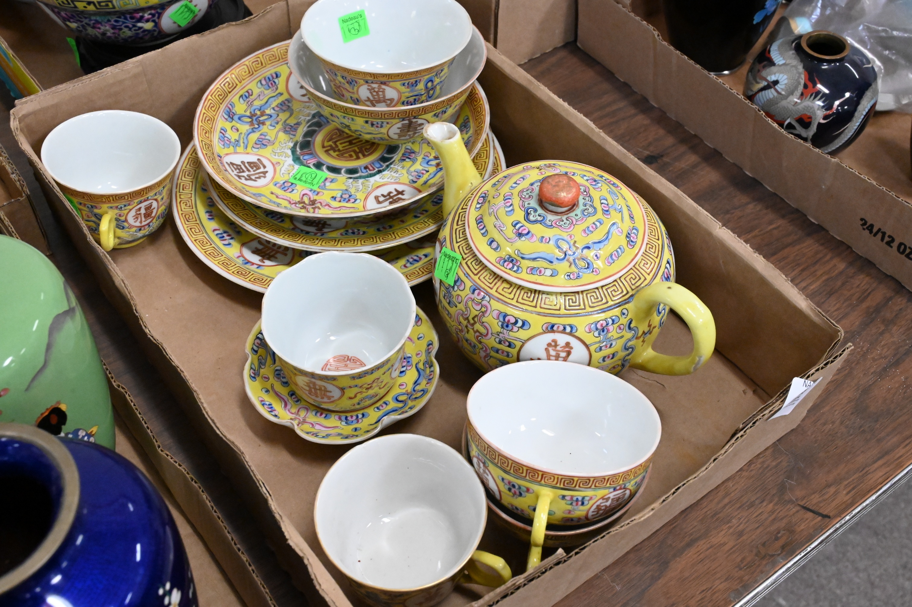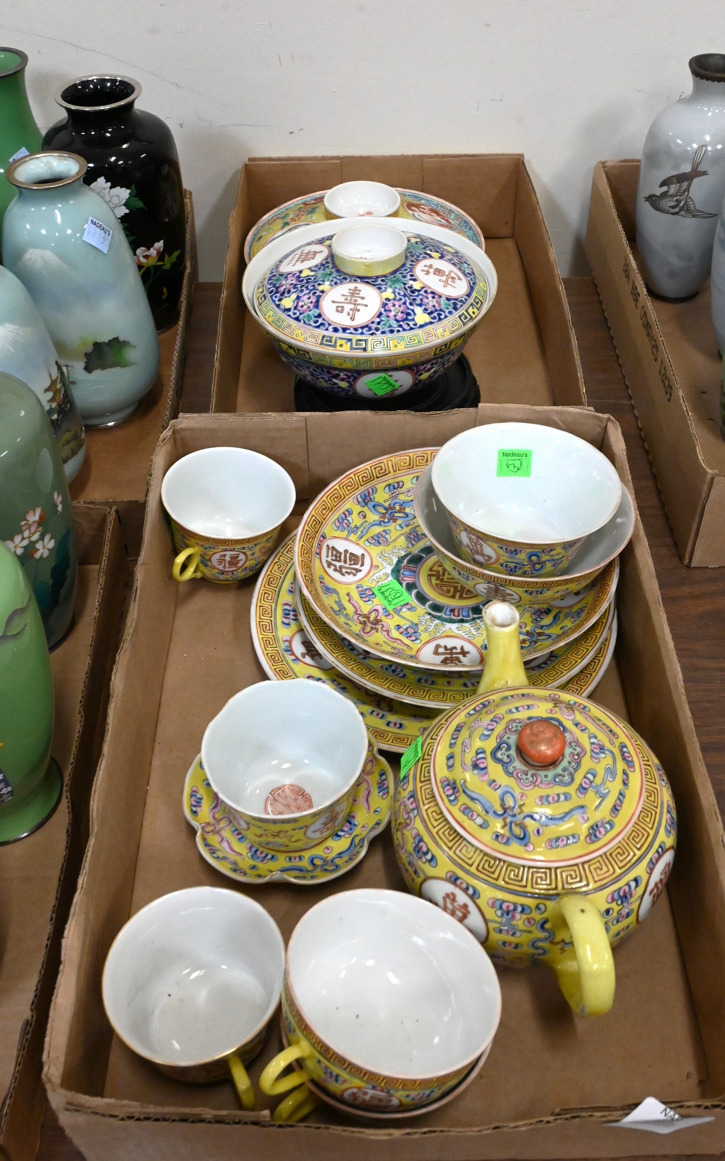 Lot 539: 14 Piece Assembled Chinese Yellow Ground Porcelain GangXu Period Tea Service