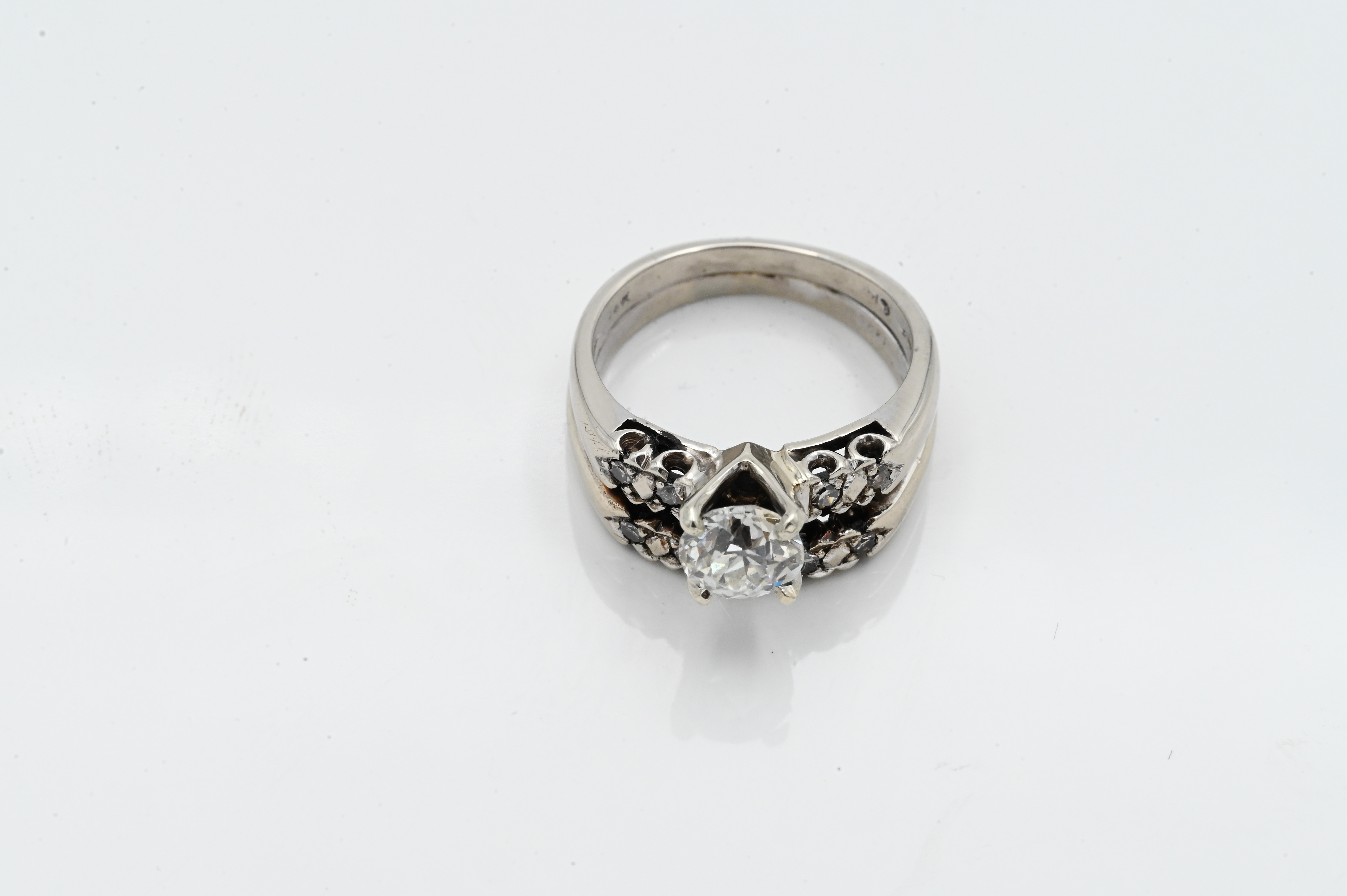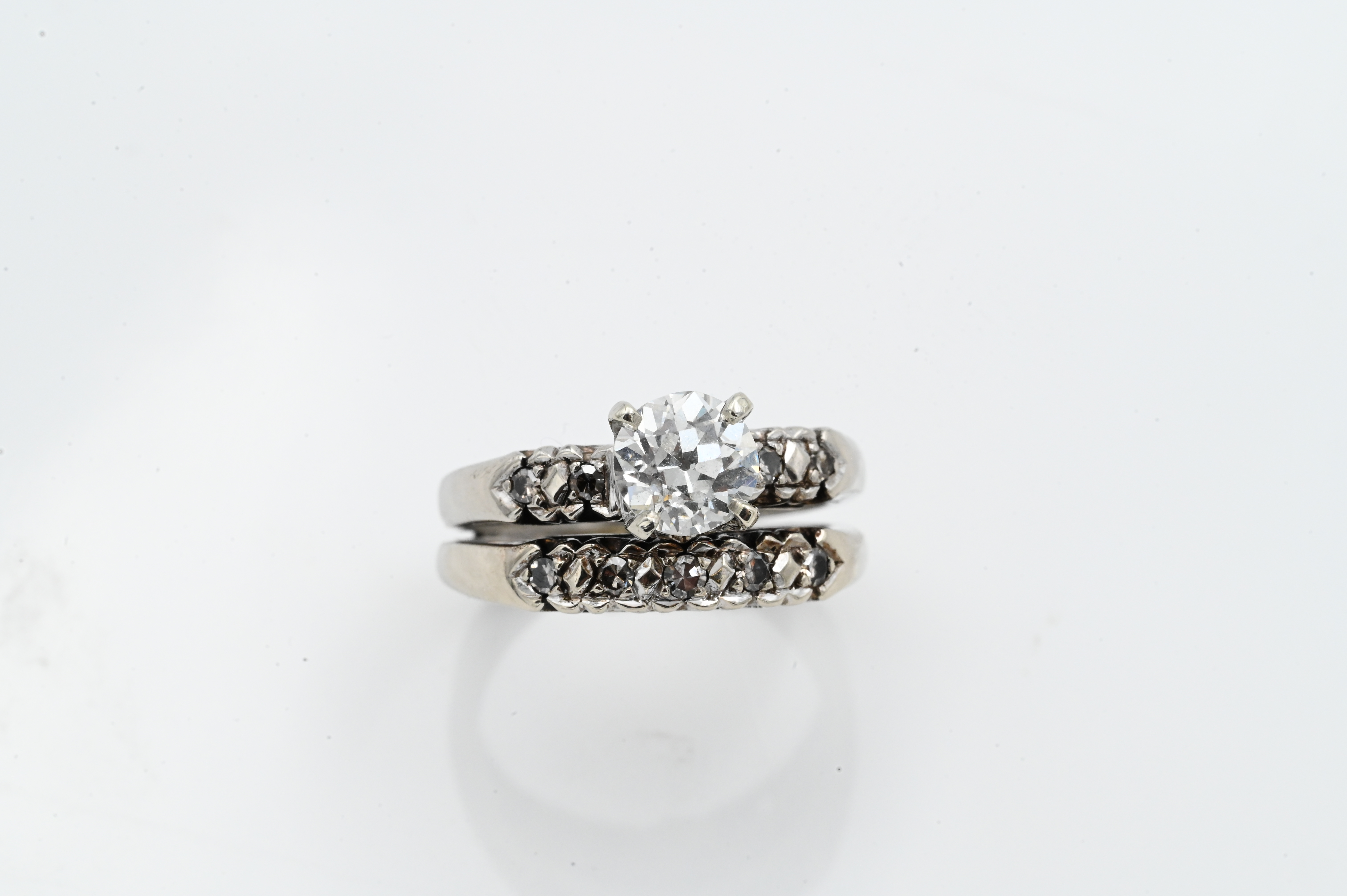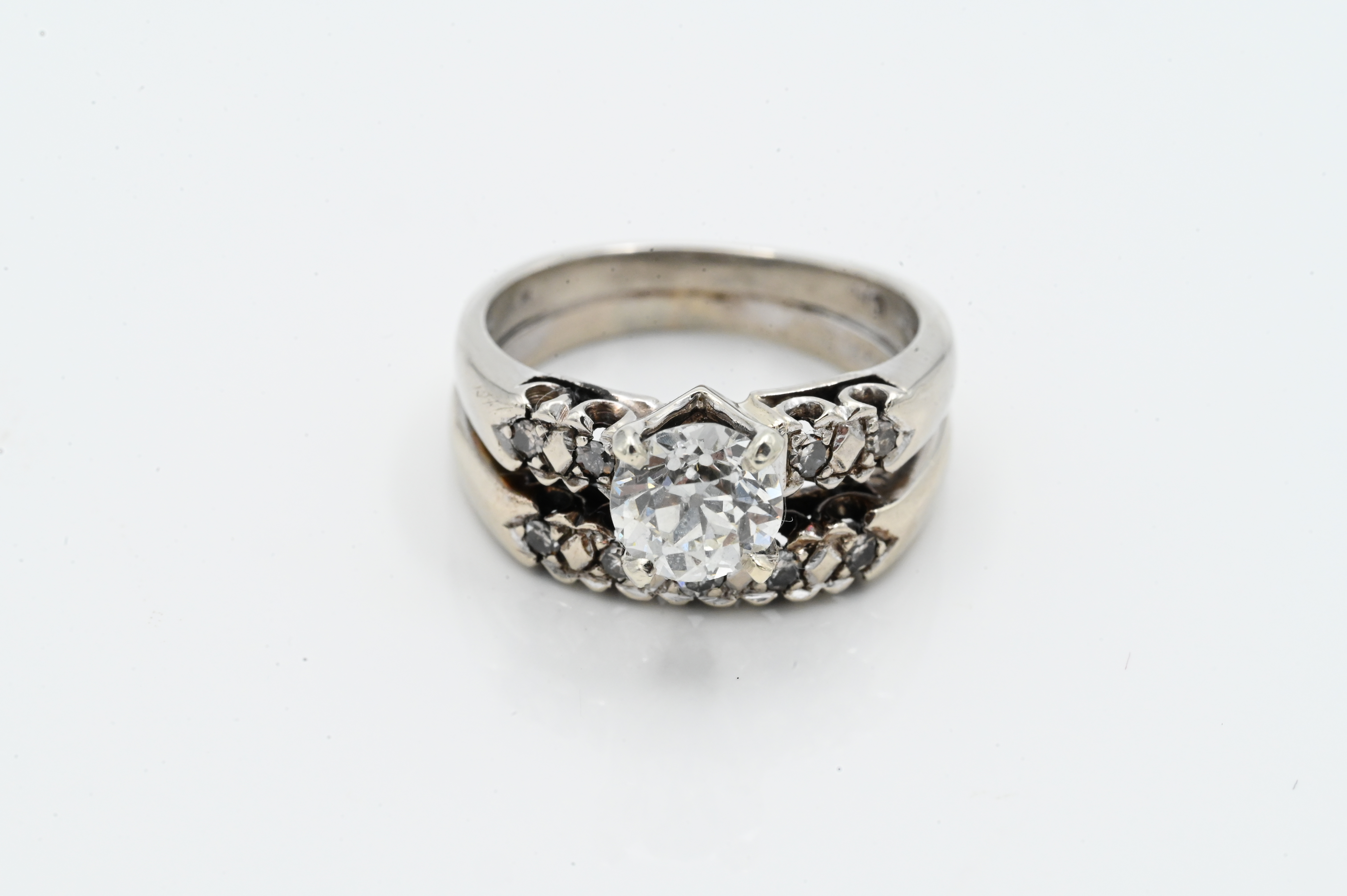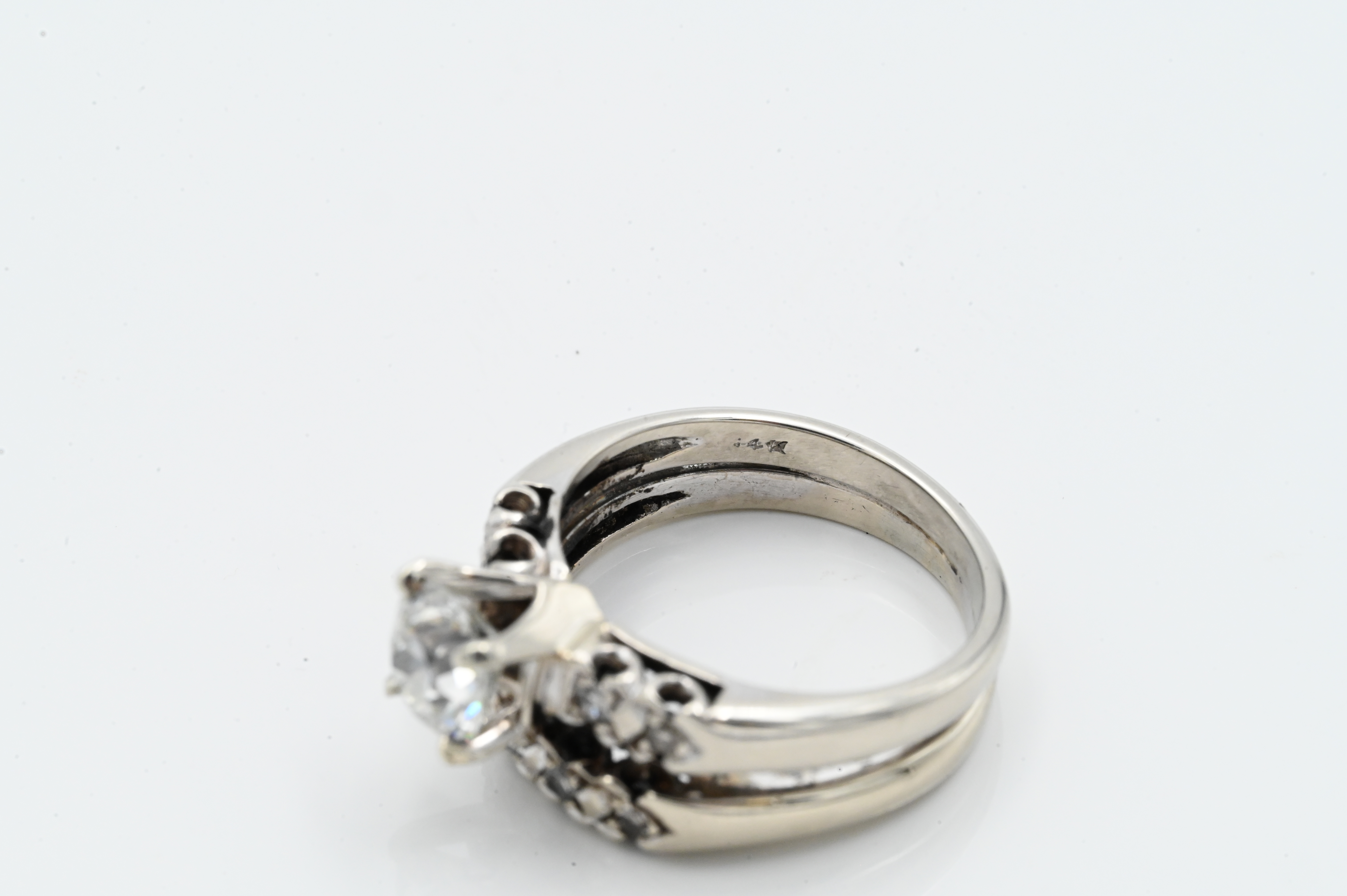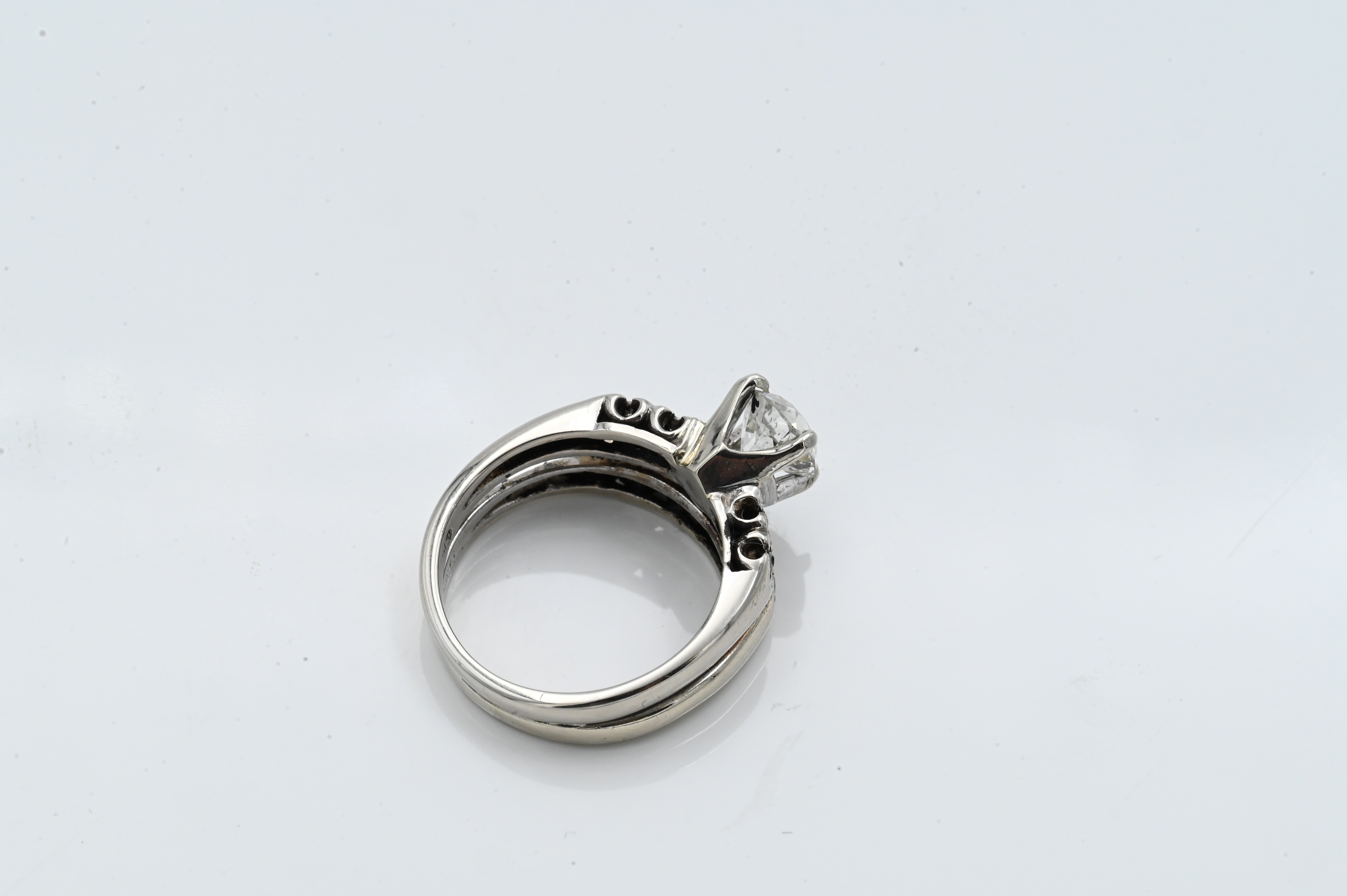 Lot 539: 14K White Gold and Diamond Engagement Ring and Band Bonded Together