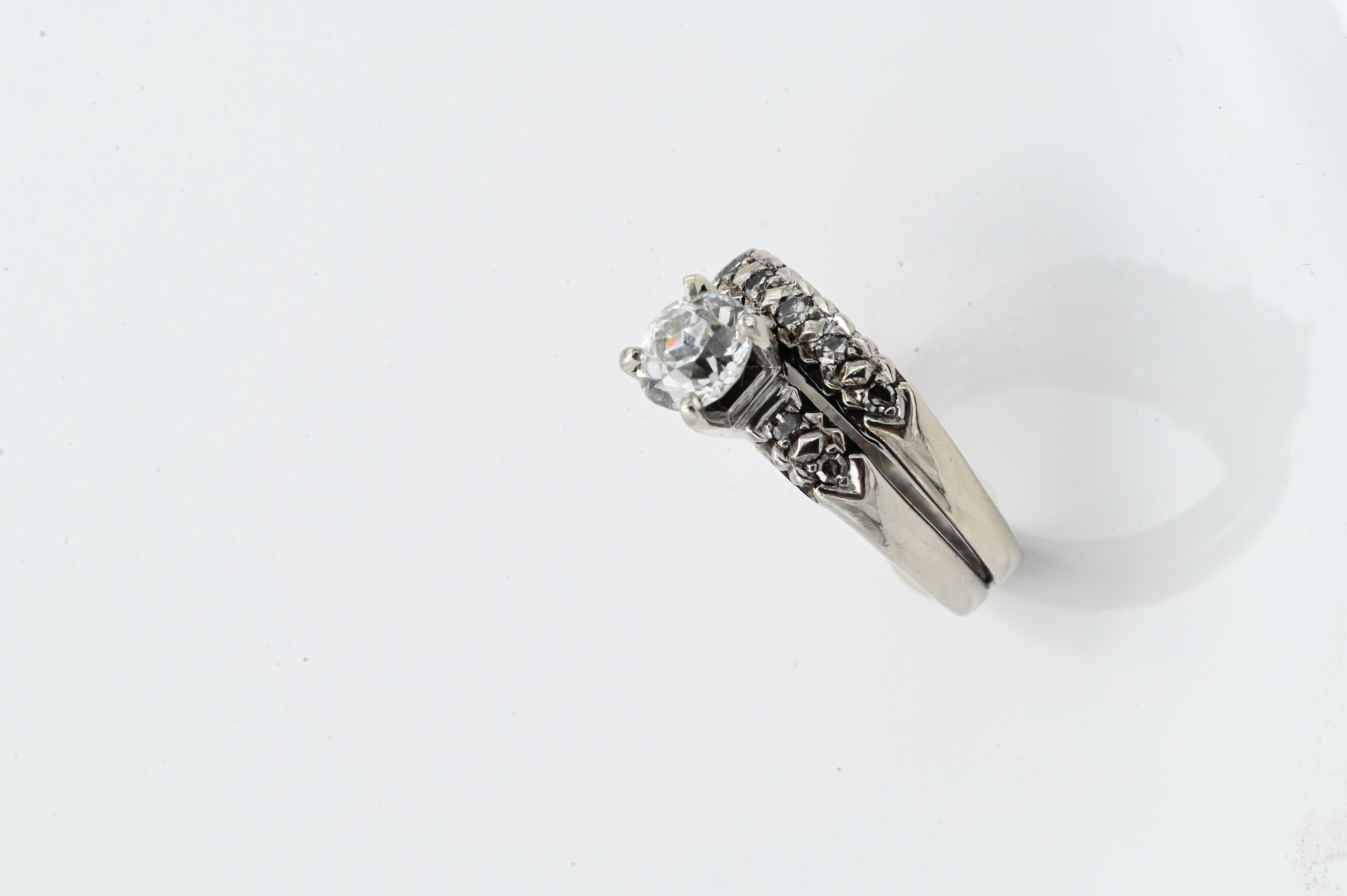 14K White Gold and Diamond Engagement Ring and Band Bonded Together