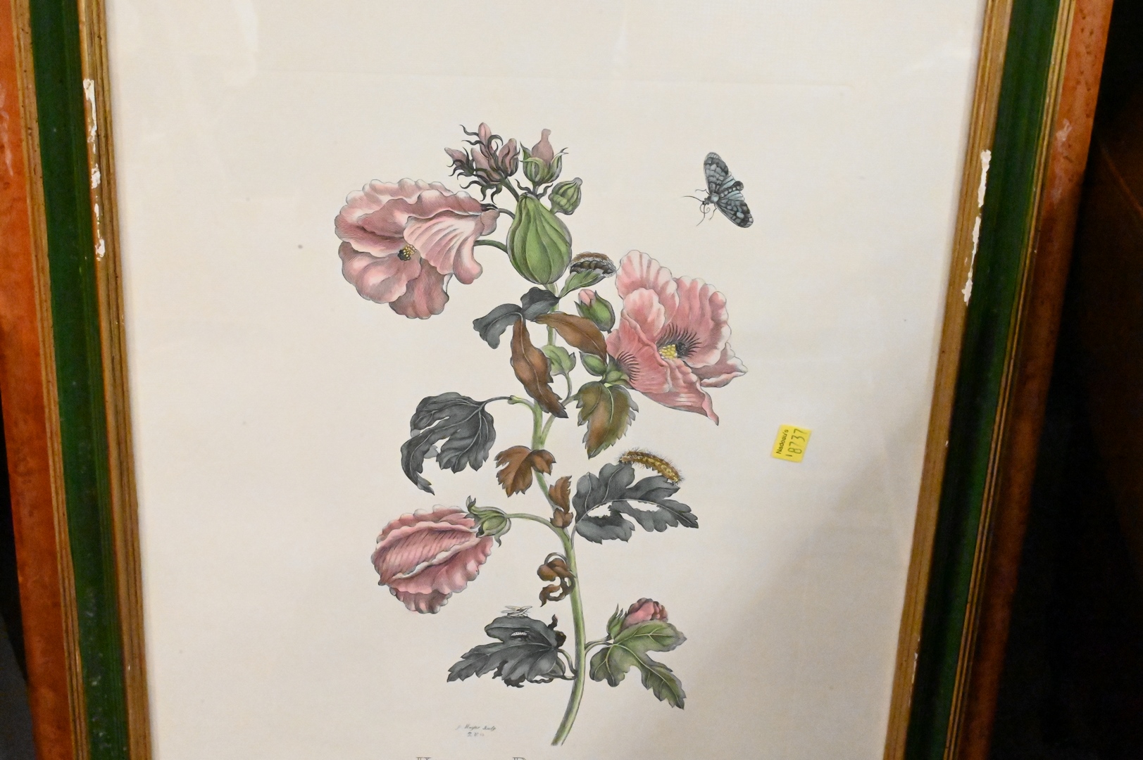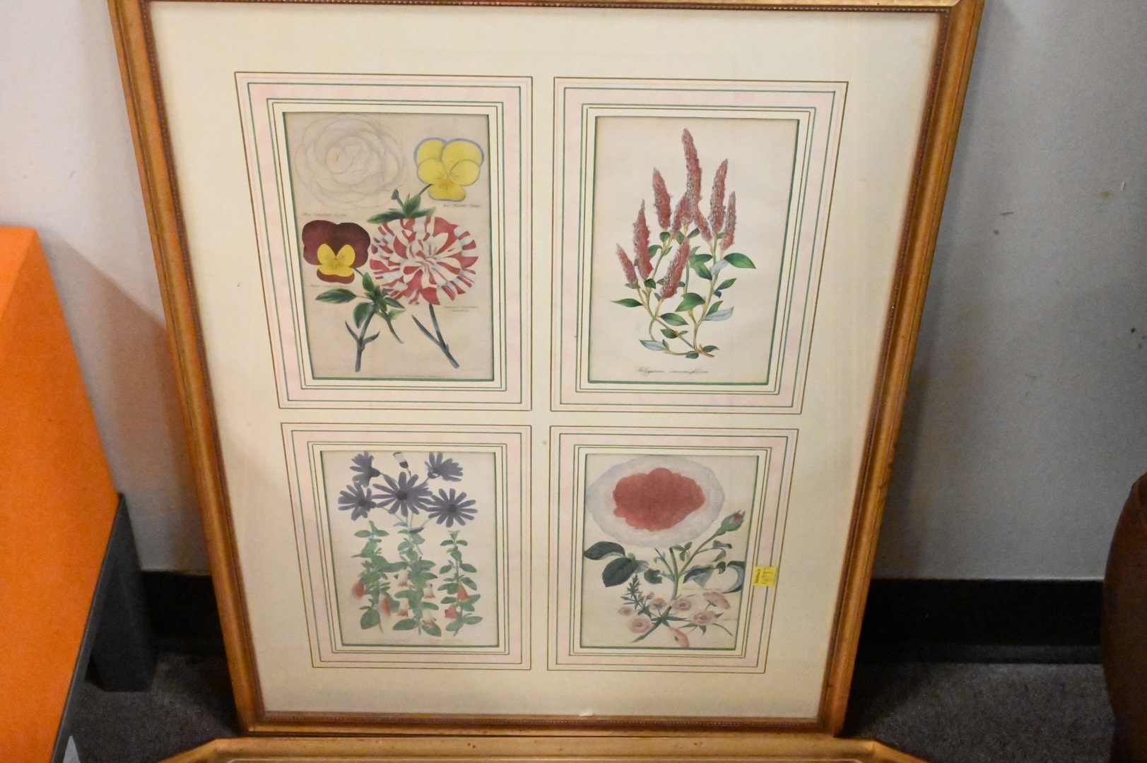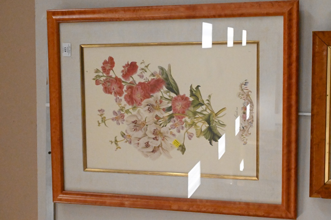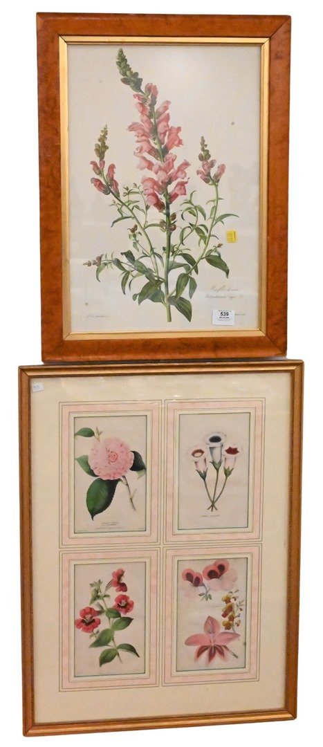 21 piece Lot, to include 16 floral prints including 2 framed with 4 each and 5 miscellaneous framed pieces, sight sizes 7 1/2″ x 9 1/2″ to sight size 19 1/2″ x 14″.
