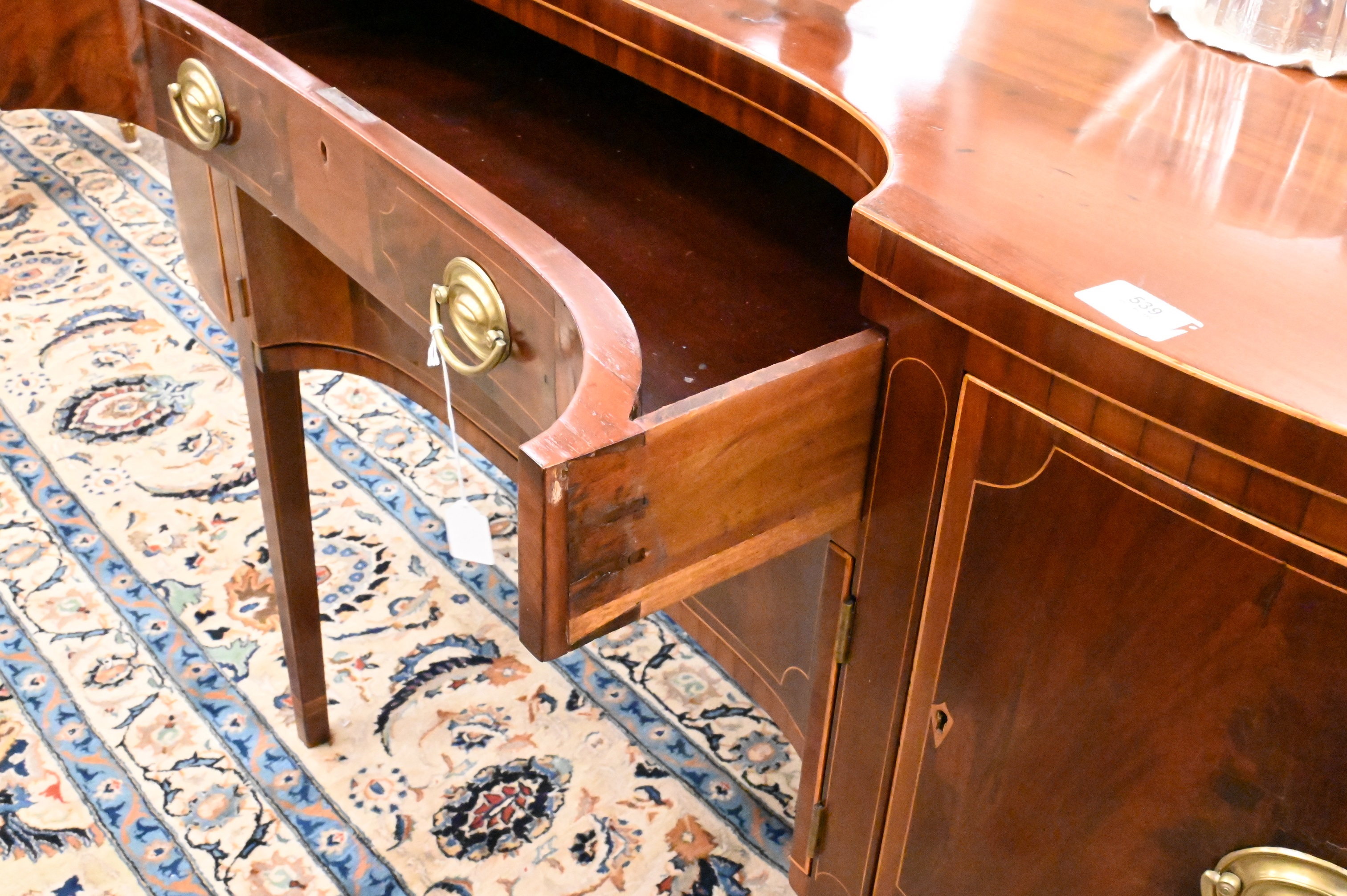 having concave center with drawer and two doors flanked by doors, set on square tapered legs, New England circa 1800